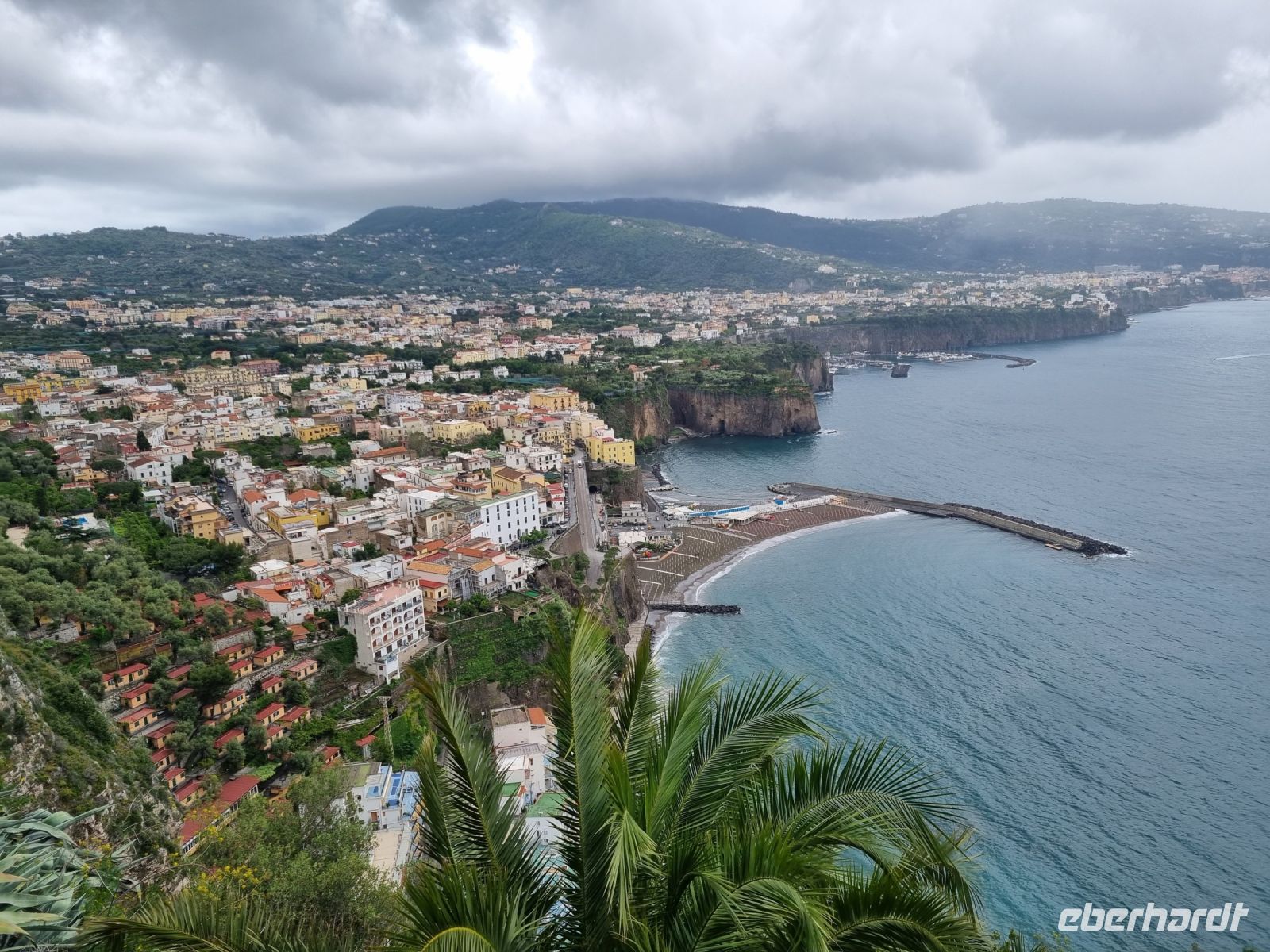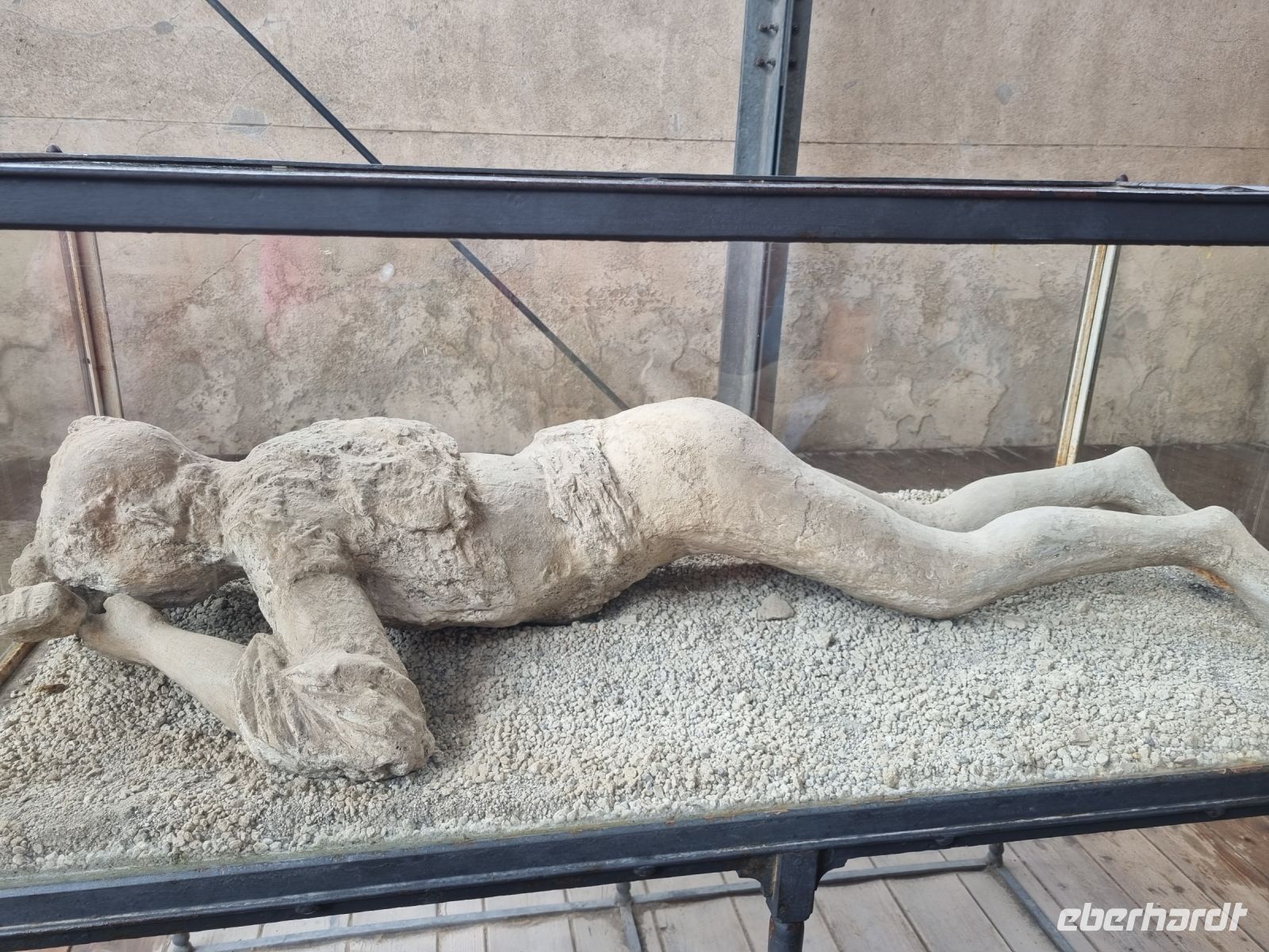 Heute hieß es leider schon „Arrividerci Roma" – wir fuhren weiter südwärts und zwar in Richtung Neapel. Leider versprach die Wettervorhersage nichts Gutes, denn es regnete... Schon von weitem sahen wir, dass der heutige Vesuv eigentlich zwei Gipfel hat, nämliche den Monte Somma, den Rest des alten Vesuv, der beim Ausbruch 79 n. Chr. regelrecht explodiert ist und den 1.281 Meter hohen eigentlichen Gipfel des Vesuvs. In Torre del Greco verließen wir die Autobahn und unser Bus brachte uns nun bis auf knapp 1.000 m hinauf, die restlichen etwa 300 Höhenmeter muss man dann schließlich zu Fuß zurücklegen. Leider kam es so wie bereits geahnt, denn der Wanderweg zum Vesuv war heute aufgrund der schlechten Witterungsbedingungen gesperrt und wir konnten somit nicht an den Krater heran. Sicherheit geht eben vor und die Situation war nicht zu ändern! Am frühen Nachmittag erreichten wir dann das nahe gelegene Pompeji, wo wir unsere nette Reiseführerin Fiorella trafen. Glücklicherweise ließ der Regen jetzt zeitweise nach und so erfreuten wir uns am weiteren Besichtigungsprogramm. Die archäologische Zone von Pompeji ist heute ein riesiges Freilichtmuseum römischer Lebensweise. Es ist eine Stadt, die innerhalb von Stunden von ihren Bewohnern verlassen wurde und dann bis zu ihrer Ausgrabung keine Veränderung mehr erfuhr. Mit der Katastrophe des Jahres 79 hatte niemand gerechnet. Das schwere Erdbeben 16 Jahre zuvor signalisierte zwar nach heutigen Erkenntnissen wahrscheinlich das Ende einer langen Ruhephase des Vulkans, denn auch in späterer Zeit waren Ausbruchsperioden fast immer von Erdbeben begleitet oder vorangekündigt. Das ausgegrabene Pompeji zeigt deutliche Spuren des Erdbebens und überall in der Stadt weisen Mörtelhaufen und Baumaterial auf den noch andauernden Wiederaufbau hin. Es ist für uns heute unvorstellbar, aber man muss sich vorstellen, dass im Jahre 79 der obere Teil des Vesuvs unter dem Druck der aufsteigenden Gase regelrecht explodierte. Über dem Berg stand eine riesige, wie eine Pinie geformte Aschenwolke, die dann auf die Umgebung, besonders auf Pompei niederregnete. Der Untergang Pompejis erfolgte also keineswegs innerhalb von Minuten, sondern dauerte Stunden und Tage, so dass mit Sicherheit der größte Teil der Einwohner zumindest das nackte Leben retten konnte. Schließlich erstickten hochgiftige Gase und die sich meterhoch auftürmenden heißen Vulkanaschen alles Leben. Was jetzt noch an lebenden Wesen zurückgeblieben war, wurde von der Asche wie von einer Gussform eingehüllt, Fleisch und Knochen verbrannten und wurden von ätzenden, scharfen Mineralsalzen zerfressen – ein Hohlraum entstand. Während der Ausgrabungen wurden viele dieser Hohlräume mit Gips ausgegossen und wir haben heute ein makaber-plastisches Bild des Todeskampfes der Zurückgebliebenen: Hunde, Gefangene, Zögernde, die noch möglich viel von ihrem Besitz retten wollten, wahrscheinlich auch Plünderer. Pompei ist einzigartig – wir gingen durch Straßen, an Geschäften, Restaurants und Bädern vorbei... Nach dieser interessanten Führung in Pompeji brachen wir in Richtung Sorrentinische Halbinsel auf. Hier checkten wir im Hotel "Montana" in S. Agata, nahe Sorrent, für die nächsten vier Nächte ein.