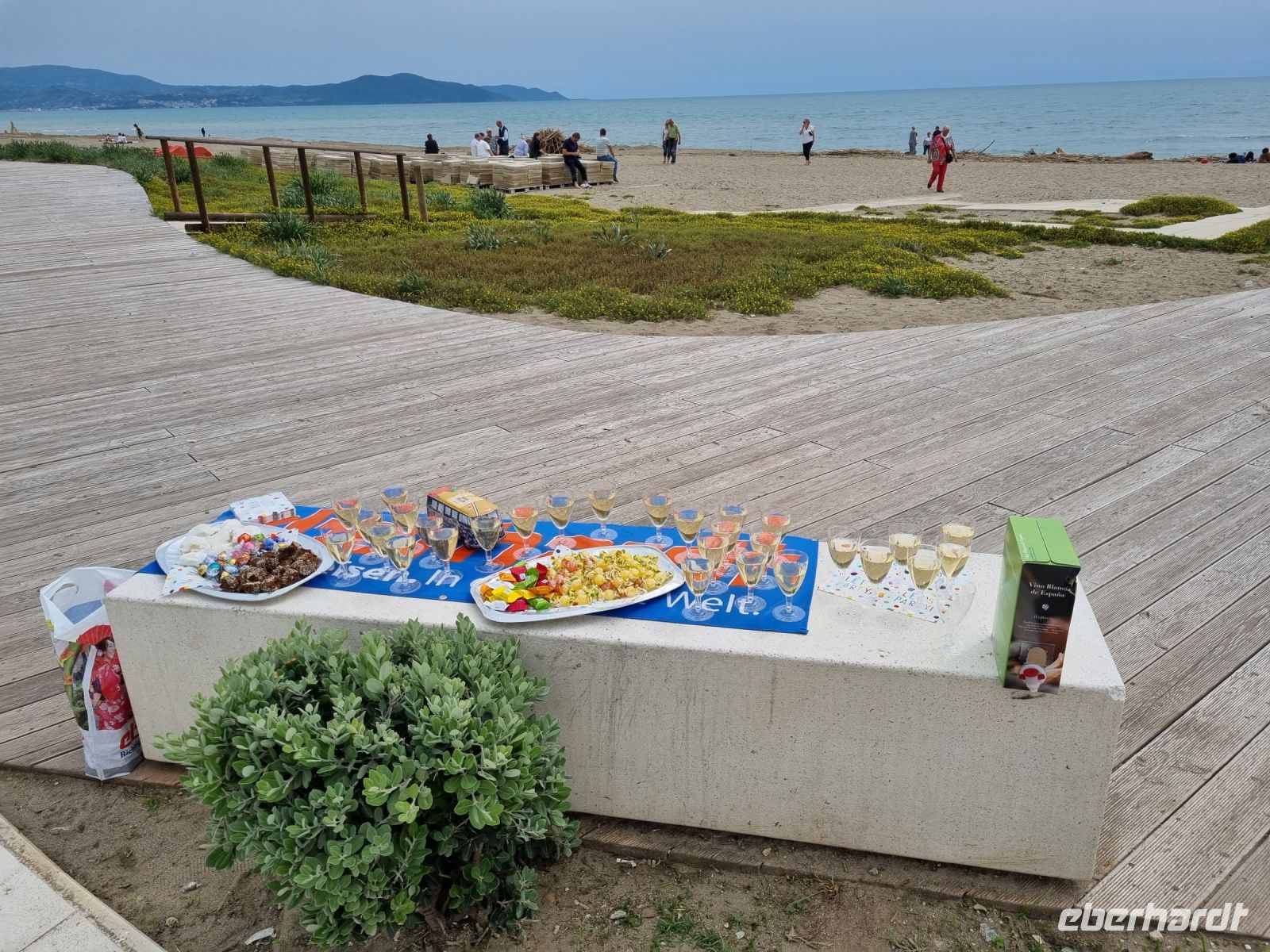 Heute ging es wieder mit unserem Bus zum südlichsten Punkt auf dieser Reise – an Salerno vorbei nach Paestum! Unseren örtlichen Reiseleiter Angelo trafen wir gut gelaunt vor Ort. Zuerst steuerten wir die Büffel-Farm „Vannulo", unweit von Paestum, an. Hier konnten wir sehen, wie echter Büffel-Mozzarrella hergestellt wird bzw. erhielten wissenswerte Informationen zu diesem Prozess. Selbst eine Verkostung der hauseigenen Produkte durfte nicht fehlen! Mittlerweile wird hier sogar Schokolade aus Büffelmilch produziert – einfach köstlich! Jetzt erstmal genug Kulinarisches, der heutige kulturelle Hauptanziehungspunkt galt natürlich Paestum – und dort die drei nahezu komplett erhaltenen griechischen Tempel nahe dem Meer. Das antike Paestum war eine der größten Griechen-Städte Süditaliens, wichtige Hafenstadt im Handel mit Etrurien und damals ein sicherer Schlüssel zum Reichtum. Die Stadt wurde schließlich von den Lucaniern erobert, später wurde der Stadtstaat römische Kolonie und danach ländlicher, denn die Fernhandelswege hatten sich verlagert. Paestum erlebte allerdings keinen Niedergang wie die meisten Städte Großgriechenlands, denn erst im beginnenden Mittelalter verödete die Stadt durch Malaria, Piraten- und Sarazenen-Einfälle. Der Hafen versandete und die Stadt wurde von Schilf und Sumpfwäldern überwuchert. Schließlich geriet die Stadt völlig in Vergessenheit. Das war ein Glück für die Tempel, denn sonst wären sie nämlich wie andere antike Bauwerke als Steinbruch genutzt worden! Ein kurzer Abstecher führte uns anschließend zur Küste, denn hier gibt es ausgedehnte Sandstrände und gepflegte Promenaden. Gleichzeitig nutzten wir dieses Ambiente zur offiziellen Verabschiedung unserer Fluggäste und mit einem Glas Wein und ein paar Leckereien besiegelten wir diese tolle Reise. Am späten Nachmittag fuhren wir wieder zurück, vorbei an riesigen Landwirtschaftsflächen – hier werden übrigens größtenteils Artischocken angebaut. Kurz nach Salerno hatten wir noch einmal einen kurzen Blick auf den südlichen Teil der Amalfiküste und letztendlich erlebten wir erneut einen völligen Landschaftswechsel. Wir nahmen die Autobahn und fuhren durch das Hinterland der Monti Lattari (Milchberge) zurück.