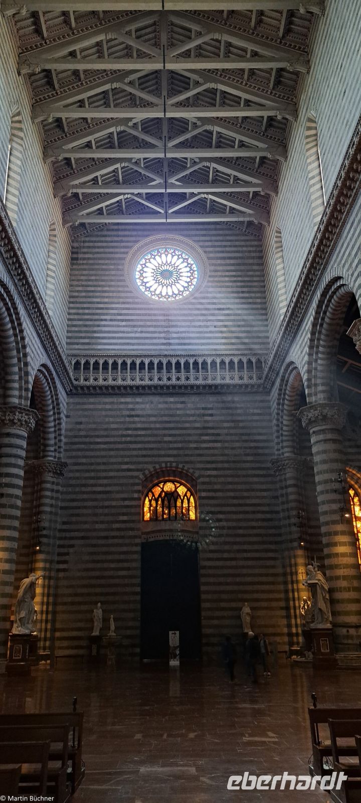 Man erkennt einerseits romanische Elemente mit seinen Rundbögen, ergänzt durch gotische Spitzbögen. Viele der Domfenster bestehen aus lichtdurchlässigen Buntmarmor. Das ein bemerkenswertes Licht im Inneren des Doms erzeugt. An dieser Stelle wäre das schon spektakulär genug für einen Besuch. Es gibt ein weiteres Highlight in einer Nebenkappelle – Fresken. Man könnte sie „Kleine Sixtinische Kapelle“ nennen, kein geringerer als Michelangelo ließ sich für sein Werk hier inspirieren.