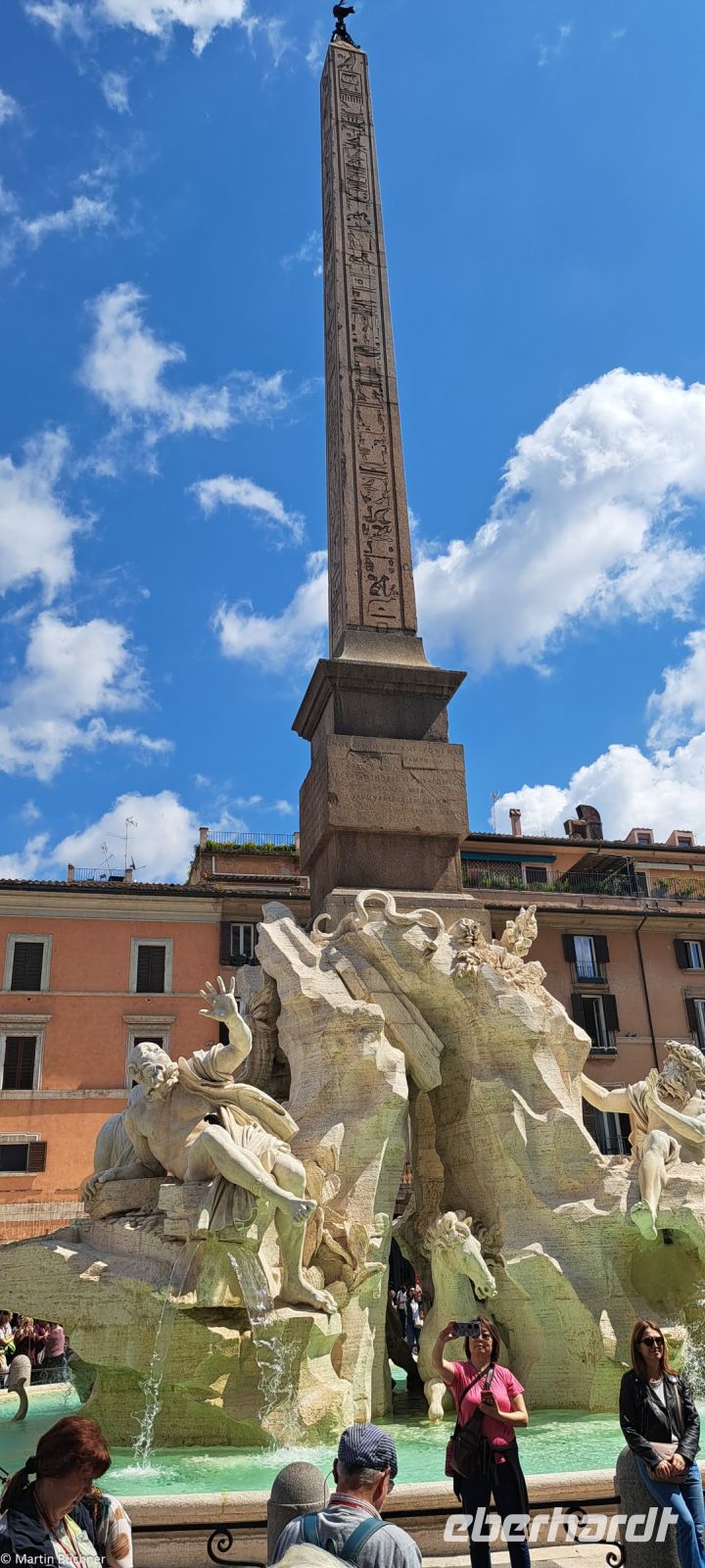 Busfreier Tag. Mit der Metro und der Tram gelangen wir in die Innenstadt. Unser Tag beginnt mit dem majestätischen Pantheon, der einzige vollständig erhaltene römische Tempel. Das Pantheon – Tempel aller Götter – überlebte auch deshalb, weil es früh zu einer Kirche geweiht wurde. Die normale Bevölkerung hatte kein Zugriff mehr auf das Gebäude, wurden Baummaterialien gern wiederverwendet. Nur der Papst hatte Zugriff, so ließ Papst Urban VIII. die Bronze-Decken abnehmen, um daraus Kanonen für die Engelsburg und den Baldachin über dem Hauptaltar im Petersdom fertigen zu lassen. Heute sind hier die ersten beiden Könige Viktor Emanuel II. und Umberto I. des vereinigten Italien bestattet, ebenso der Renaissance Maler Raffael. Unbedingt erwähnenswert ist die Kuppel, Vorbild für viele Kuppelgebäude der Welt. Aus statischen Gründen hat die Kuppel an der höchsten Stelle eine Öffnung. Einfallendes Sonnenlicht erzeugt an der Innenseite der Kuppel eine Sonnenuhr. Und natürlich kann es durch dieses Loch hereinregnen, das wussten schon die Römer und integrierten am Boden ein System von Abflüssen.