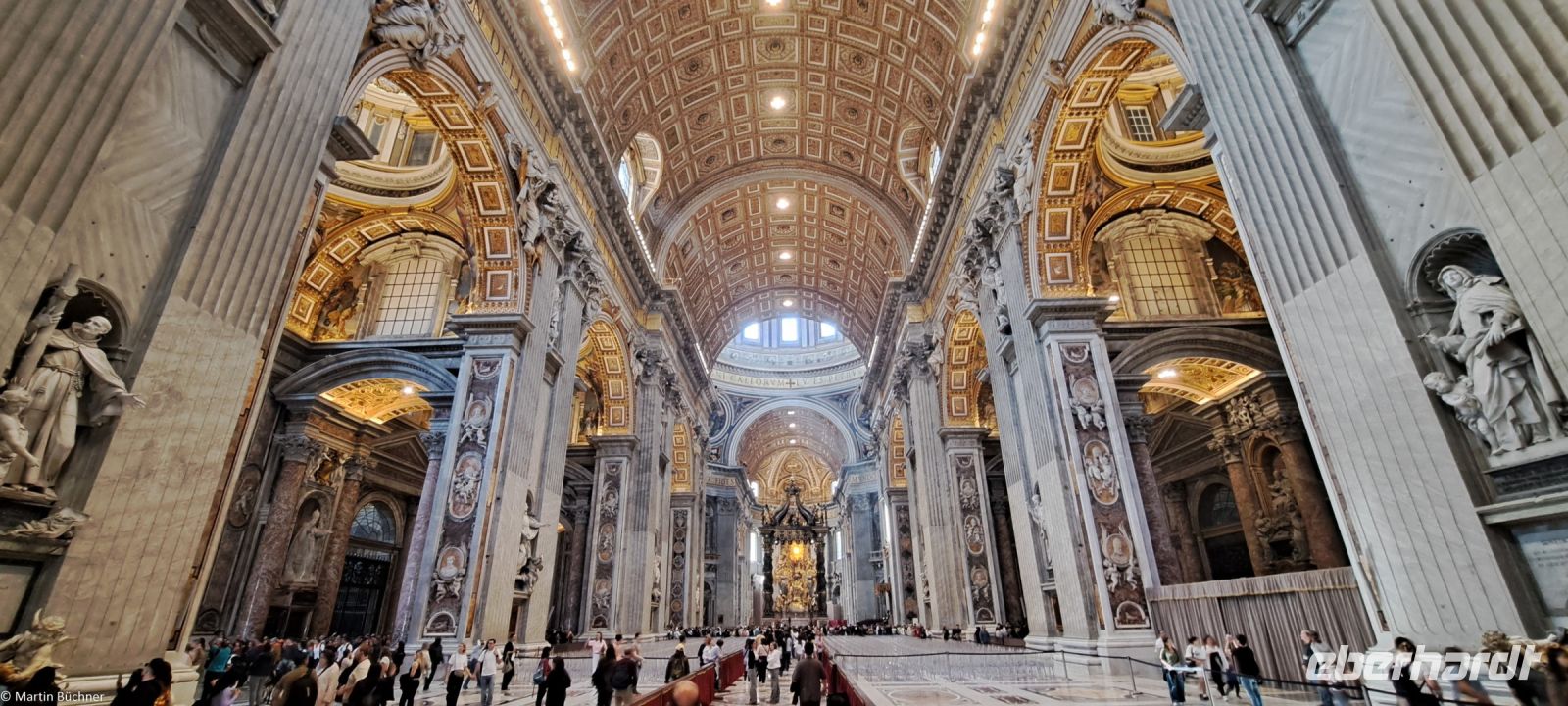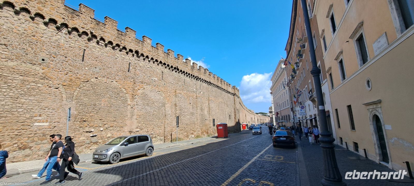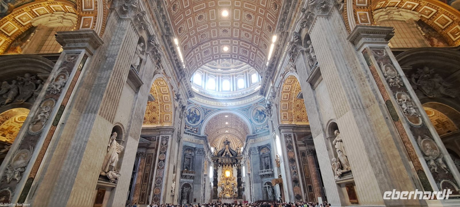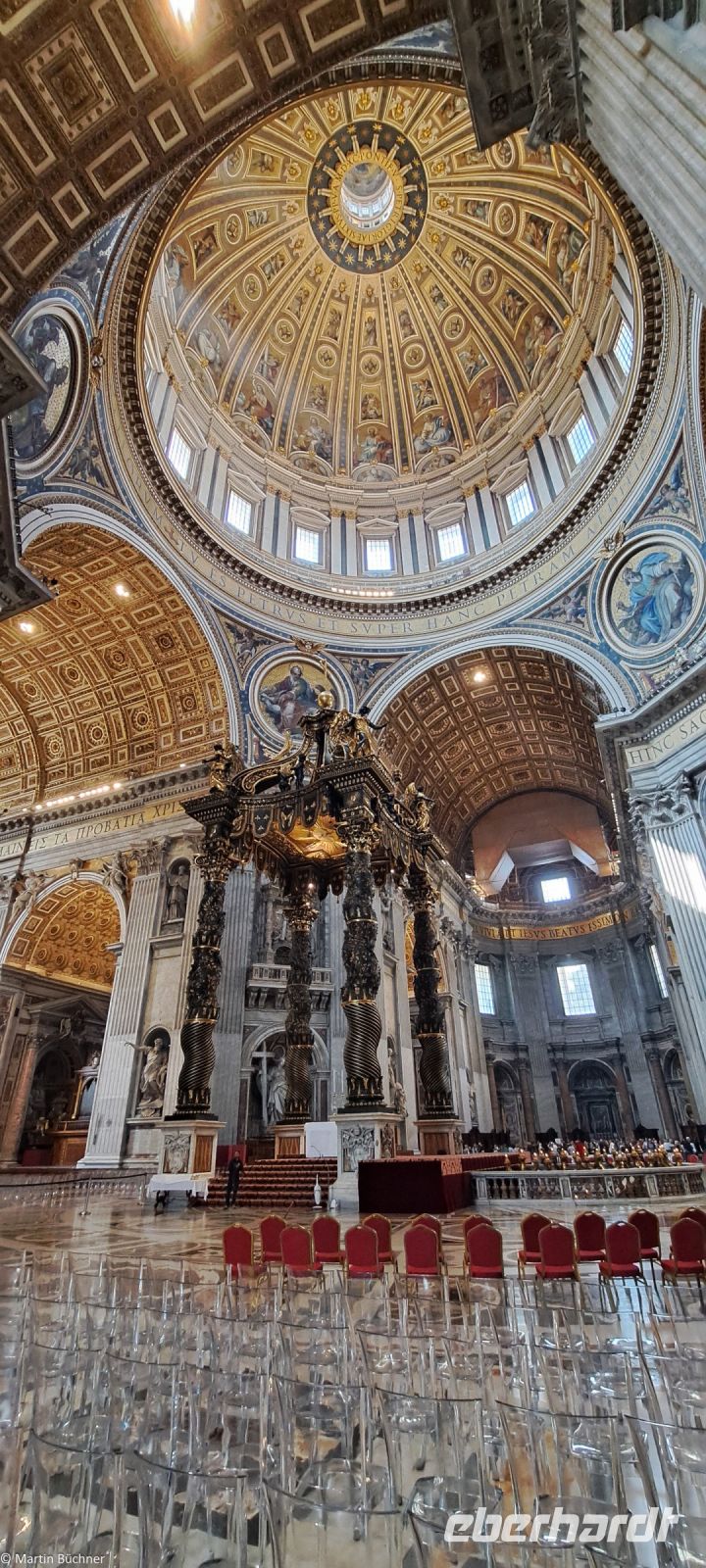 Wie tausende Pilger in den vergangenen Jahrhunderten vor uns, durschreiten wir die Kolonnaden von Bernini – angelegt als „Schoß der Mutter Kirche“ und stehen auf dem Petersplatz. Der Blick ist frei auf den Petersdom, der größten Kirche der Welt.
