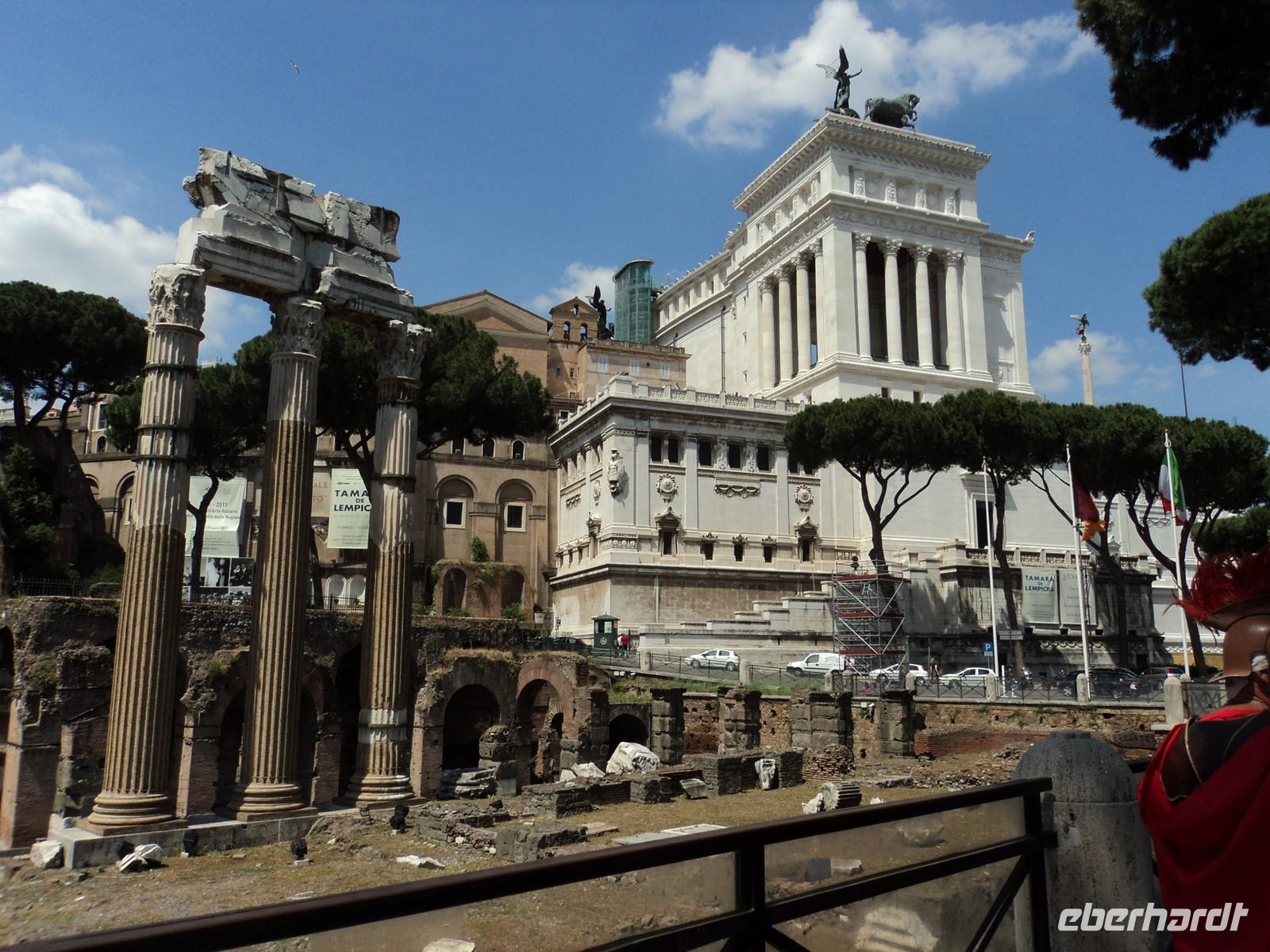 Nun sind wir ungeduldig auf Rom. Mit dem Bus geht es zum Checkpoint und von da mit der U-Bahn zum Kolosseum, wo uns Maria Theresa empfängt. Ihre Stadtführung mit Herz und den Sahnehäubchen fand viel Beifall. Rom hat es auch verdient. Vom Kolosseum ging es zum Moses von Michelangelo, über das Forum Romanum zum Capitolshügel an der Piazza Venezia vorbei zum Trevibrunnen und dann war erst mal Mittagspause. Am Nachmittag besuchen wir das Pantheon, erleben, wie ein Prinz der königlichen Familie einen Kranz am Grab seiner Vorfahren niederlegt und gehen dann weiter zur Spanischen Treppe. Unser Rundgang endet an der Piazza Navona. Zum Abendessen treffen wir uns in einer typischen Taverne wo es Pasta und Wein gibt. Der Heimweg ist nicht so einfach, denn die Busfahrer streiken und so sind wir erst gegen 22:30 im Hotel.