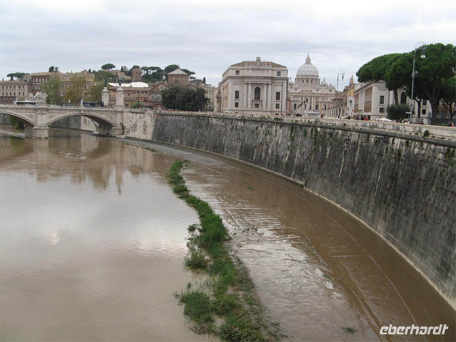 Unser Bus sollte die Gruppe am Morgen zum Vatikanstaat bringen, dem kleinsten Staat der Welt! Allerdings grollte es um Rom schon die halbe Nacht. Und als wir dann abfahren mussten, um unsere Verabredung mit Kerstin und dem Vatikan einzuhalten, ging das gewaltige Gewitter genau über uns nieder und Regenmassen donnerten herab. Die Straßen standen unter Wasser, aber wir kämpften uns tapfer vorwärts. Doch es war das blanke Verkehrschaos. Vom Wasser überraschte und überschwemmte PKW's standen im Zentrum. Die Busse waren total überfüllt. Später erfuhren wir, dass Metrostationen und das Colosseum unter Wasser standen und gesperrt waren.