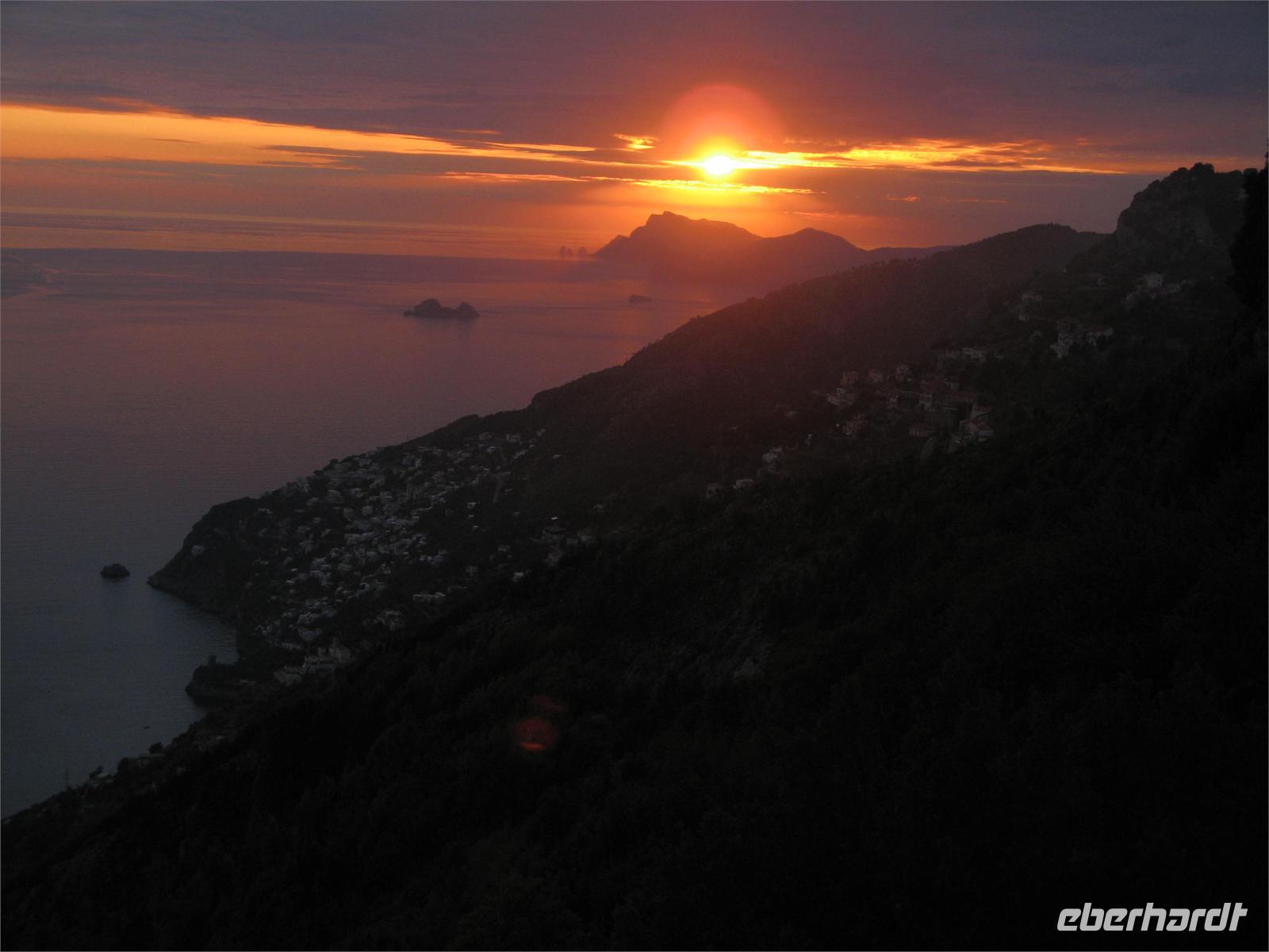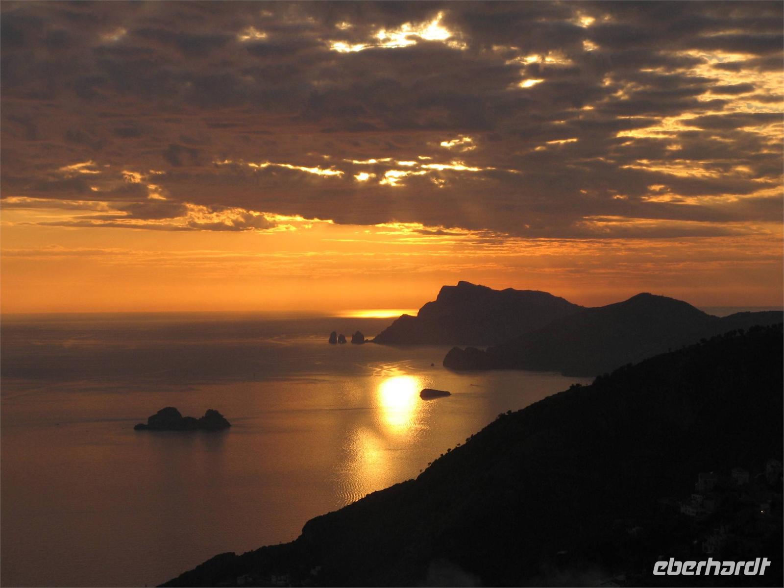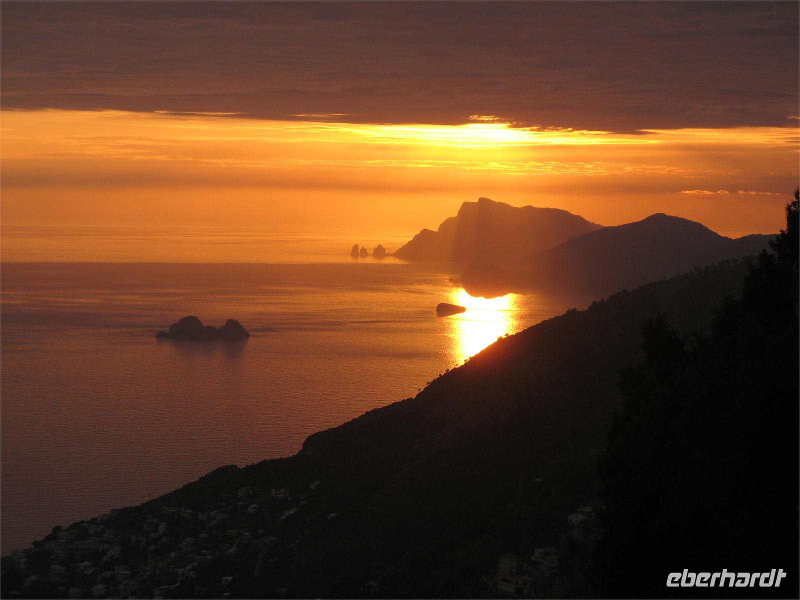 Eine schöne Eberhardtreise liegt hinter uns. Nur etwas schöneres Wetter hätten wir uns für Capri gewünscht - aber wir haben sie gesehen, die rote Sonne, die über Capri im Meer versinkt, und das sogar vom Hotel aus! Wir werden lange von unseren Reiseerinnerungen zehren können.