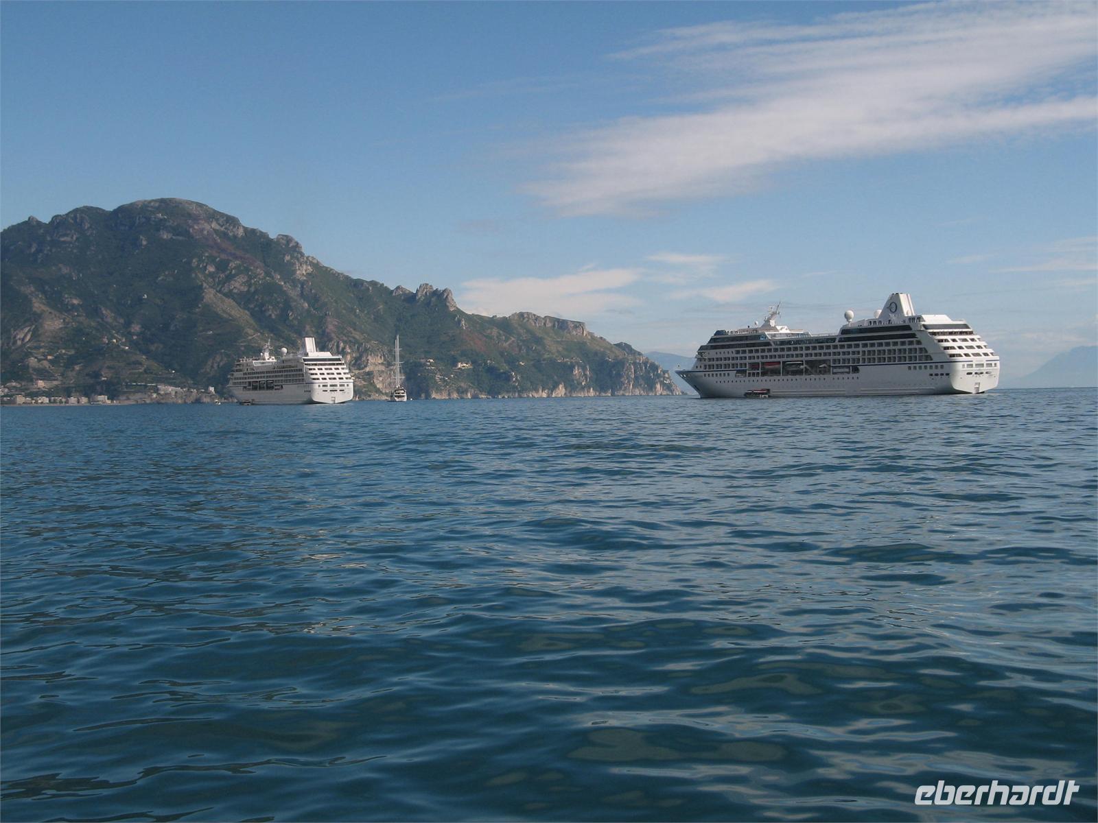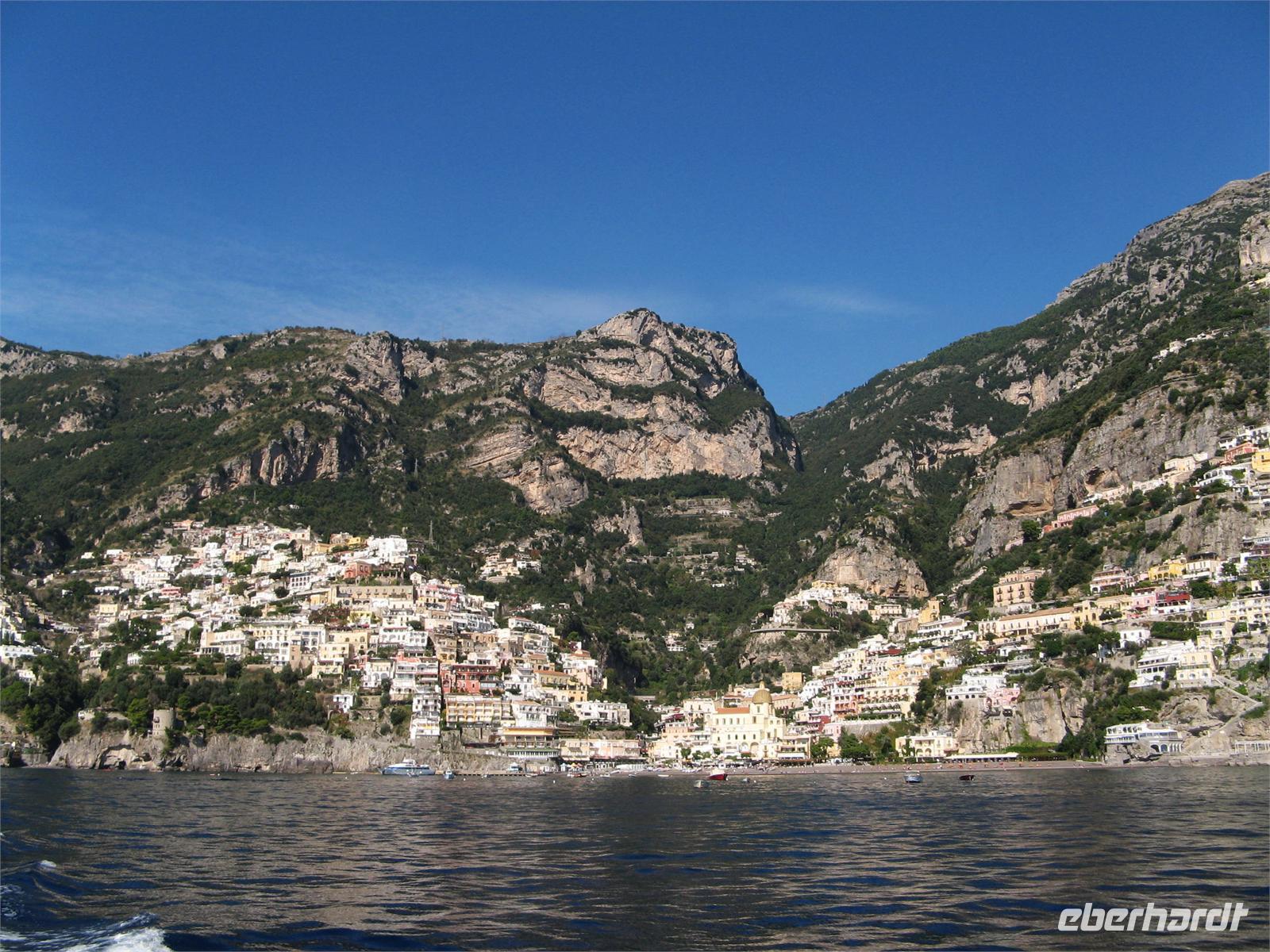 Wir verweilten ein Stündchen in Positano, hielten die Füße ins Meer, tranken einen Cappuccino oder aßen das leckere italienische Eis. Vom Schiff zeigte uns Vittoria die Schönheiten der Amalfiküste, Felsenriffs, Höhlen, den Fjord, die Vegetation, aber auch architektonische Kostbarkeiten. Villen, wie die von Sophia Loren, berühmte Hotels, wo die Reichen und Schönen ihre Urlaube verbringen und auch unser Hotel oben am Berg, das Sant Orsola, traumhaft gelegen!