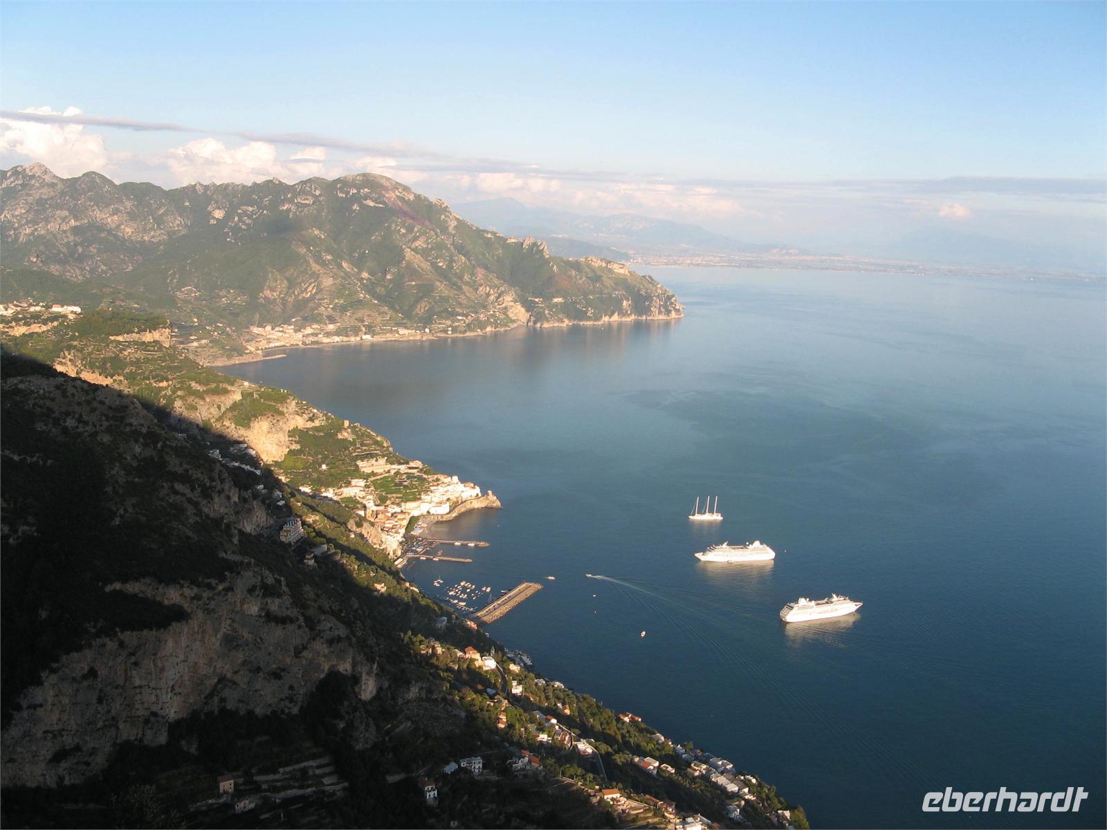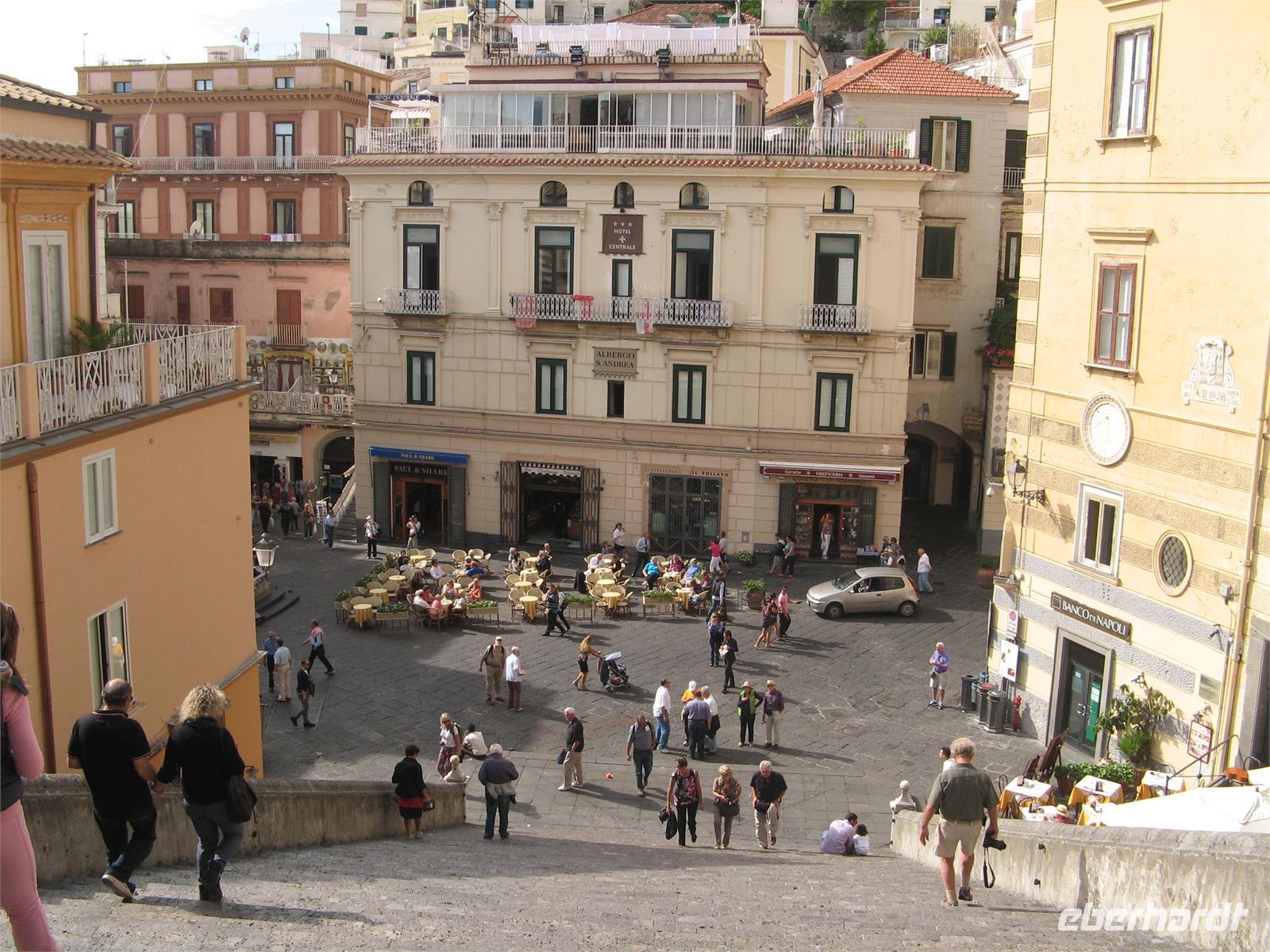 Nach einen kleinen Rundgang in Amalfi, einer Kleinigkeit zum Essen (wer wollte) und Freizeit fuhren wir 15.00 wieder zurück. Da unser italienischer Bus eine Sondergenehmigung hatte, ersparten wir uns den weiten Weg über Salerno und die Autobahn, und konnten an der Südküste direkt hinauf in die Berge nach Agerola fahren. Eine tolle Tour! Wir nutzen das herrliche Wetter, um noch einen Spaziergang mit Petra zu einem Aussichtspunkt zu unternehmen, von dem wir einen herrlichen Ausblick auf Amalfi hatten. Wir tranken einen Zitronenlikör auf den schönen Urlaub in Agerola!
