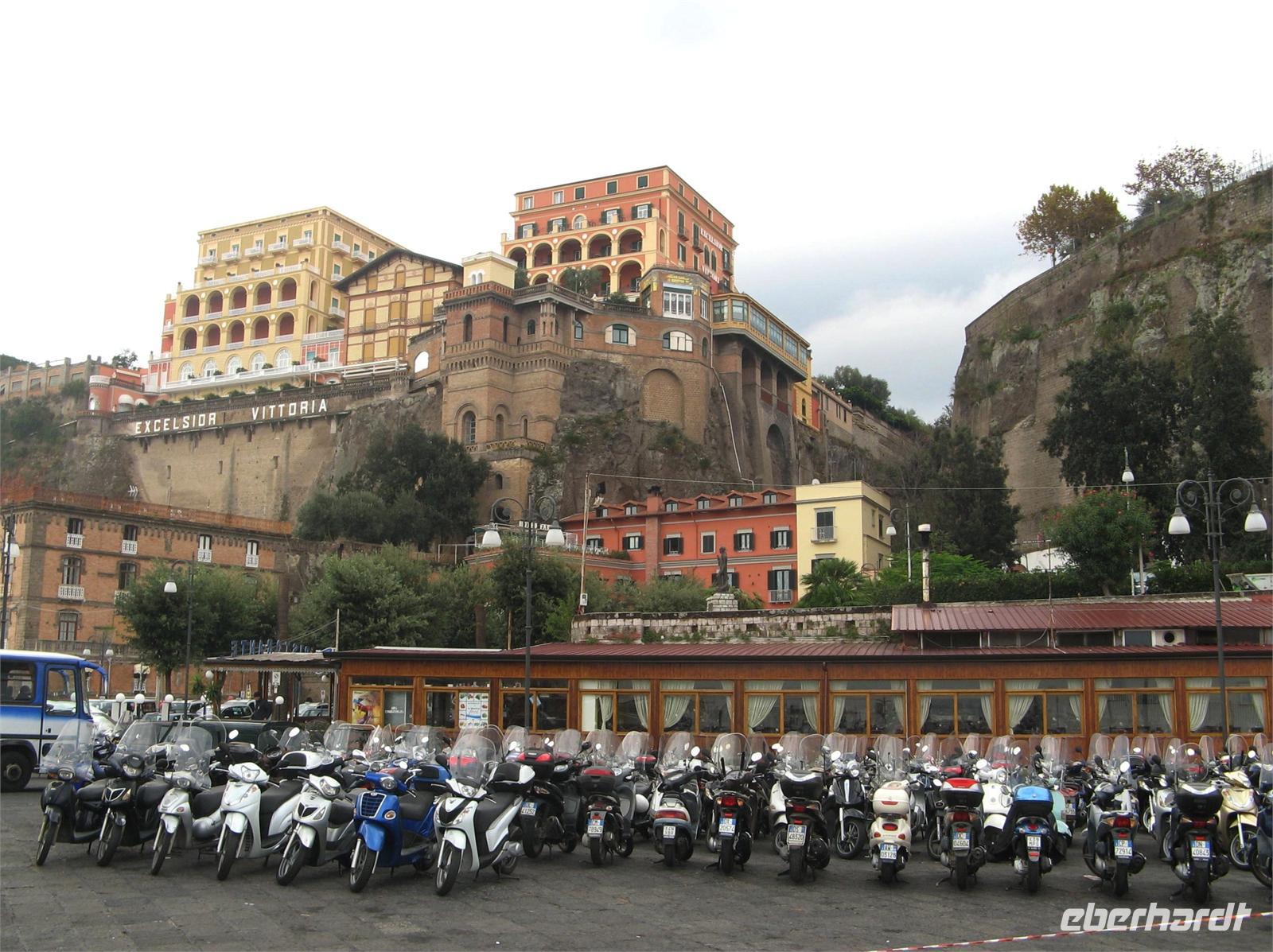 Mit einem italienischen Bus fuhren wir über Sorrent an die Amalfiküste, heute mit unserer Vittoria, ein sympatisches Temperamentbündel. Wir legten 2 Stopps auf der engen Amalfitana ein, um einige Erinnerungsfotos zu schiessen, Dann bummelten wir zum Hafen in Positano, ein idyllischer Ort am Hang mit kleinen Gassen. Wir wollten alle an diesem herrlichen Tag eine Bootstour entlang der Küste nach Amalfi unternehmen. Keine Wolke am Himmel!