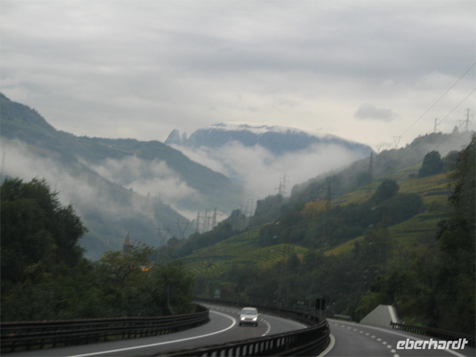 Das Wetter war wieder klar, warum nicht gestern! Es ging die gleiche Strecke zurück, die wir schon von der Herfahrt kannten, vorbei an Neapel, Rom, Florenz, Bologna nach Visagio, südlich von Verona, zu unserer letzten Zwischenübernachtung im Hotel Montemezzi. Gegen 19.00 sind wir da.