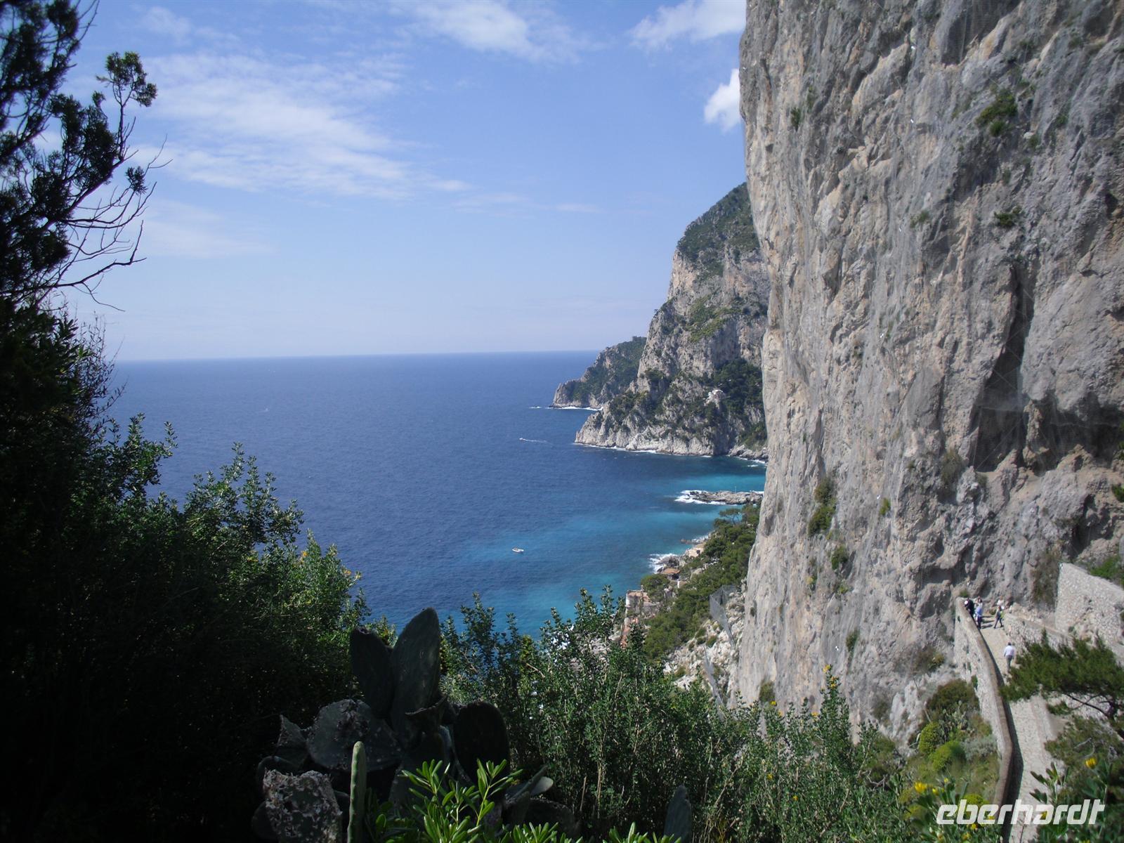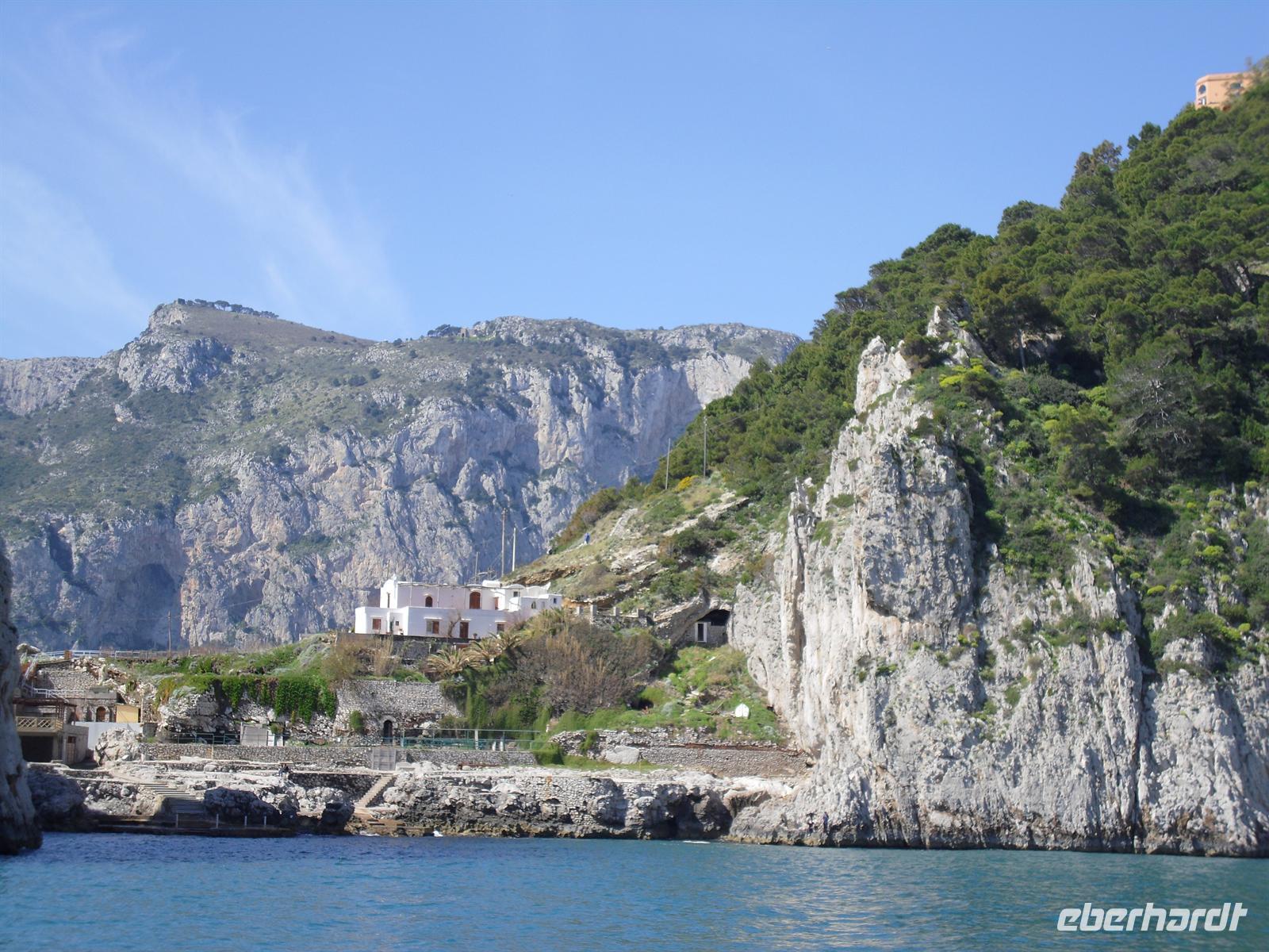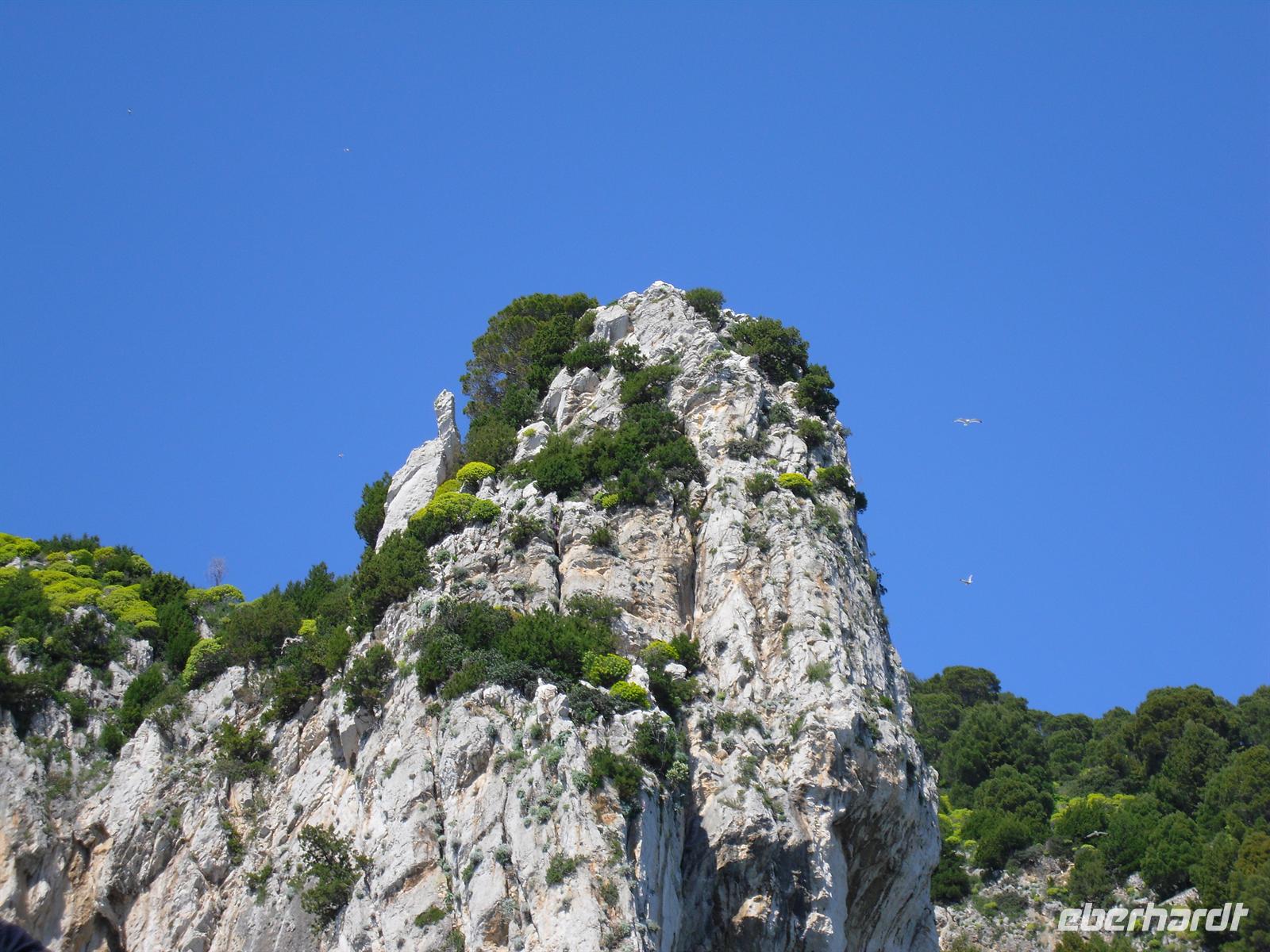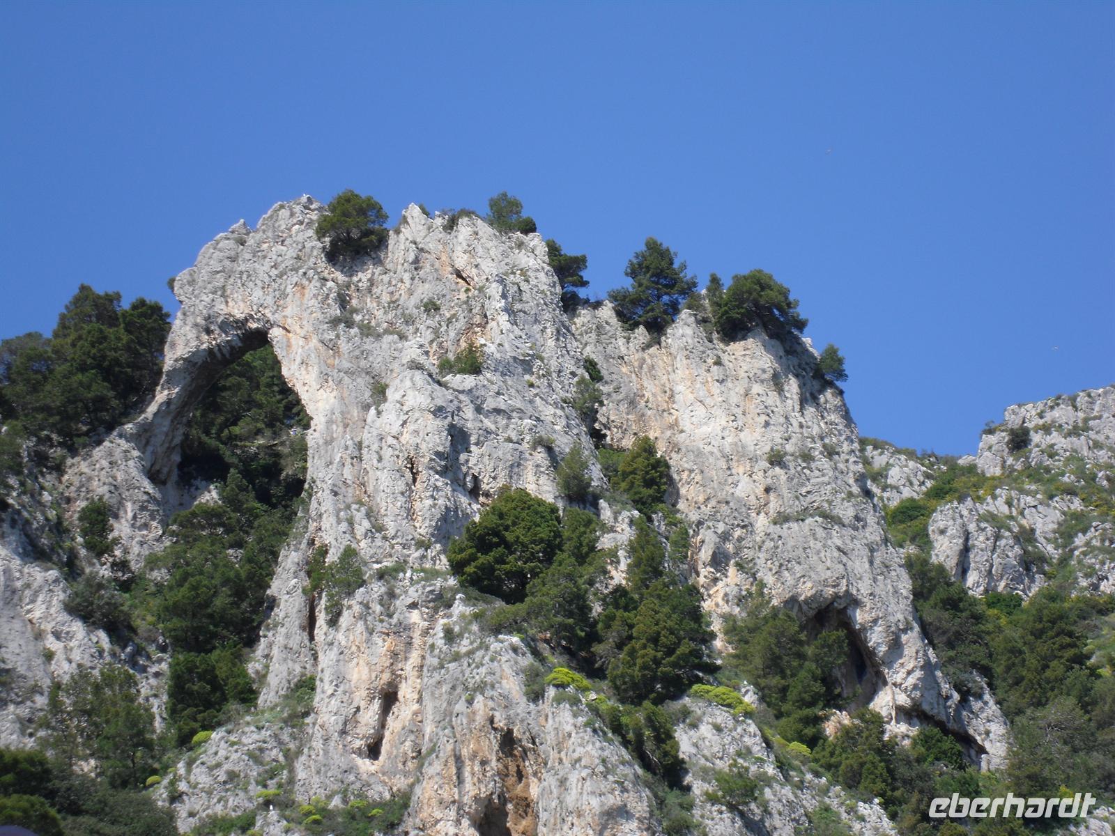 Schon von weitem türmt sich die Insel wie unzugänglich auf. Zwei durch einen geschwungenen Sattel verbundenen Hochebenen, auf denen die Orte Capri und Anacapri liegen, ineinandergeschachtelte Häuserkuben, überragt von gekalkten und buntgekachelten Kuppeln. Für uns ist klar - Capri ist der Kontrast zwischen intensivem Blau des Meers, den strahlend weißen Felswänden und dem tiefen Grün der Vegetation. Wir unternehmen eine Schifffahrt rund um die Insel - die Ausblicke faszinieren uns, schließlich haben wir ganz gutes Wetter erwischt! Unsere örtliche Reiseleiterin Dagy erzählt uns so manch nette Episode über die Insel. Bis auf einige Jahrhunderte, als die Präsenz von Piraten Vergnügungsreisen auf die Insel verbot, war Capri seit den Tagen des Augustus Ziel meist betuchter Reisender. Vielen gefiel die Kalkklippe im Meer so gut, dass sie zu Einheimischen wurden.