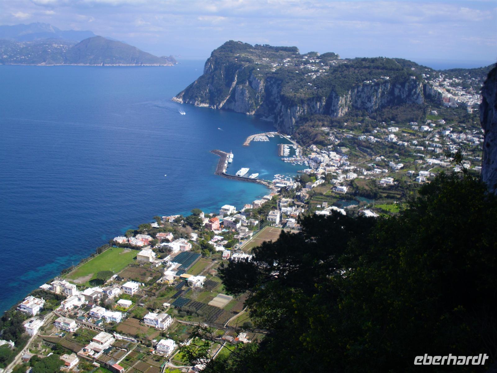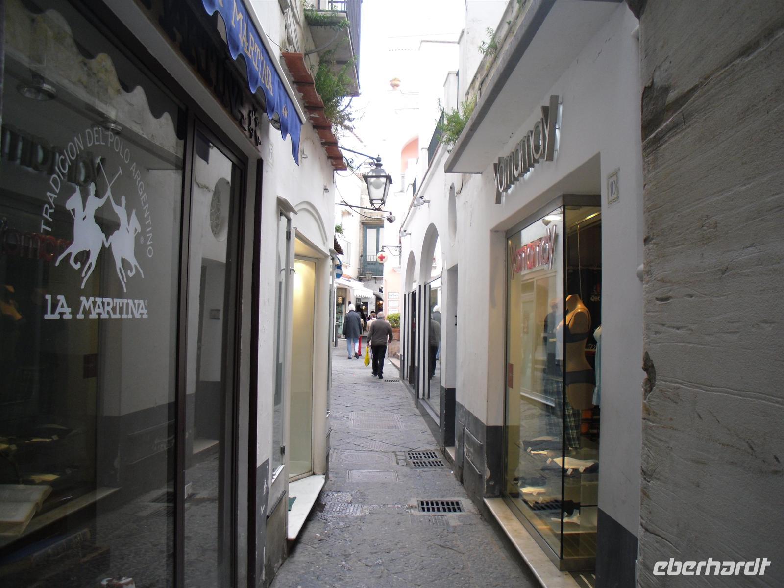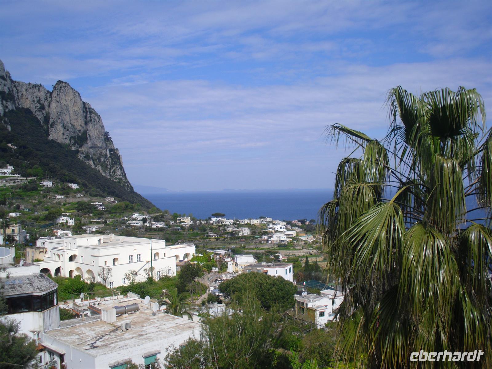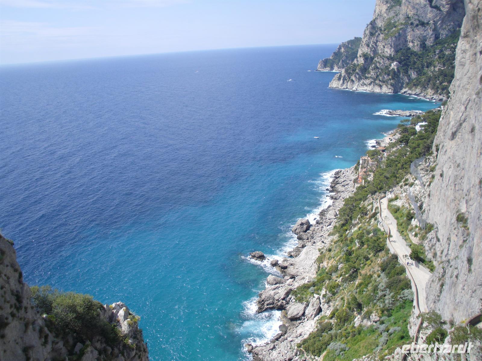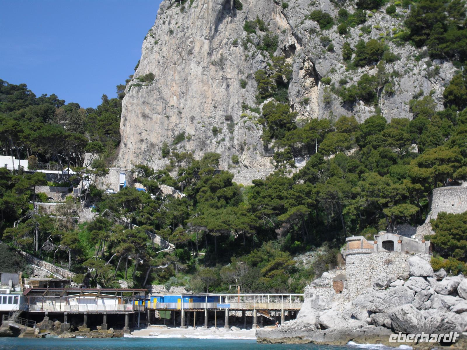 Schon von weitem türmt sich die Insel wie unzugänglich auf. Zwei durch einen geschwungenen Sattel verbundenen Hochebenen, auf denen die Orte Capri und Anacapri liegen, ineinandergeschachtelte Häuserkuben, überragt von gekalkten und buntgekachelten Kuppeln. Für uns ist klar - Capri ist der Kontrast zwischen intensivem Blau des Meers, den strahlend weißen Felswänden und dem tiefen Grün der Vegetation. Wir unternehmen eine Schifffahrt rund um die Insel - die Ausblicke faszinieren uns, schließlich haben wir ganz gutes Wetter erwischt! Unsere örtliche Reiseleiterin Dagy erzählt uns so manch nette Episode über die Insel. Bis auf einige Jahrhunderte, als die Präsenz von Piraten Vergnügungsreisen auf die Insel verbot, war Capri seit den Tagen des Augustus Ziel meist betuchter Reisender. Vielen gefiel die Kalkklippe im Meer so gut, dass sie zu Einheimischen wurden.