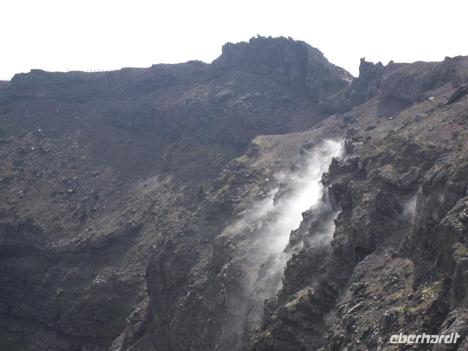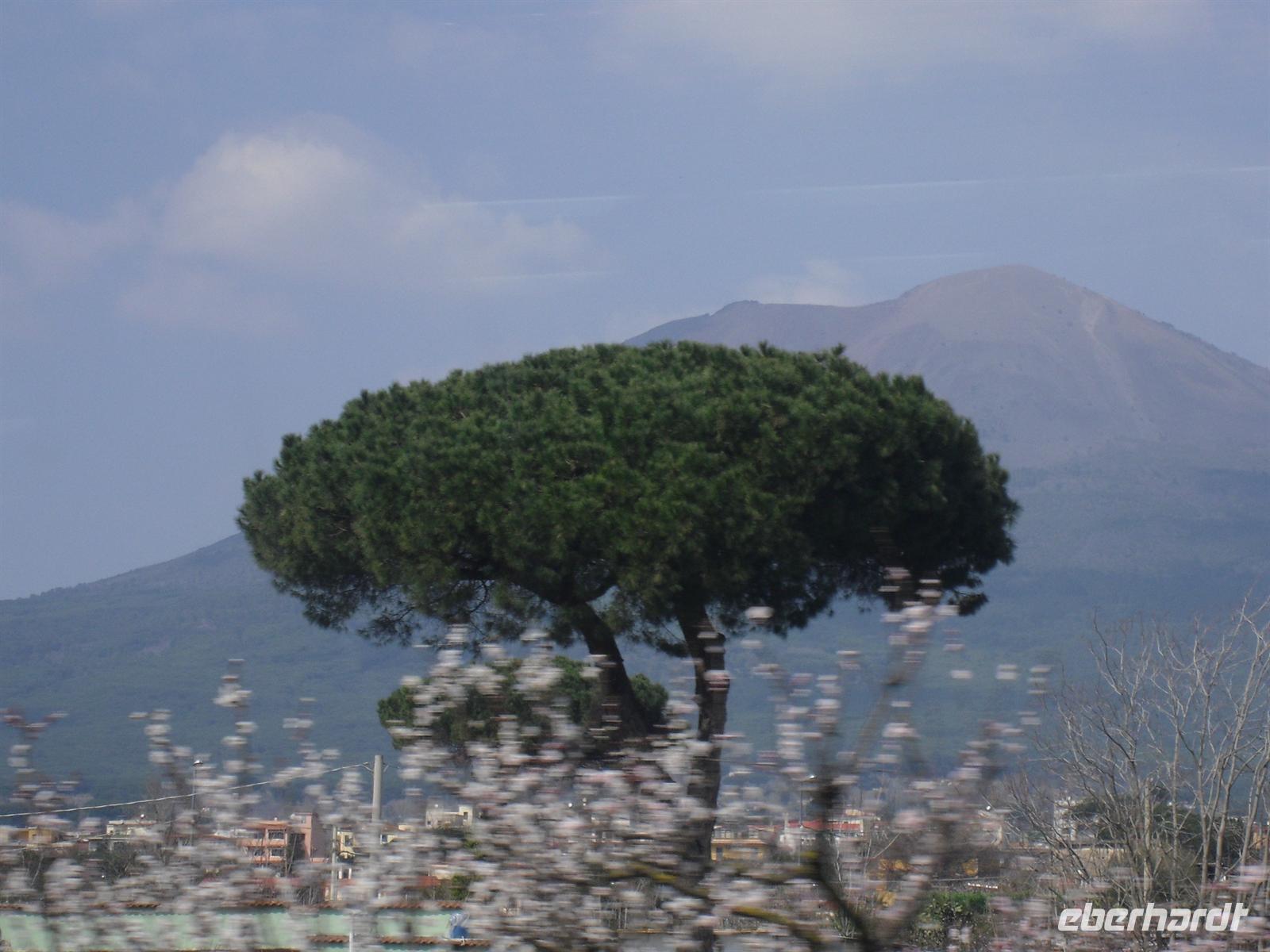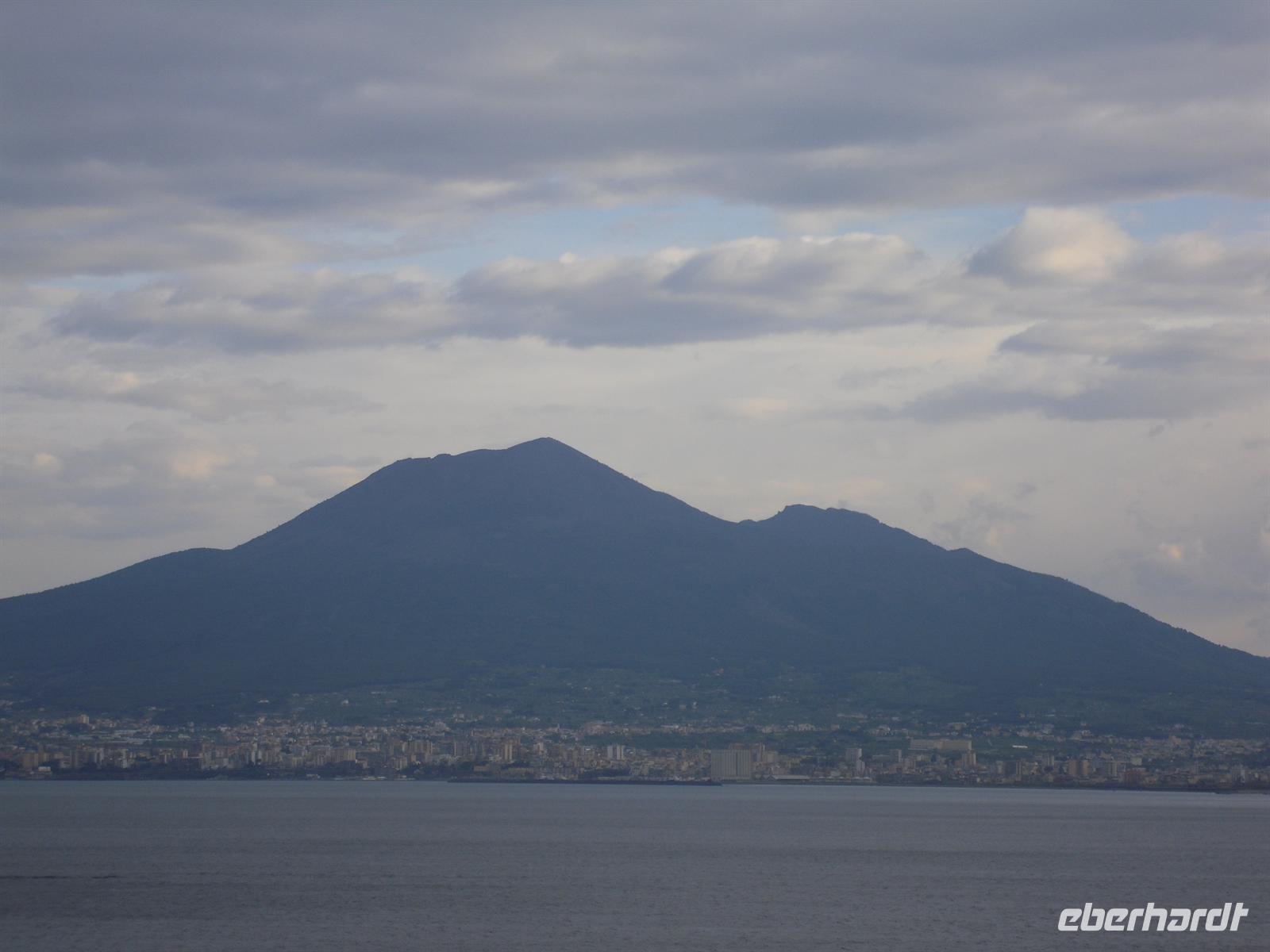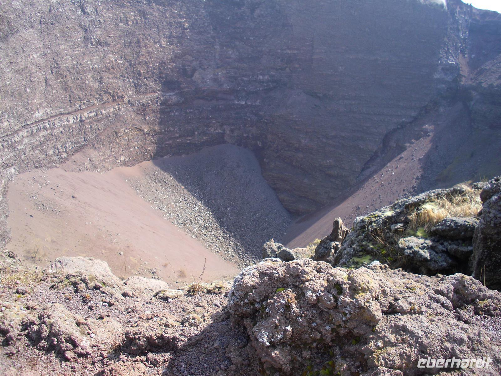 Schon von weitem sehen wir, dass der heutige Vesuv eigentlich zwei Gipfel hat, nämliche den Monte Somma, den Rest des alten Vesuv, der beim Ausbruch 79 n. Chr. regelrecht explodiert ist und den 1.280 Meter hohen eigentlichen Gipfel des Vesuvs. Der Bus bringt uns bis auf etwa 1.000 m hinauf, die restlichen etwa 300 Höhenmeter müssen wir zu Fuß zurücklegen. Das erste Drittel ist ziemlich steil, dann geht es gemächlicher voran, nach reichlich einer halben Stunde stehen wir am Kraterrand. Der Berg scheint völlig zu ruhen, wir sehen nur ein paar Dampfquellen. Umso erstaunlicher ist für uns die Tatsache, dass dieser Vulkan ein Pulverfass ist - der letzte Ausbruch war 1944, das ist lange her. Experten sagen, dass ein gewaltiger Gesteinspfropfen den Krater versperrt und die vulkanischen Kräfte sich somit aufstauen, je länger der Berg ruhig bleibt, desto heftiger wird eines Tages die Erruption sein. Etwa 700.000 Napolitaner leben weniger als zehn Kilometer vom Krater entfernt, jedem ist die Gefahr bewusst, man verdrängt sie allerdings permanent. Die vulkanische Erde ist sehr fruchtbar und sichert den Bewohnern gute Einnahmen in der Landwirtschaft. Anschließend erreichen wir Pompei, wo wir unseren sympathischen Führer Angelo treffen.