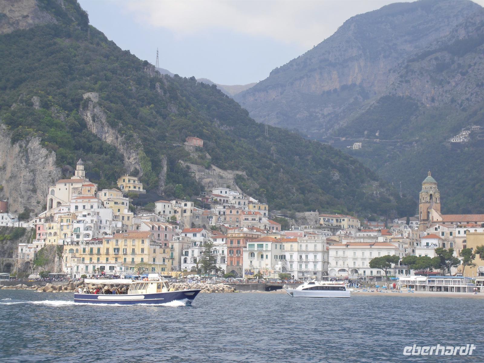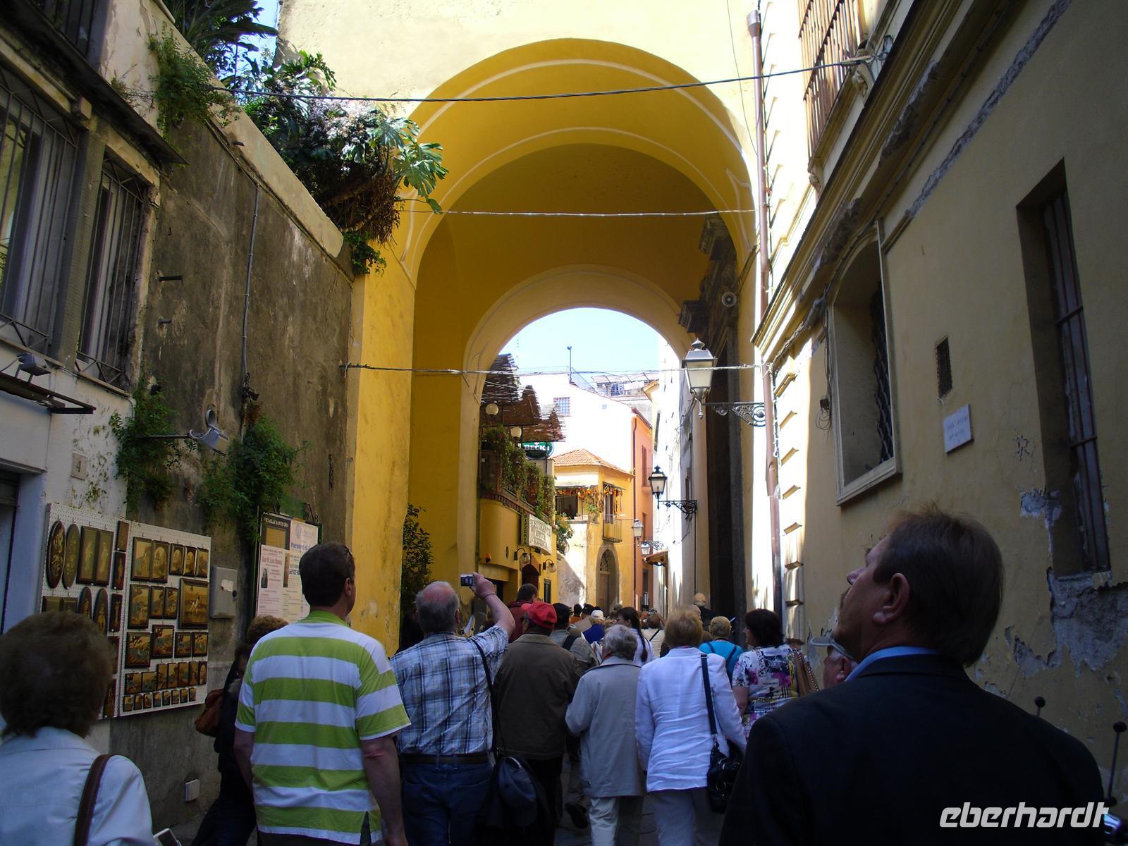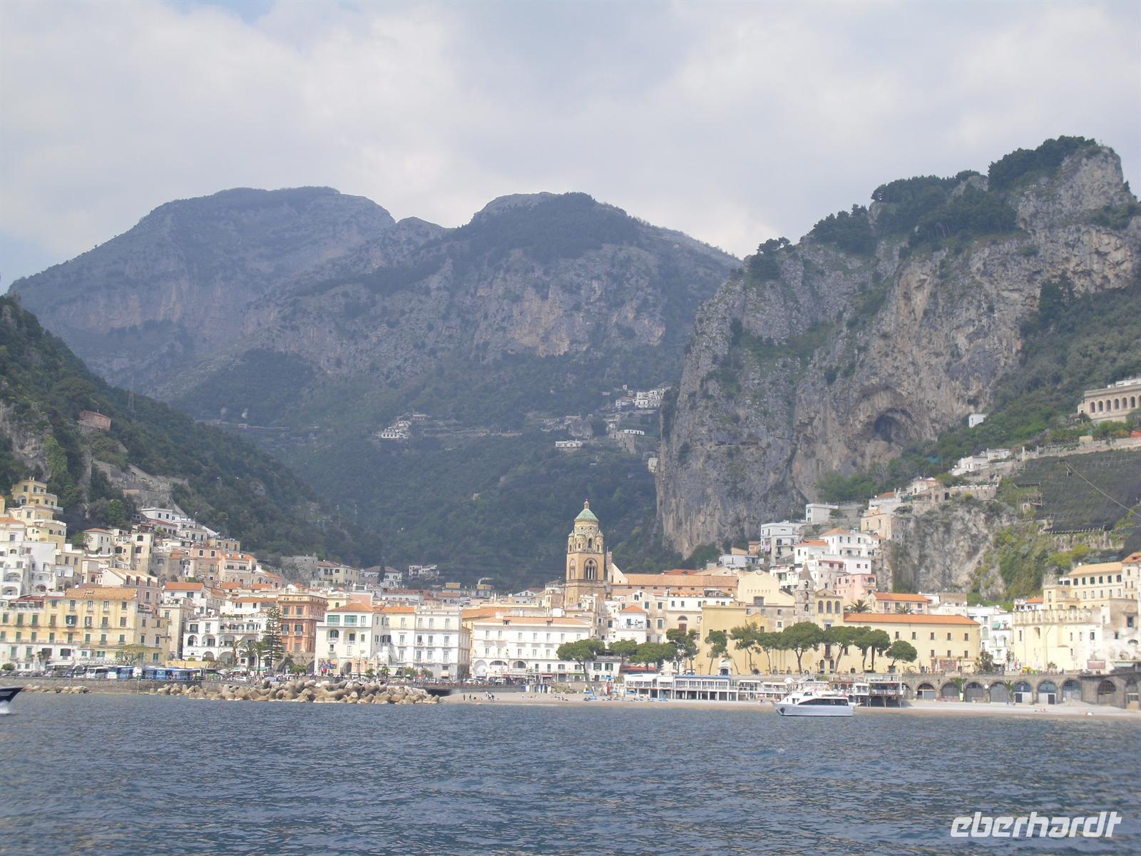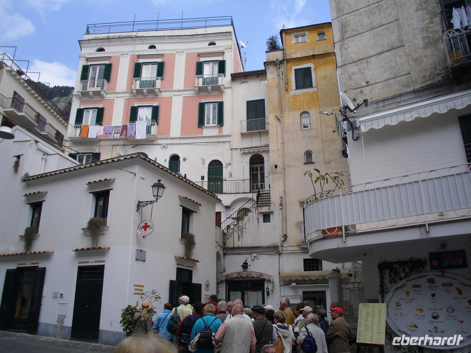 Amalfi war im Mittelalter eine der reichen und mächtigen vier Seerepubliken (neben Pisa, Genua und Venedig). Die Amalfitaner wurden durch den Fernhandel mit dem Orient, Ägypten, Konstantinopel, Südfrankreich und Norditalien reich, hatten eigene Handelsniederlassungen und eigene Wohnviertel in vielen Städten des Orients und auch in Süditalien und Sizilien. Das Seebeben Ende des 14. Jahrhunderts, die korrupte Herrschaft des spanischen Vizekönigs in Neapel, die Türkengefahr und noch mehr die Verlagerung der Handelswege nach der Entdeckung Amerikas machten aus Amalfi ein armes, von der Außenwelt abgeschnittenes Nest hinter den Bergen. Erst die Entdeckung durch den Tourismus nach 1850 brachte Änderung. Wir hatten genügend Zeit, um den Ort ganz individuell zu entdecken.