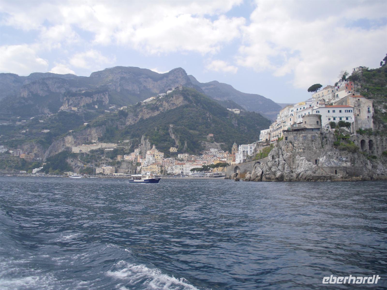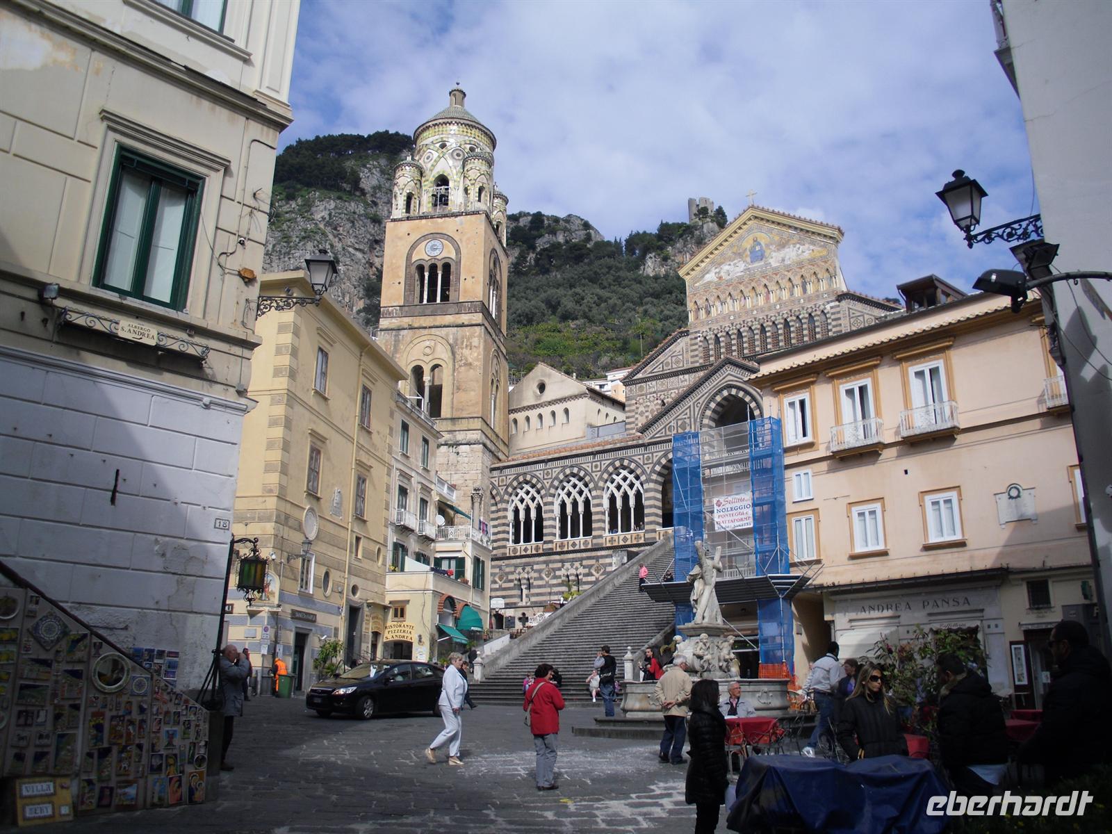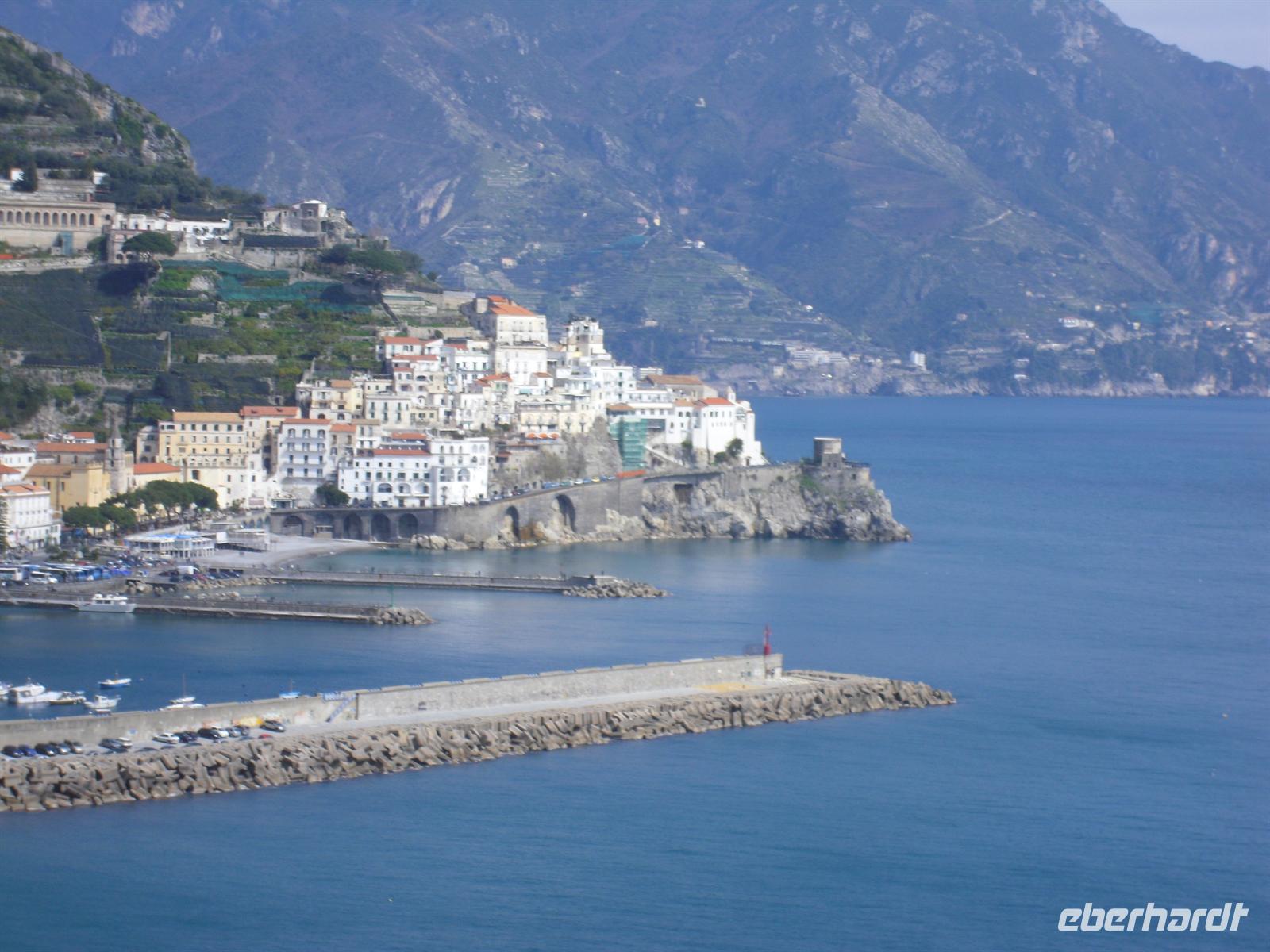 Amalfi war im Mittelalter eine der reichen und mächtigen vier Seerepubliken (neben Pisa, Genua und Venedig). Die Amalfitaner wurden durch den Fernhandel mit dem Orient, Ägypten, Konstantinopel, Südfrankreich und Norditalien reich, hatten eigene Handelsniederlassungen und eigene Wohnviertel in vielen Städten des Orients und auch in Süditalien und Sizilien. Das Seebeben Ende des 14. Jahrhunderts, die korrupte Herrschaft des spanischen Vizekönigs in Neapel, die Türkengefahr und noch mehr die Verlagerung der Handelswege nach der Entdeckung Amerikas machten aus Amalfi ein armes, von der Außenwelt abgeschnittenes Nest hinter den Bergen. Erst die Entdeckung durch den Tourismus nach 1850 brachte Änderung. Wir hatten genügend Zeit, um den Ort ganz individuell zu entdecken.