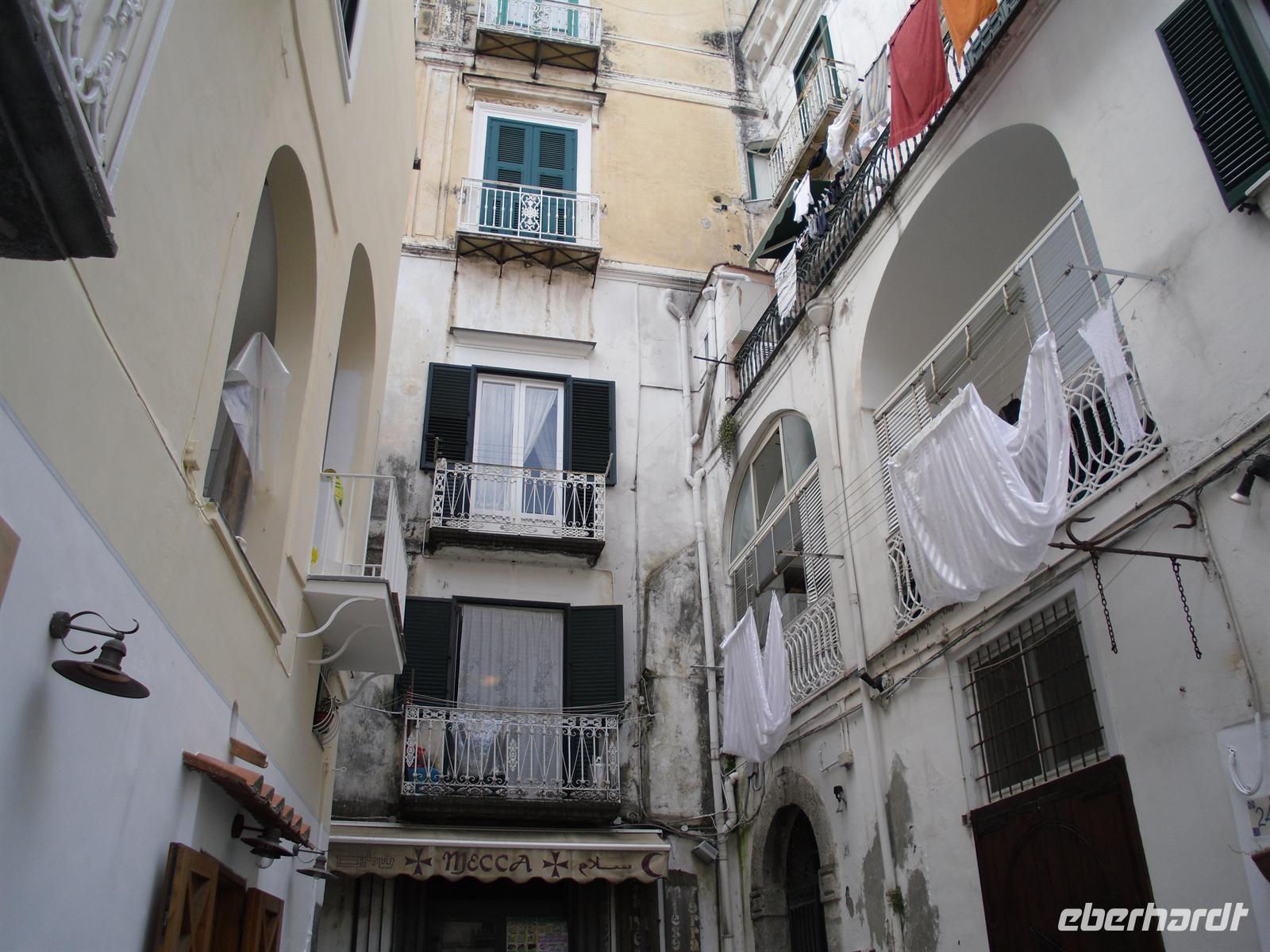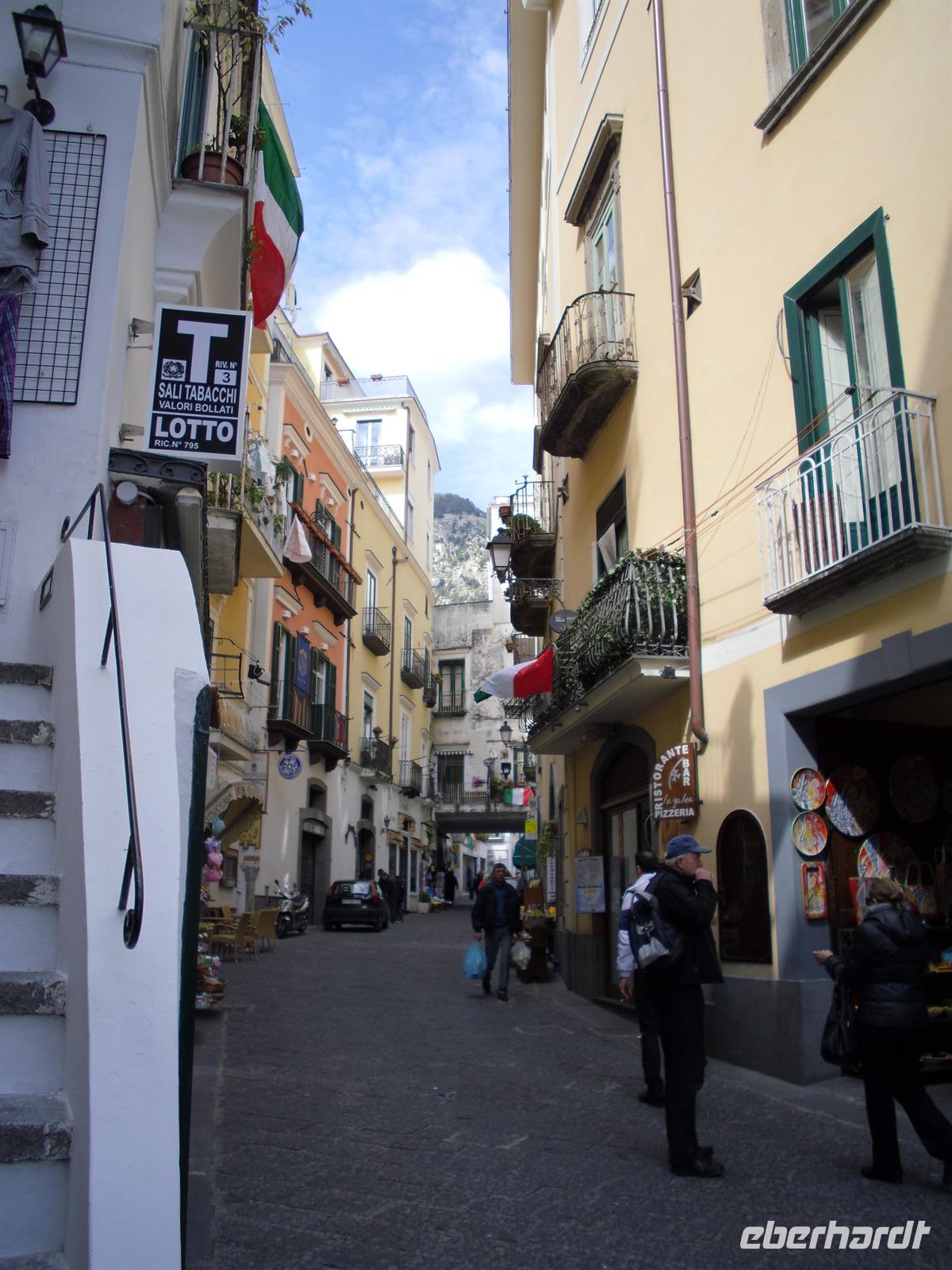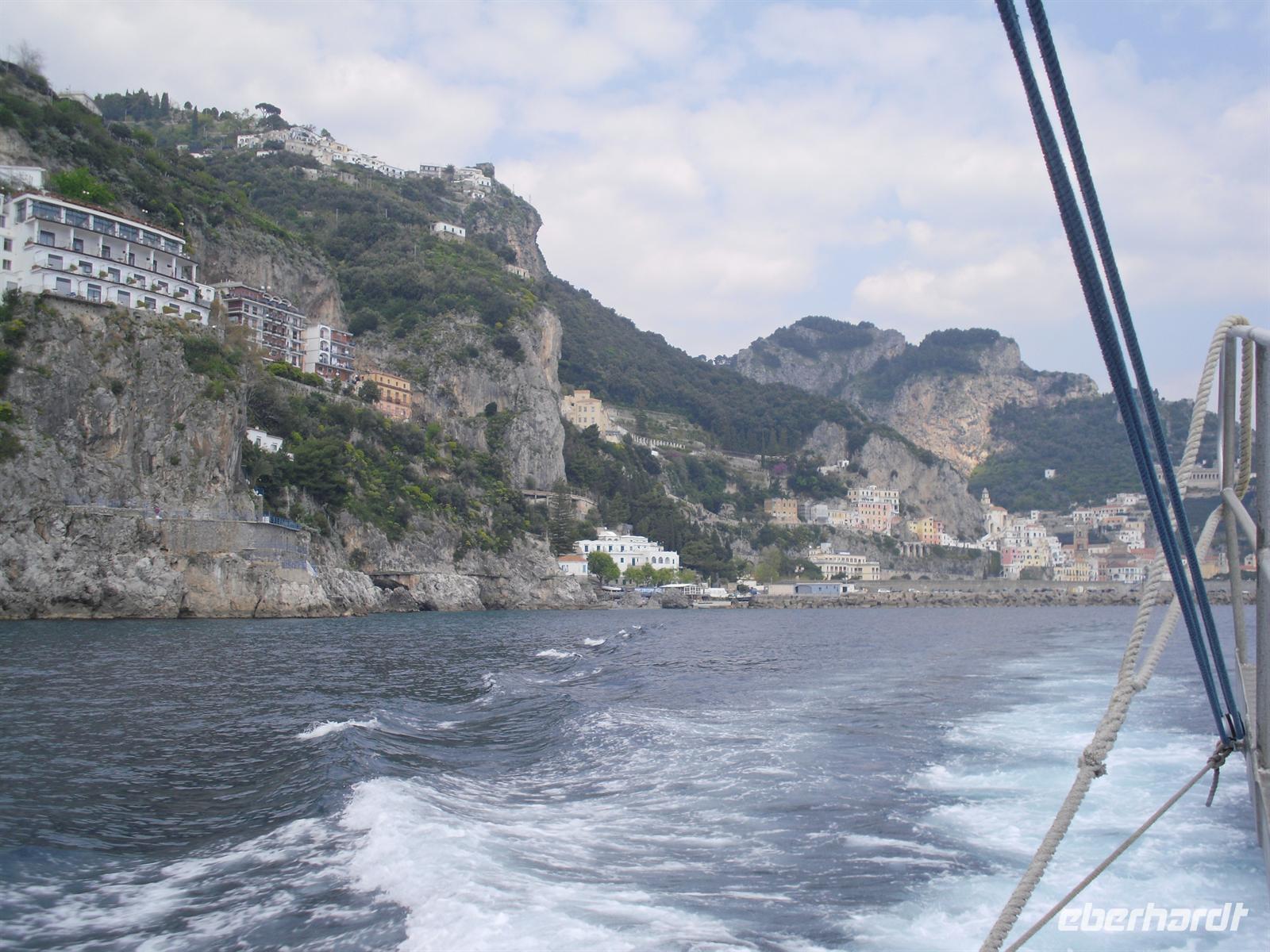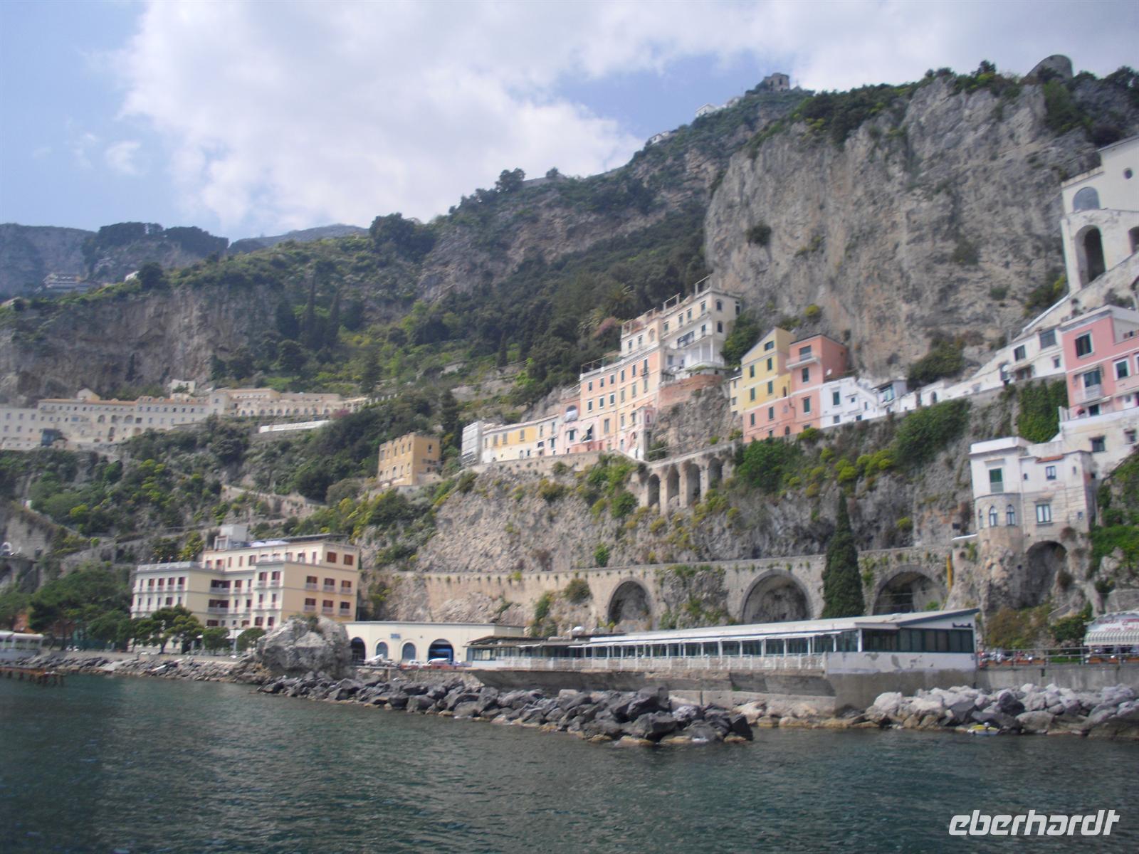 Amalfi war im Mittelalter eine der reichen und mächtigen vier Seerepubliken (neben Pisa, Genua und Venedig). Die Amalfitaner wurden durch den Fernhandel mit dem Orient, Ägypten, Konstantinopel, Südfrankreich und Norditalien reich, hatten eigene Handelsniederlassungen und eigene Wohnviertel in vielen Städten des Orients und auch in Süditalien und Sizilien. Das Seebeben Ende des 14. Jahrhunderts, die korrupte Herrschaft des spanischen Vizekönigs in Neapel, die Türkengefahr und noch mehr die Verlagerung der Handelswege nach der Entdeckung Amerikas machten aus Amalfi ein armes, von der Außenwelt abgeschnittenes Nest hinter den Bergen. Erst die Entdeckung durch den Tourismus nach 1850 brachte Änderung. Wir hatten genügend Zeit, um den Ort ganz individuell zu entdecken.
