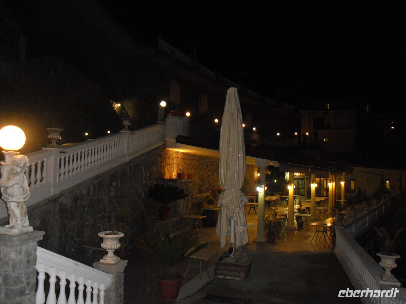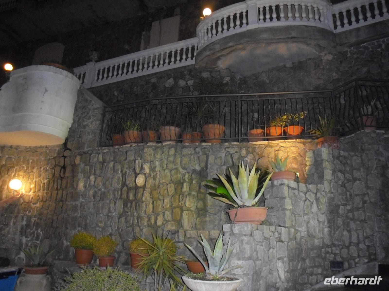 Während der Ausgrabungen wurden viele dieser Hohlräume mit Gips ausgegossen und wir haben heute ein makaber-plastisches Bild des Todeskampfes der Zurückgebliebenen: Hunde, Gefangene, Zögernde, die noch möglich viel von ihrem Besitz retten wollten, wahrscheinlich auch Plünderer. Pompei ist einzigartig - wir gehen durch Straßen, an Geschäften, Restaurants und Bädern vorbei, bis wir schließlich das Freudenhaus erreichen; ja, es ist nicht umsonst das älteste Gewerbe der Welt und selbst bei den Römern gab es bereits diese Etablissements. Nach dieser interessanten Führung in Pompei brechen wir nach Agerola auf, wo wir bereits im Grand Hotel "Sant´Orsola" erwartet und herzlich begrüßt werden. Das Grand Hotel "Sant'Orsola" liegt in ca. 600 Metern Höhe genau über der amalfitanischen Küste, der Ausblick auf die Amalfiküste ist von hier aus einzigartig. Wir erleben nun noch eine Überraschung, denn heute nehmen wir an einem Gala-Diner mit Tanzabend im Hotel teil. Einige von uns können sich zwar anfangs nicht so recht darüber freuen, denn wir sind ja schon den ganzen Tag auf den Beinen , aber letztendlich wird es ein schöner geselliger Abend und wir haben alle unseren Spass.