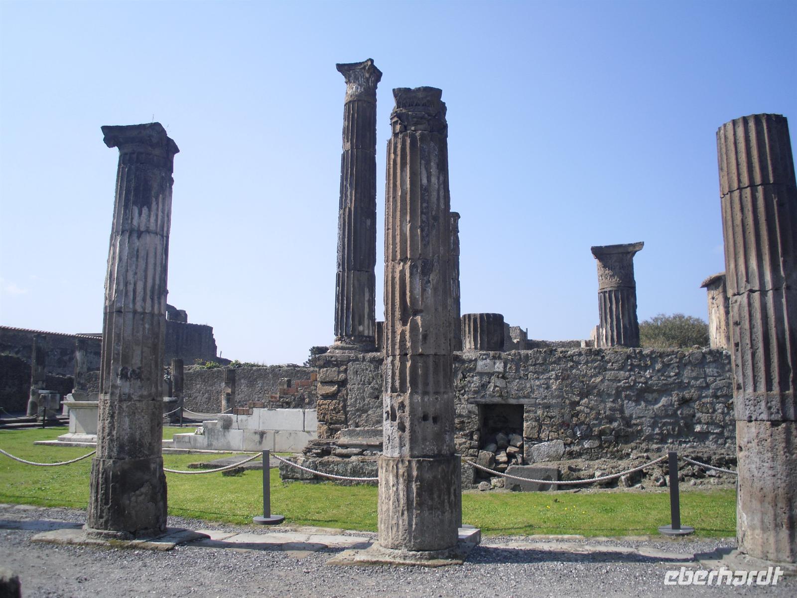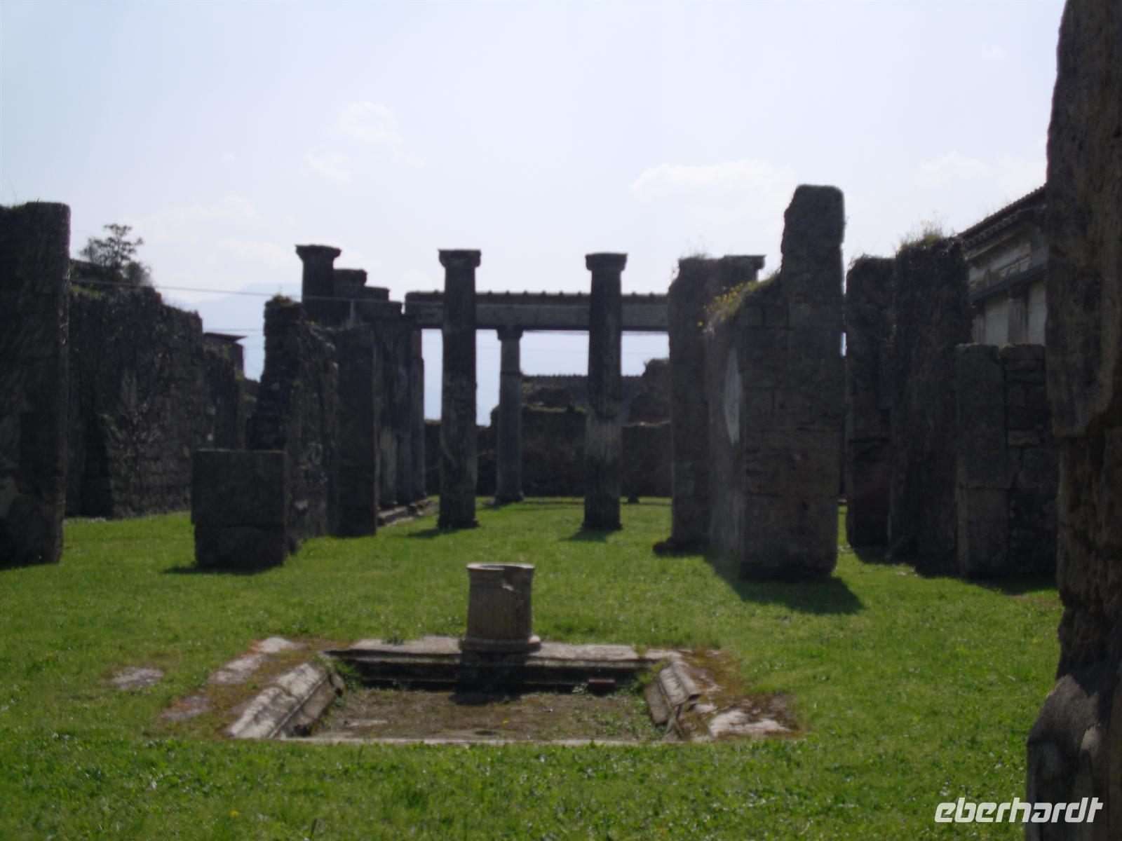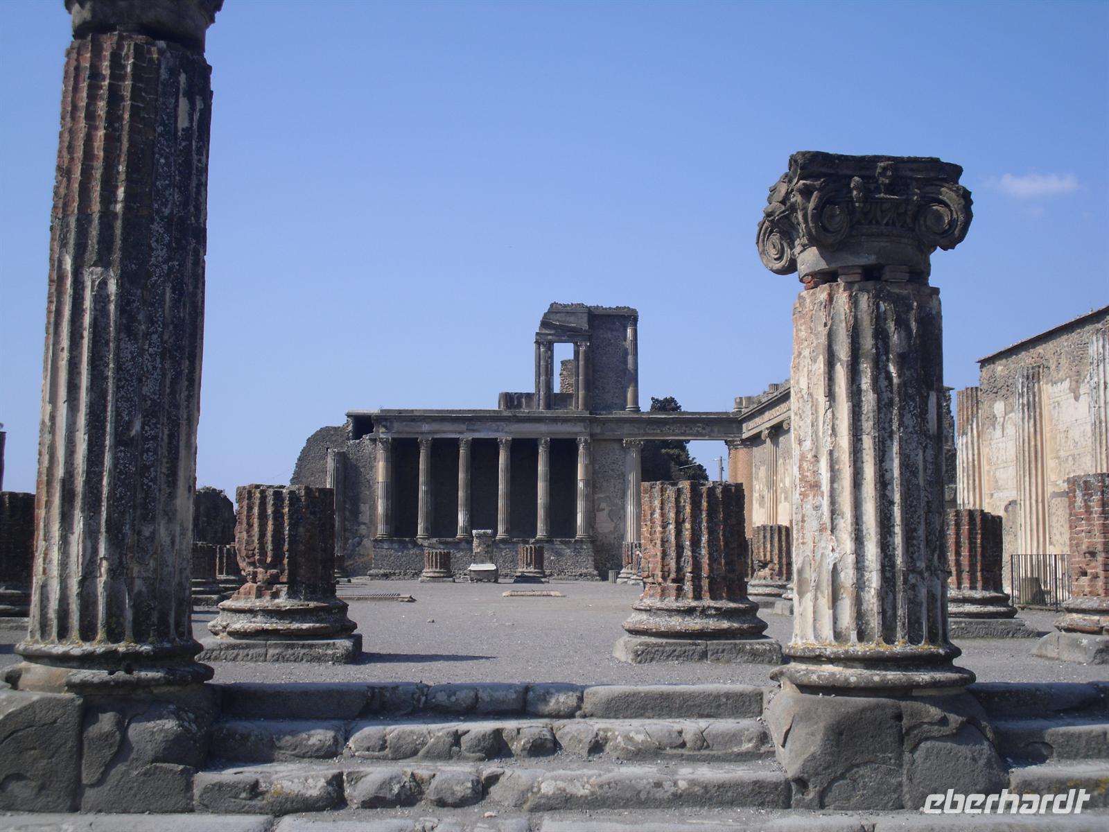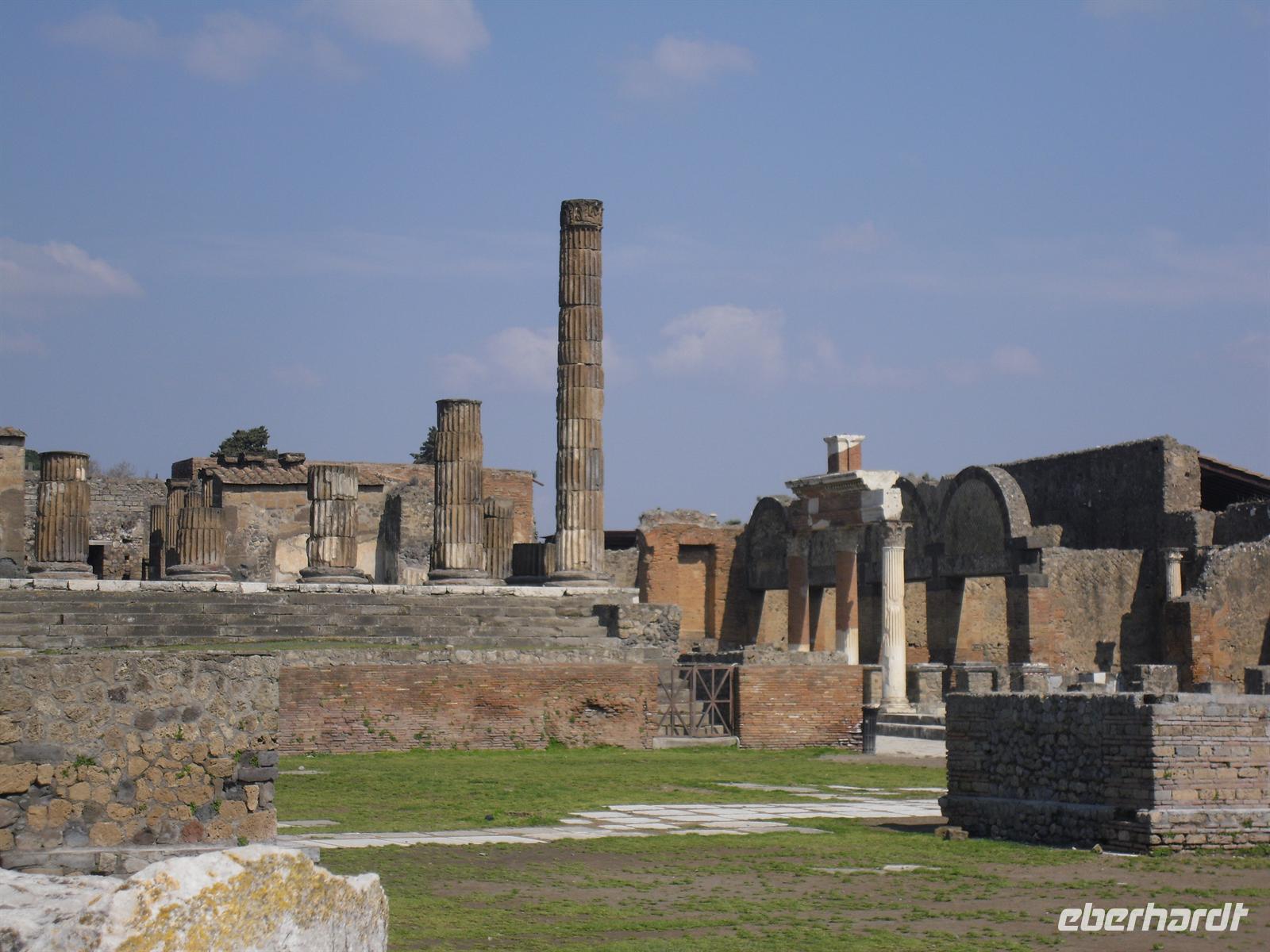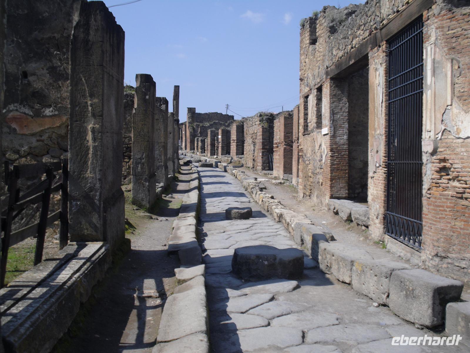 Die archäologische Zone von Pompei ist heute ein riesiges Freilichtmuseum römischer Lebensweise. Pompei ist eine Stadt, die innerhalb von Stunden von ihren Bewohnern verlassen wurde und dann bis zu ihrer Ausgrabung keine Veränderung mehr erfuhr. Mit der Katastrophe des Jahres 79 hatte niemand gerechnet. Das schwere Erdbeben 16 Jahre zuvor signalisierte nach heutigen Erkenntnissen wahrscheinlich das Ende einer langen Ruhephase des Vulkans, denn auch in späterer Zeit waren Ausbruchsperioden fast immer von Erdbeben begleitet oder vorangekündigt. Das ausgegrabene Pompei zeigt deutliche Spuren des Erdbebens und überall in der Stadt weisen Mörtelhaufen und Baumaterial auf den noch andauernden Wiederaufbau hin. Es ist für uns heute unvorstellbar, aber man muss sich vorstellen, dass im Jahre 79 der obere Teil des Vesuvs unter dem Druck der aufsteigenden Gase regelrecht explodierte. Über dem Berg stand eine riesige, wie eine Pinie geformte Aschenwolke, die dann auf die Umgebung, besonders auf Pompei niederregnete. Der Untergang Pompeis erfolgte keineswegs innerhalb von Minuten, sondern dauerte Stunden und Tage, so dass mit Sicherheit der größte Teil der Einwohner zumindest das nackte Leben retten konnte. Schließlich erstickten hochgiftige Gase und die sich meterhoch auftürmenden heißen Vulkanaschen alles Leben. Was jetzt noch an lebenden Wesen zurückgeblieben war, wurde von der Asche wie von einer Gussform eingehüllt, Fleisch und Knochen verbrannten und wurden von ätzenden, scharfen Mineralsalzen zerfressen - ein Hohlraum entstand.