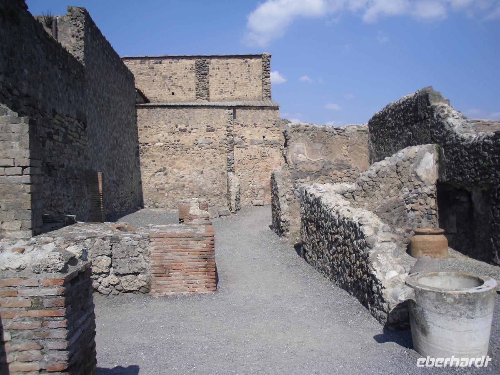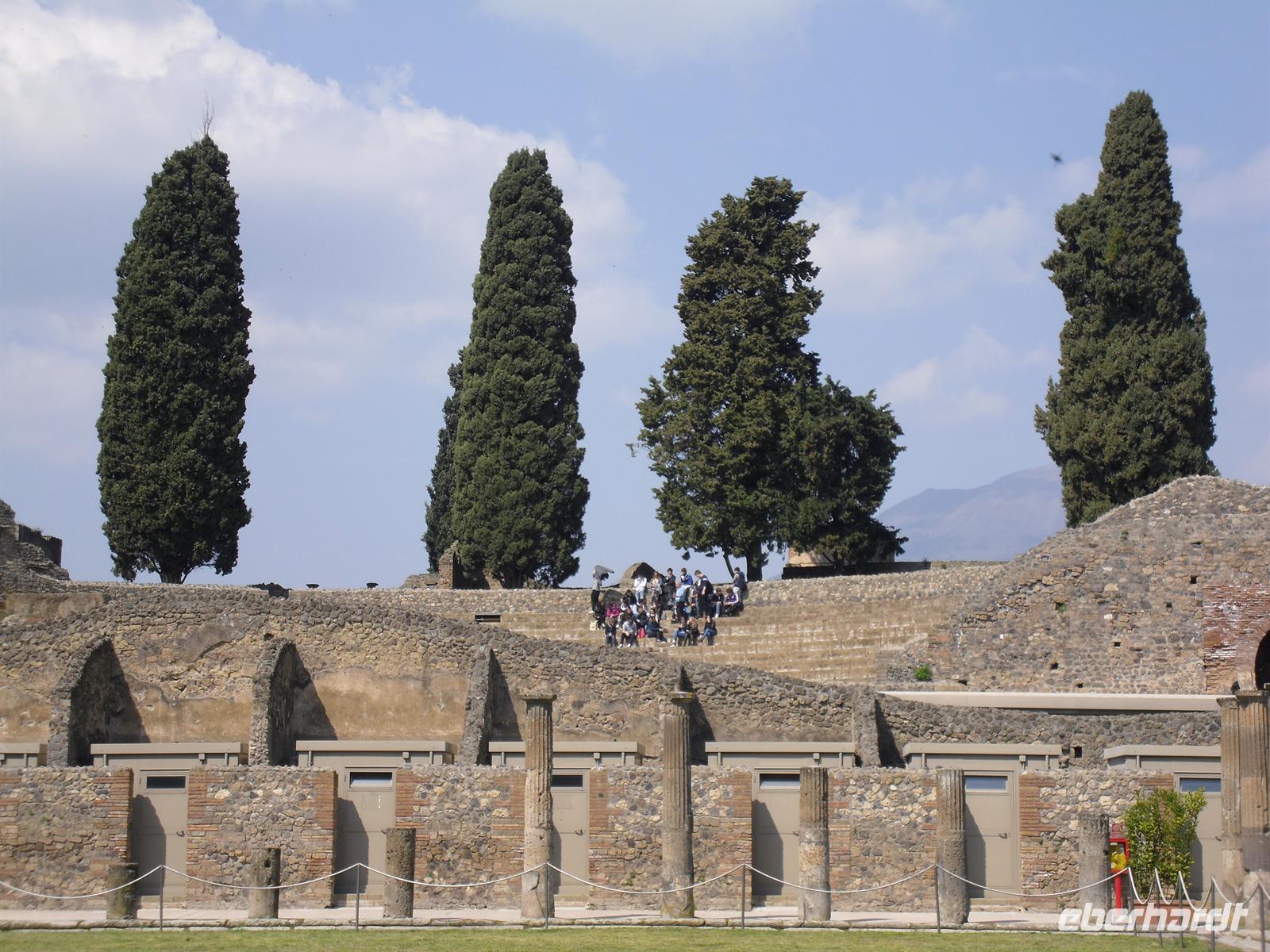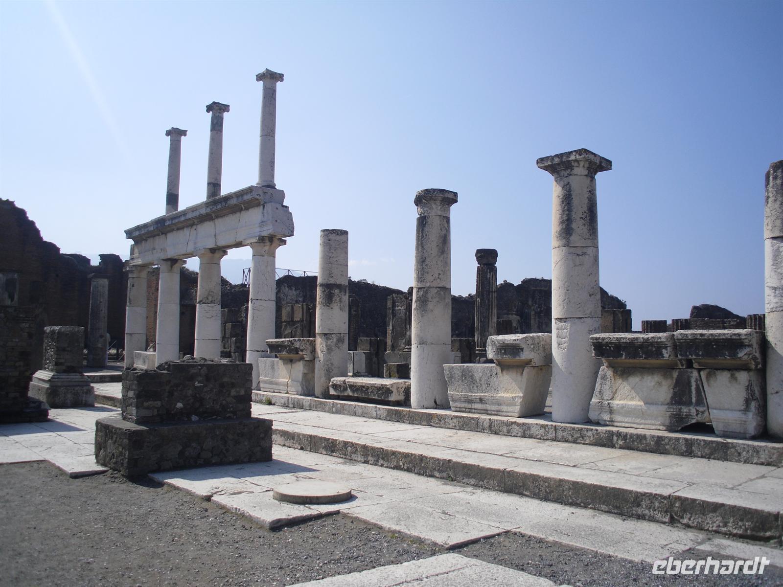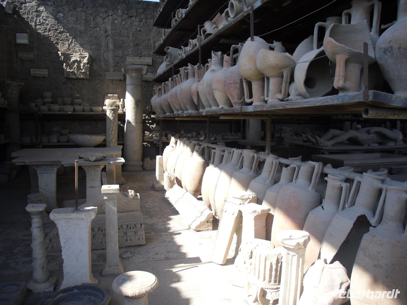 Die archäologische Zone von Pompei ist heute ein riesiges Freilichtmuseum römischer Lebensweise. Pompei ist eine Stadt, die innerhalb von Stunden von ihren Bewohnern verlassen wurde und dann bis zu ihrer Ausgrabung keine Veränderung mehr erfuhr. Mit der Katastrophe des Jahres 79 hatte niemand gerechnet. Das schwere Erdbeben 16 Jahre zuvor signalisierte nach heutigen Erkenntnissen wahrscheinlich das Ende einer langen Ruhephase des Vulkans, denn auch in späterer Zeit waren Ausbruchsperioden fast immer von Erdbeben begleitet oder vorangekündigt. Das ausgegrabene Pompei zeigt deutliche Spuren des Erdbebens und überall in der Stadt weisen Mörtelhaufen und Baumaterial auf den noch andauernden Wiederaufbau hin. Es ist für uns heute unvorstellbar, aber man muss sich vorstellen, dass im Jahre 79 der obere Teil des Vesuvs unter dem Druck der aufsteigenden Gase regelrecht explodierte. Über dem Berg stand eine riesige, wie eine Pinie geformte Aschenwolke, die dann auf die Umgebung, besonders auf Pompei niederregnete. Der Untergang Pompeis erfolgte keineswegs innerhalb von Minuten, sondern dauerte Stunden und Tage, so dass mit Sicherheit der größte Teil der Einwohner zumindest das nackte Leben retten konnte. Schließlich erstickten hochgiftige Gase und die sich meterhoch auftürmenden heißen Vulkanaschen alles Leben. Was jetzt noch an lebenden Wesen zurückgeblieben war, wurde von der Asche wie von einer Gussform eingehüllt, Fleisch und Knochen verbrannten und wurden von ätzenden, scharfen Mineralsalzen zerfressen - ein Hohlraum entstand.
