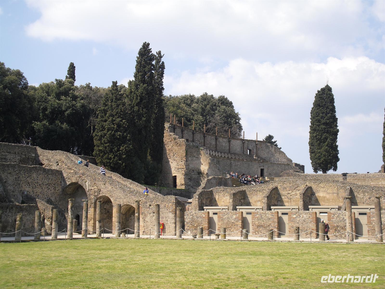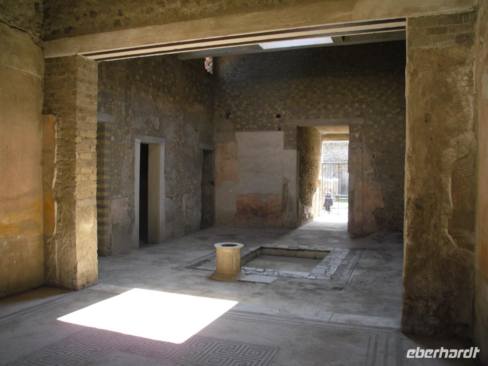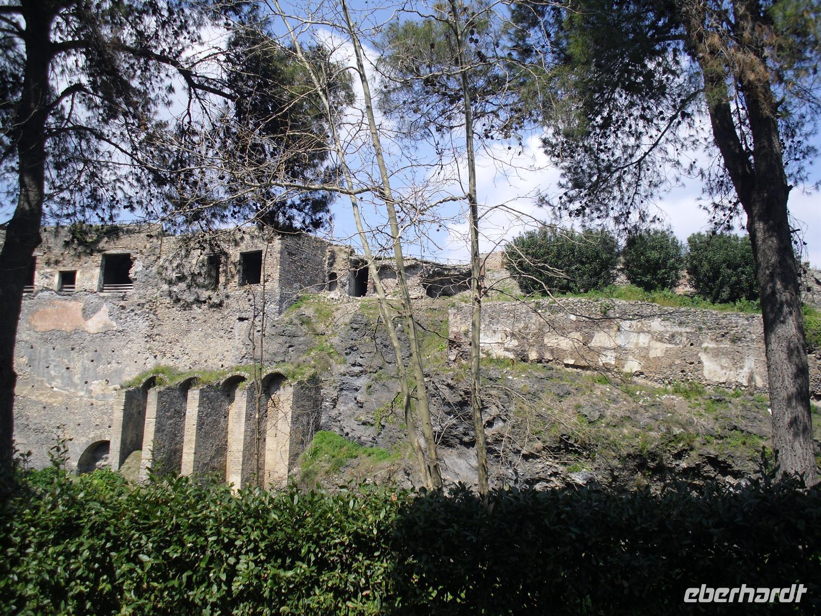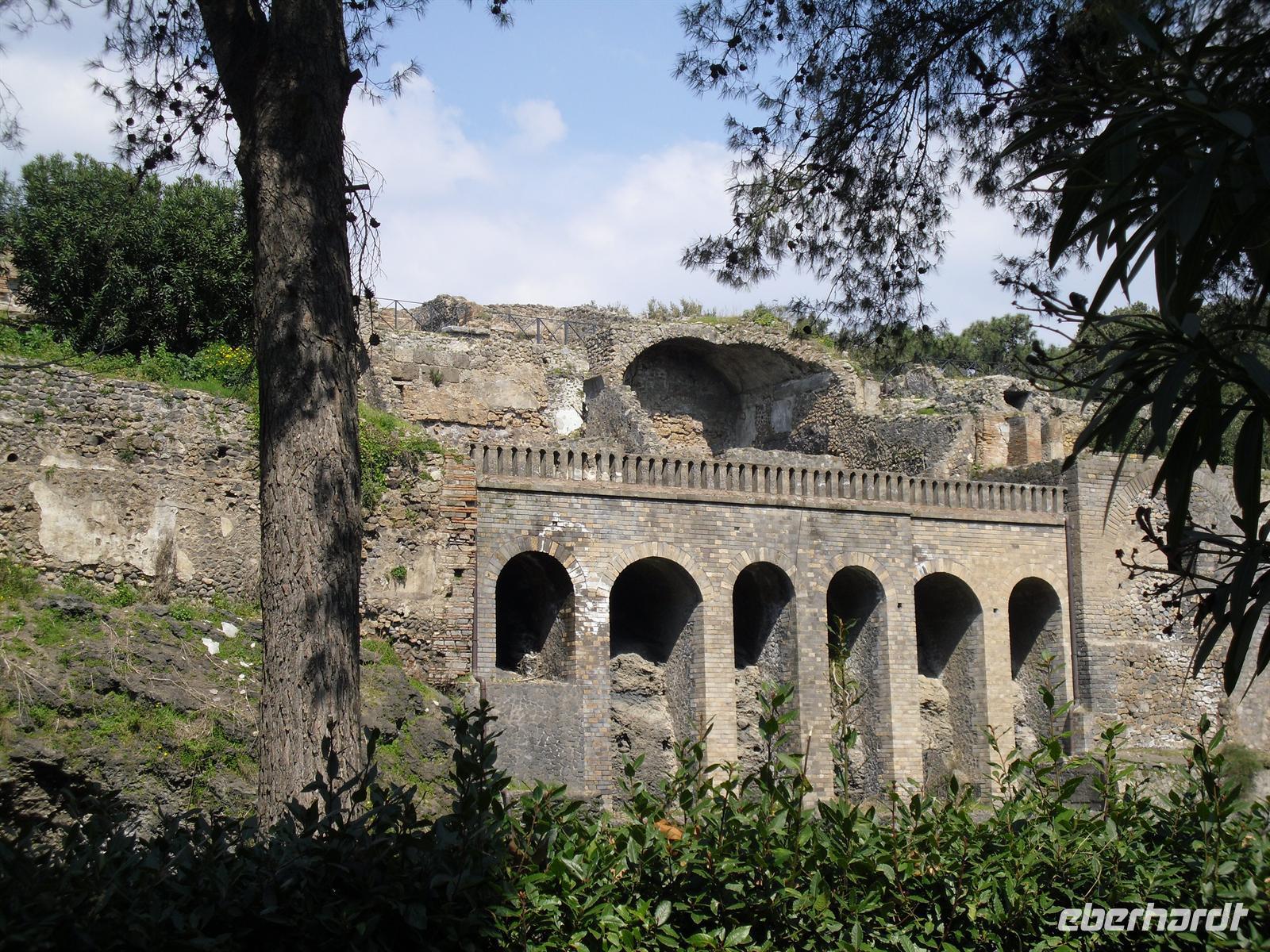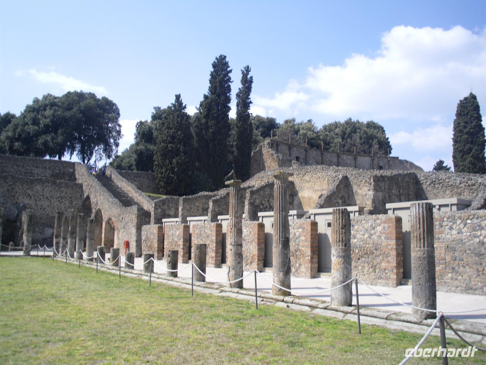 Die archäologische Zone von Pompei ist heute ein riesiges Freilichtmuseum römischer Lebensweise. Pompei ist eine Stadt, die innerhalb von Stunden von ihren Bewohnern verlassen wurde und dann bis zu ihrer Ausgrabung keine Veränderung mehr erfuhr. Mit der Katastrophe des Jahres 79 hatte niemand gerechnet. Das schwere Erdbeben 16 Jahre zuvor signalisierte nach heutigen Erkenntnissen wahrscheinlich das Ende einer langen Ruhephase des Vulkans, denn auch in späterer Zeit waren Ausbruchsperioden fast immer von Erdbeben begleitet oder vorangekündigt. Das ausgegrabene Pompei zeigt deutliche Spuren des Erdbebens und überall in der Stadt weisen Mörtelhaufen und Baumaterial auf den noch andauernden Wiederaufbau hin. Es ist für uns heute unvorstellbar, aber man muss sich vorstellen, dass im Jahre 79 der obere Teil des Vesuvs unter dem Druck der aufsteigenden Gase regelrecht explodierte. Über dem Berg stand eine riesige, wie eine Pinie geformte Aschenwolke, die dann auf die Umgebung, besonders auf Pompei niederregnete. Der Untergang Pompeis erfolgte keineswegs innerhalb von Minuten, sondern dauerte Stunden und Tage, so dass mit Sicherheit der größte Teil der Einwohner zumindest das nackte Leben retten konnte. Schließlich erstickten hochgiftige Gase und die sich meterhoch auftürmenden heißen Vulkanaschen alles Leben. Was jetzt noch an lebenden Wesen zurückgeblieben war, wurde von der Asche wie von einer Gussform eingehüllt, Fleisch und Knochen verbrannten und wurden von ätzenden, scharfen Mineralsalzen zerfressen - ein Hohlraum entstand.