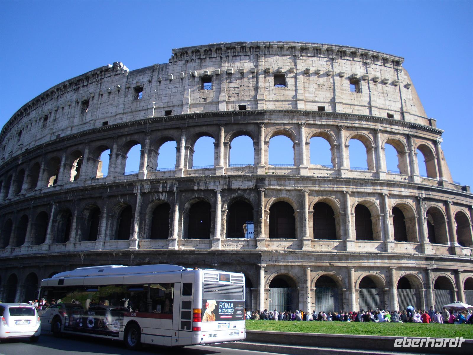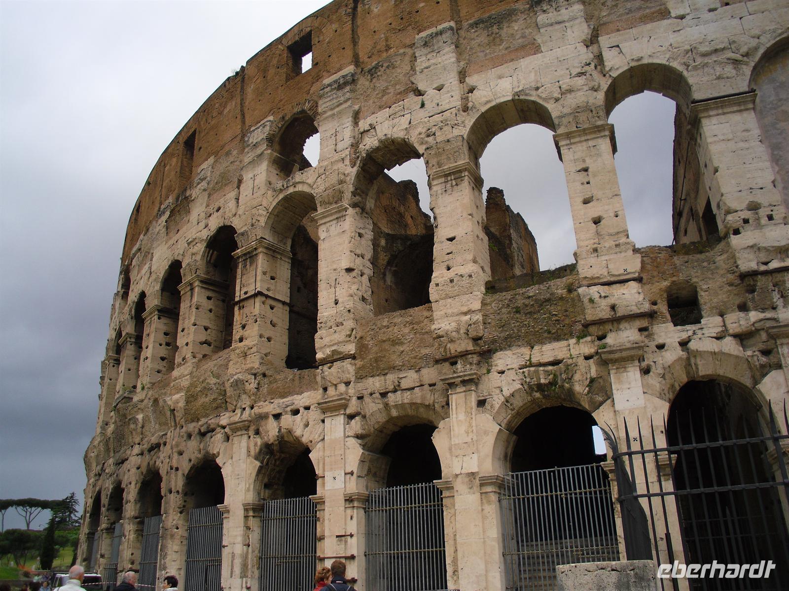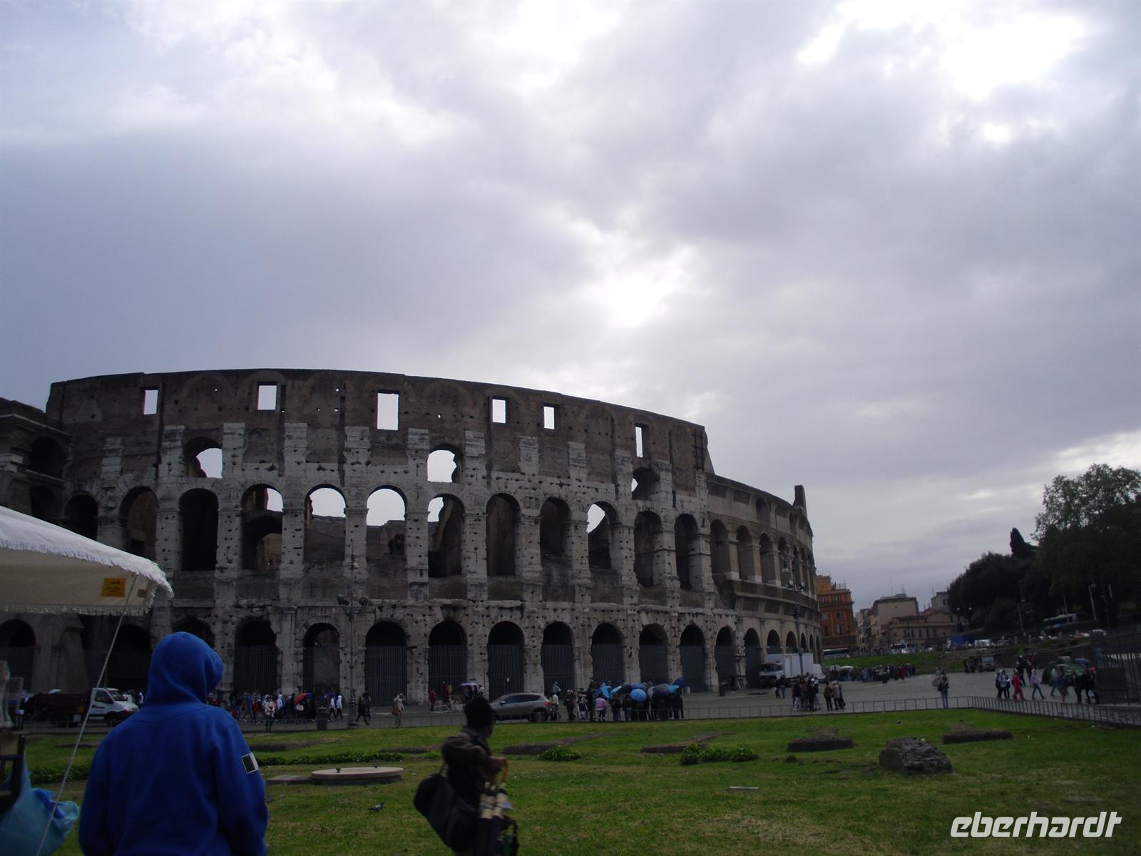 Ein Höhepunkt unserer Reise steht heute auf dem Programm. Wir fahren mit unserem Bus bis zur Endstation der Metro „Laurentina“, steigen hier in die Metro um und schließlich erreichen wir nach etwa 15-minütiger Fahrt mit der Metro die Station „Colosseo“. Hier treffen wir auch sofort unseren sympathischen Stadtführer Bernd Schlosser. Der Himmel ist besorgniserregend grau und die ersten Regentropfen lassen nicht lange auf sich warten…