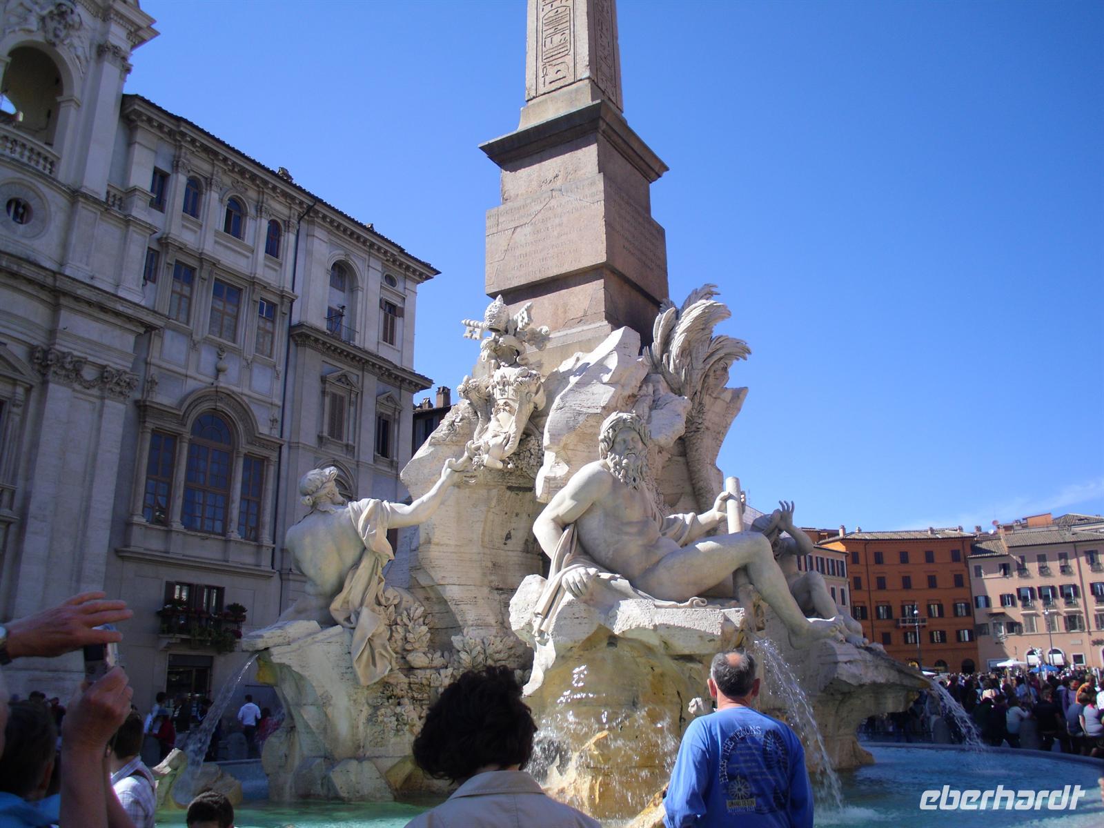Nächster Besichtigungsort ist das Pantheon - ein Zylinder mit einer Kuppel drauf, so einfach-genial ist die Konstruktion des Pantheons. Markus Agrippa, Schwiegersohn von Augustus, ließ das Pantheon 27 v. Chr. den Göttern bauen. Zum Abschluss des Tages erreichten wir den Piazza Navona, auch "Vier-Ströme-Platz" genannt. Die Römer selbst kommen auf die Piazza Navona, damit sie sicher sind, in Rom zu sein. Die Piazza ist das Herz der größten Altstadt der Welt. Hier haben wir am Ende unserer Stadtführung zum Glück auch noch etwas Freizeit, um uns in den zahlreichen Straßencafés einen leckeren Cappuccino schmecken zu lassen - einfach himmlisch...! Manch einer genehmigt sich auch eine leckere italienische Pizza, denn das Abendessen nimmt heute jeder individuell und nach seinem Geschmack ein. Am Abend kehren wir schließlich gemeinsam zum Hotel zurück. Ein Tag mit tollen Erlebnissen geht nun zu Ende.