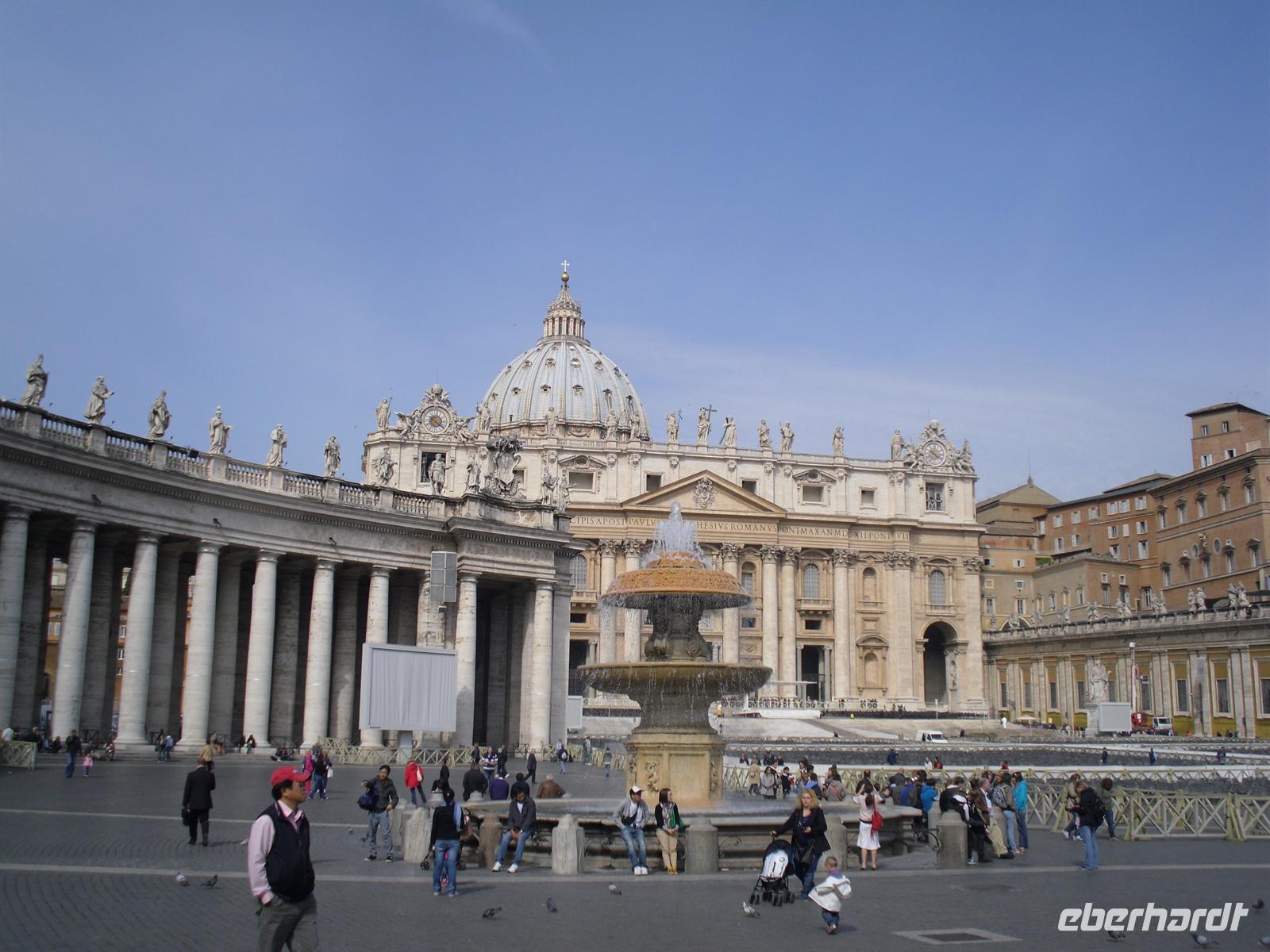 Nach dem Frühstück fahren wir heute zur Abwechslung mal wieder mit unserem eigenen Reisebus in die Stadt hinein - der Petersplatz ruft, das Zentrum der katholischen Christenheit. Achso, wir sind ja jetzt eigentlich gar nicht mehr in Rom, sondern im Vatikan.