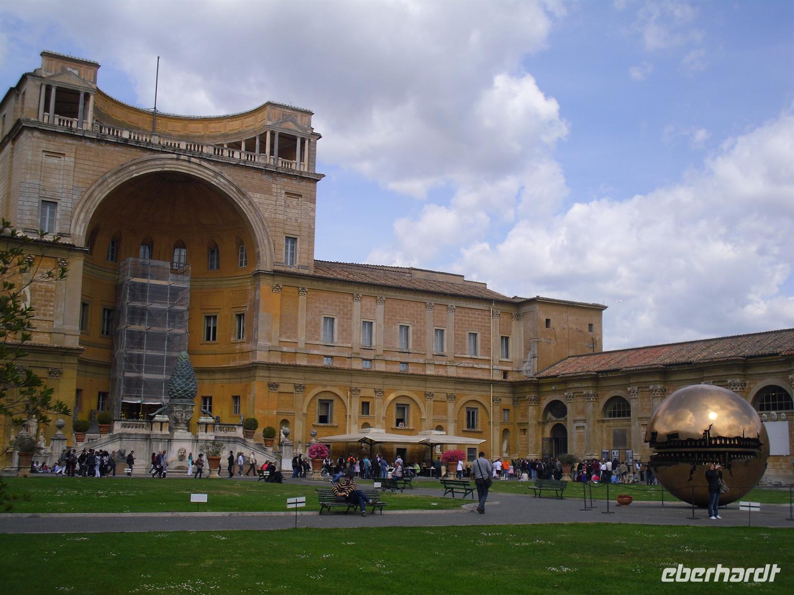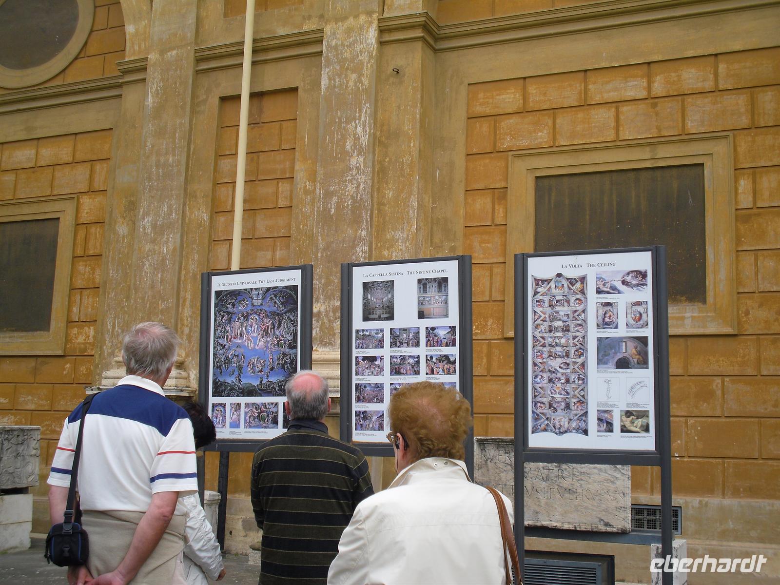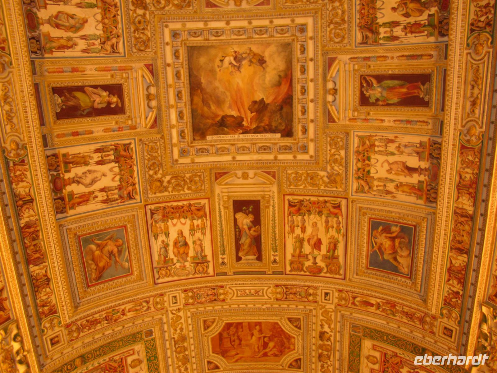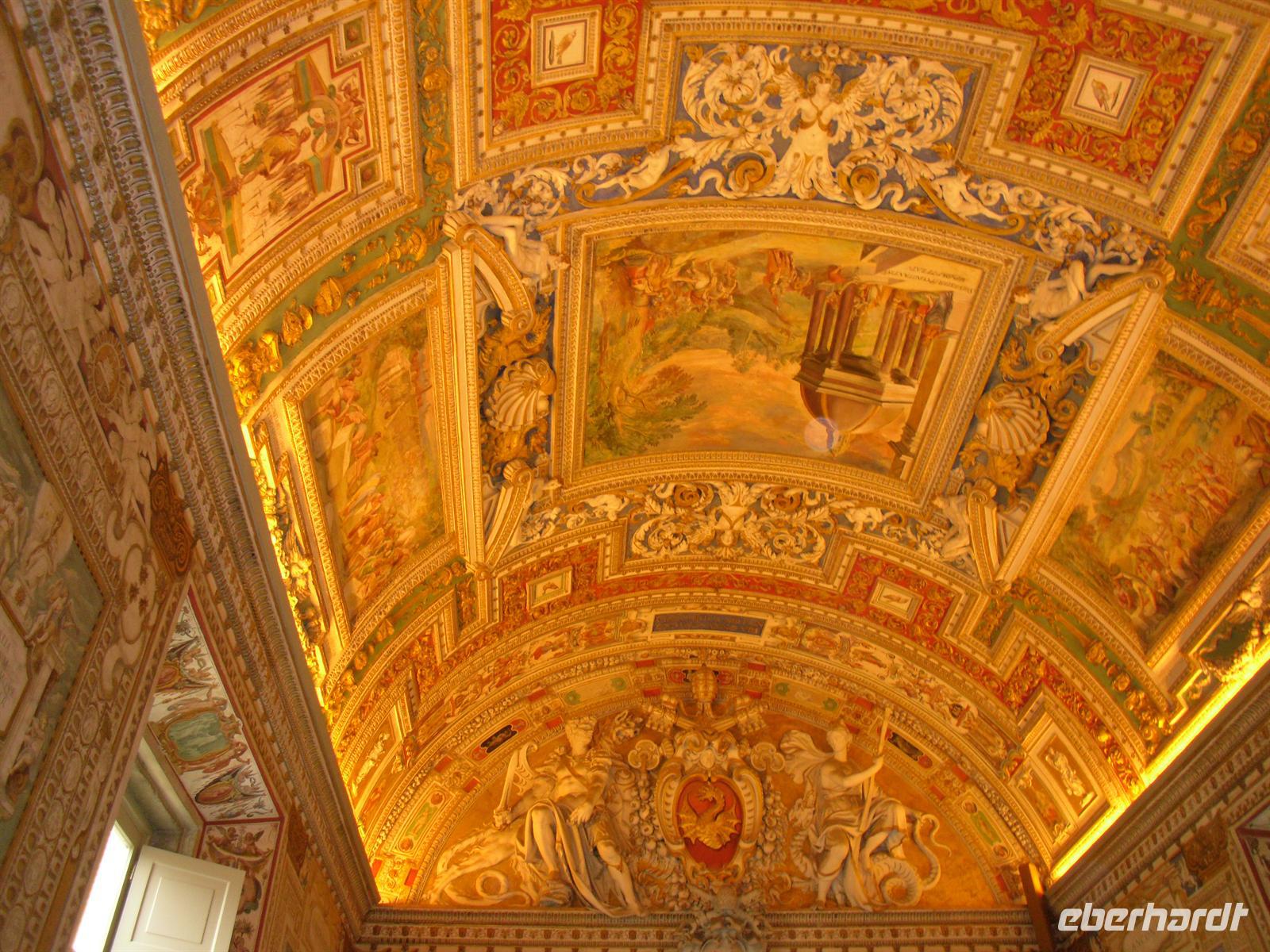 Der Petersdom ist die größte christliche Kirche der Welt und faßt 60.000 Menschen. Im Petersdom ist nach christlichem Glauben der Apostel Petrus begraben. Obwohl sie nicht offizieller Sitz des Papstes ist (diesen stellt die Lateranbasilika/San Giovanni in Laterano dar), hält der Papst hier fast alle seiner Messen. Die Kirche beherbergt zahlreiche Kunstwerke, zum Beispiel die "Pietà" von Michelangelo, die hinter Glas steht, da sie 1972 von einem Kirchenbesucher mit einer Axt beschädigt wurde. Im nordwestlichen Teil befindet sich die Statue des heiligen Petrus, deren Füße traditionell von den Pilgern geküßt werden. Über den Hauptaltar, dem Grab Petris, erstreckt sich ein 30 Meter hoher Baldachin aus Bronze, der von Bernini entworfen wurde. Anschließend besuchen wir die Vatikanischen Museen, denn der Vatikan verfügt über die größten Kunstsammlungen. Nach einer Besichtigungstour durch das etruskische, das ägyptische und ein paar andere Museen, kommt man schliesslich in einen langen Gang. Es handelt sich dabei um die Galleria delle Carte Geografiche. Die Decke strahlt nur so vor Gold und an den linken und rechten Wänden sieht man Fresken alter Landkarten Italiens. Sie wurden von 1580 bis 1583 von Antonio Danti gemalt. Die Landkarten gehören zu den ersten, in denen der Norden oben abgebildet ist. Als Besucher geht man wortwörtlich von Süden nach Norden durch den Gang. Auf der linken Seite sieht man Abbildungen der Westküste Italiens und auf der Rechten Abbildungen der adriatischen Küste.