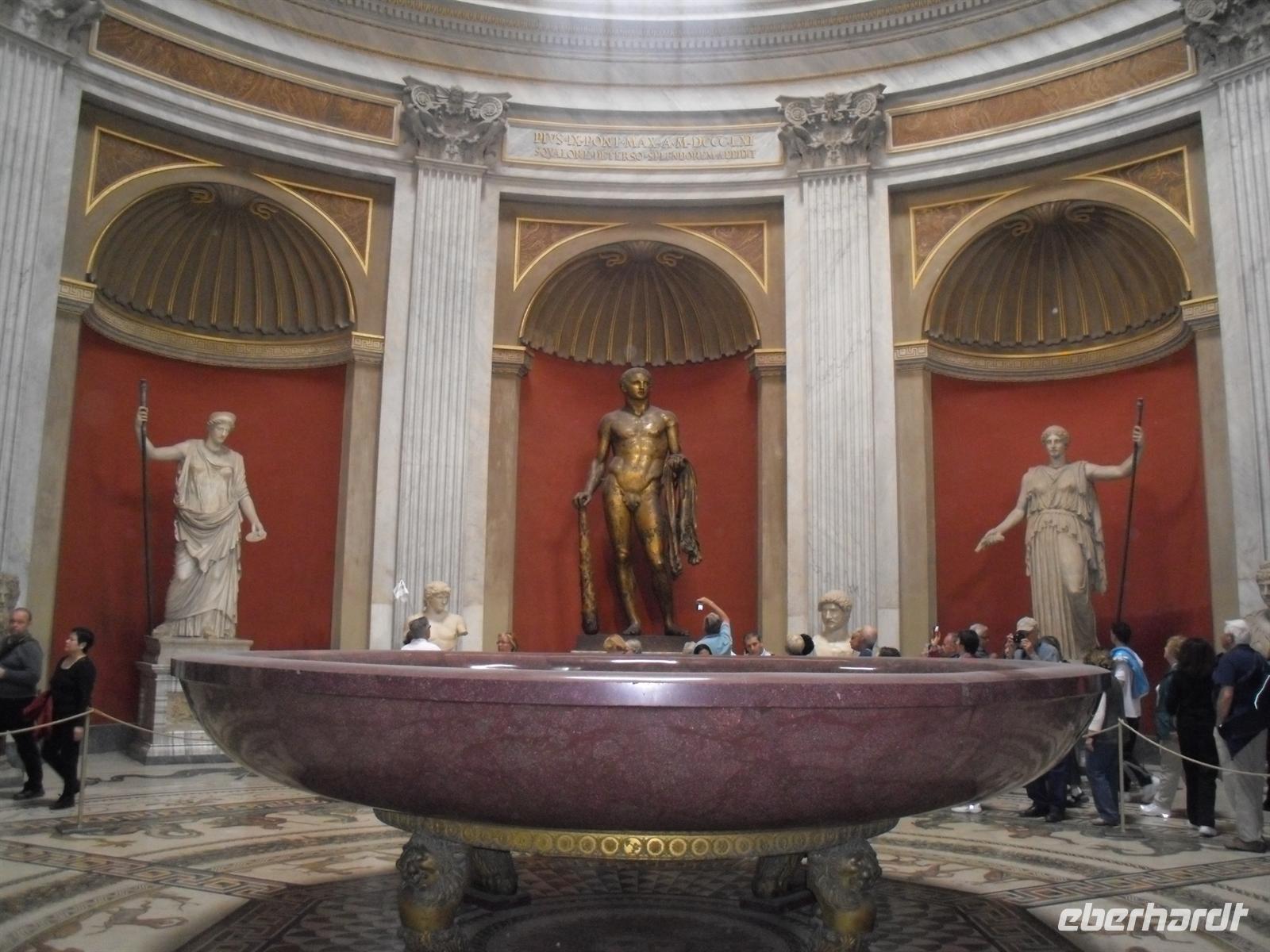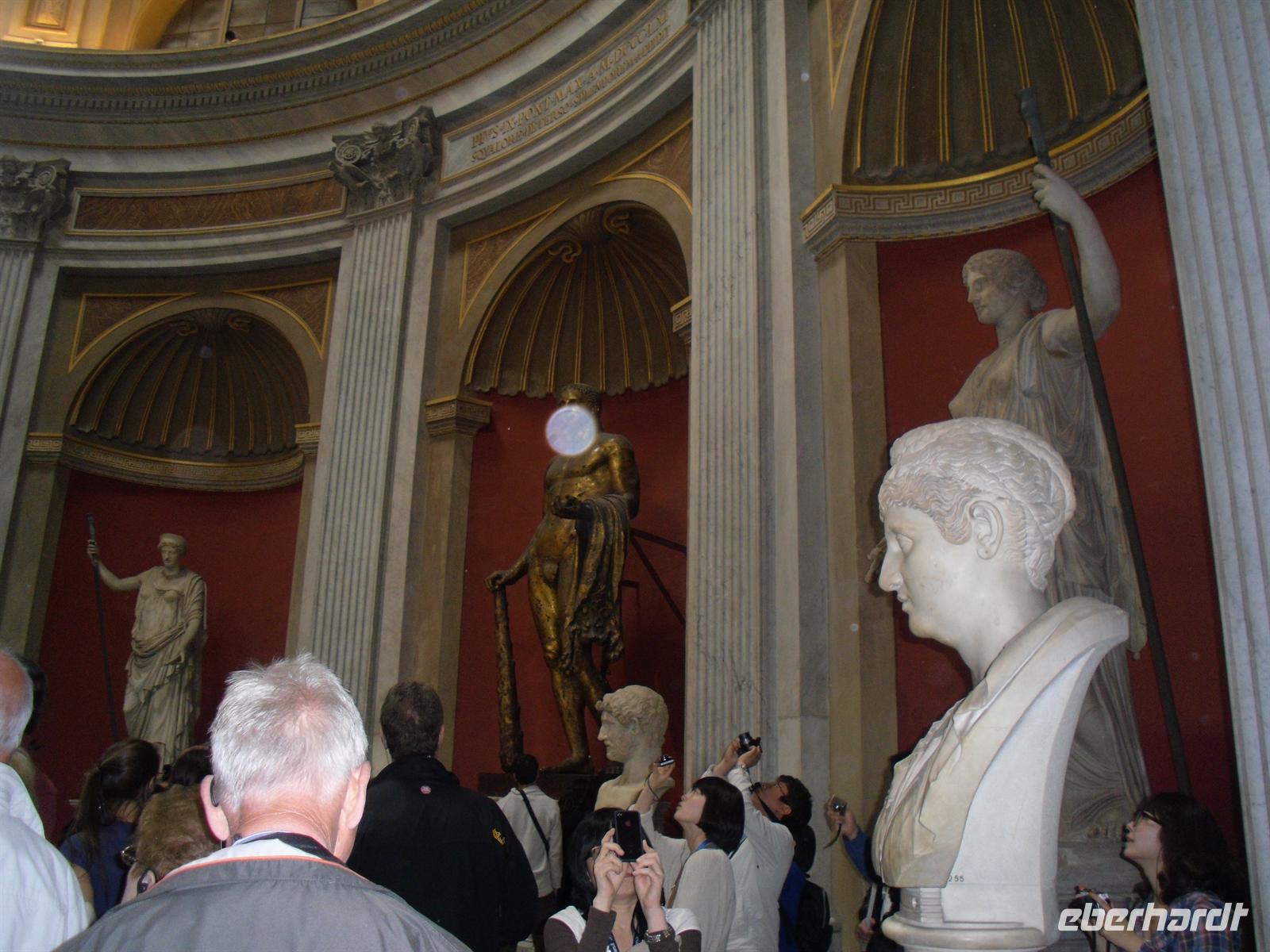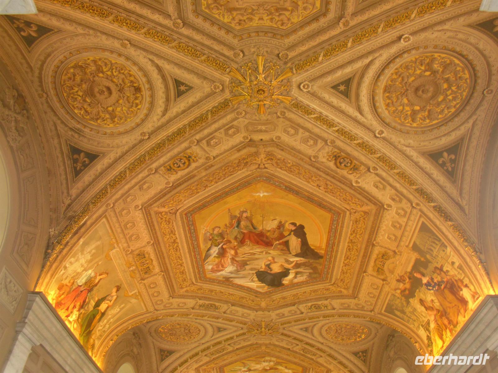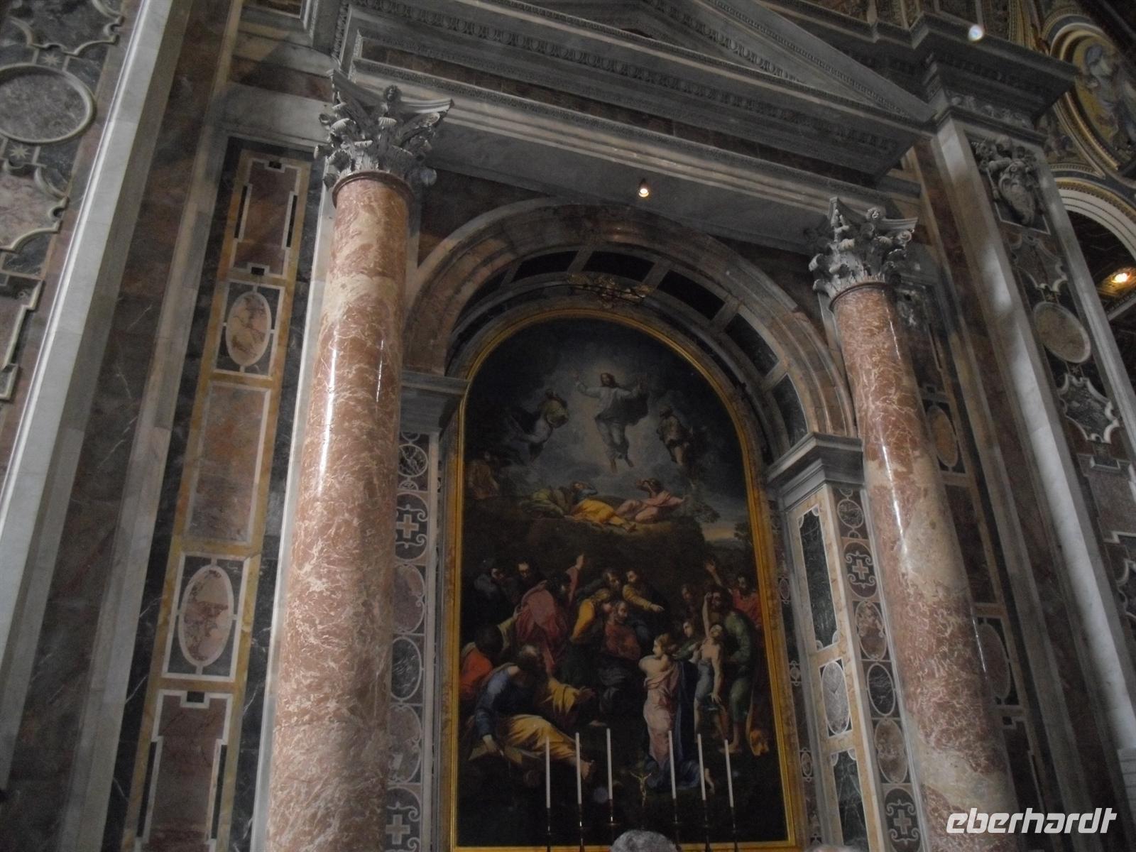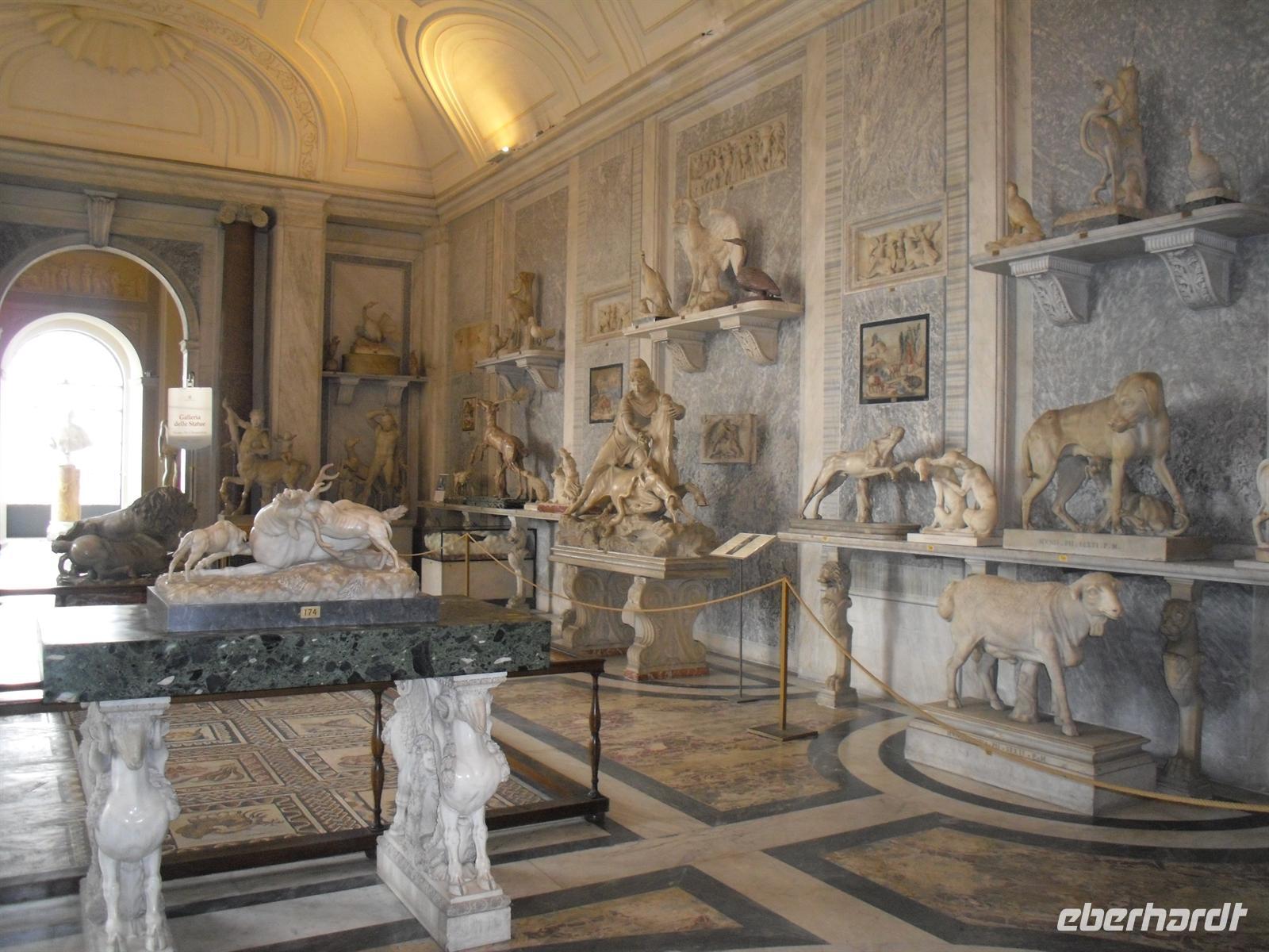 Der Petersdom ist die größte christliche Kirche der Welt und faßt 60.000 Menschen. Im Petersdom ist nach christlichem Glauben der Apostel Petrus begraben. Obwohl sie nicht offizieller Sitz des Papstes ist (diesen stellt die Lateranbasilika/San Giovanni in Laterano dar), hält der Papst hier fast alle seiner Messen. Die Kirche beherbergt zahlreiche Kunstwerke, zum Beispiel die "Pietà" von Michelangelo, die hinter Glas steht, da sie 1972 von einem Kirchenbesucher mit einer Axt beschädigt wurde. Im nordwestlichen Teil befindet sich die Statue des heiligen Petrus, deren Füße traditionell von den Pilgern geküßt werden. Über den Hauptaltar, dem Grab Petris, erstreckt sich ein 30 Meter hoher Baldachin aus Bronze, der von Bernini entworfen wurde. Anschließend besuchen wir die Vatikanischen Museen, denn der Vatikan verfügt über die größten Kunstsammlungen. Nach einer Besichtigungstour durch das etruskische, das ägyptische und ein paar andere Museen, kommt man schliesslich in einen langen Gang. Es handelt sich dabei um die Galleria delle Carte Geografiche. Die Decke strahlt nur so vor Gold und an den linken und rechten Wänden sieht man Fresken alter Landkarten Italiens. Sie wurden von 1580 bis 1583 von Antonio Danti gemalt. Die Landkarten gehören zu den ersten, in denen der Norden oben abgebildet ist. Als Besucher geht man wortwörtlich von Süden nach Norden durch den Gang. Auf der linken Seite sieht man Abbildungen der Westküste Italiens und auf der Rechten Abbildungen der adriatischen Küste.