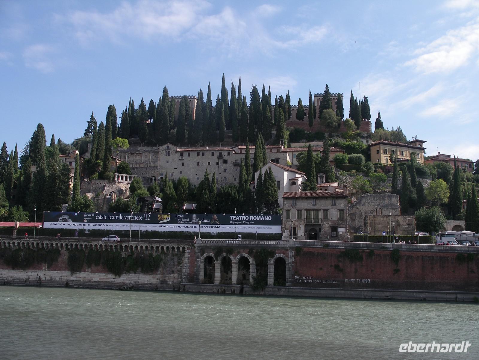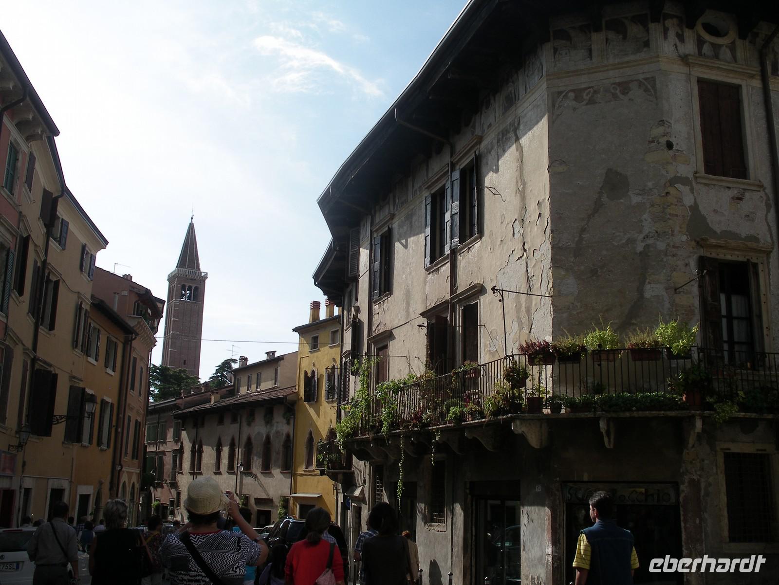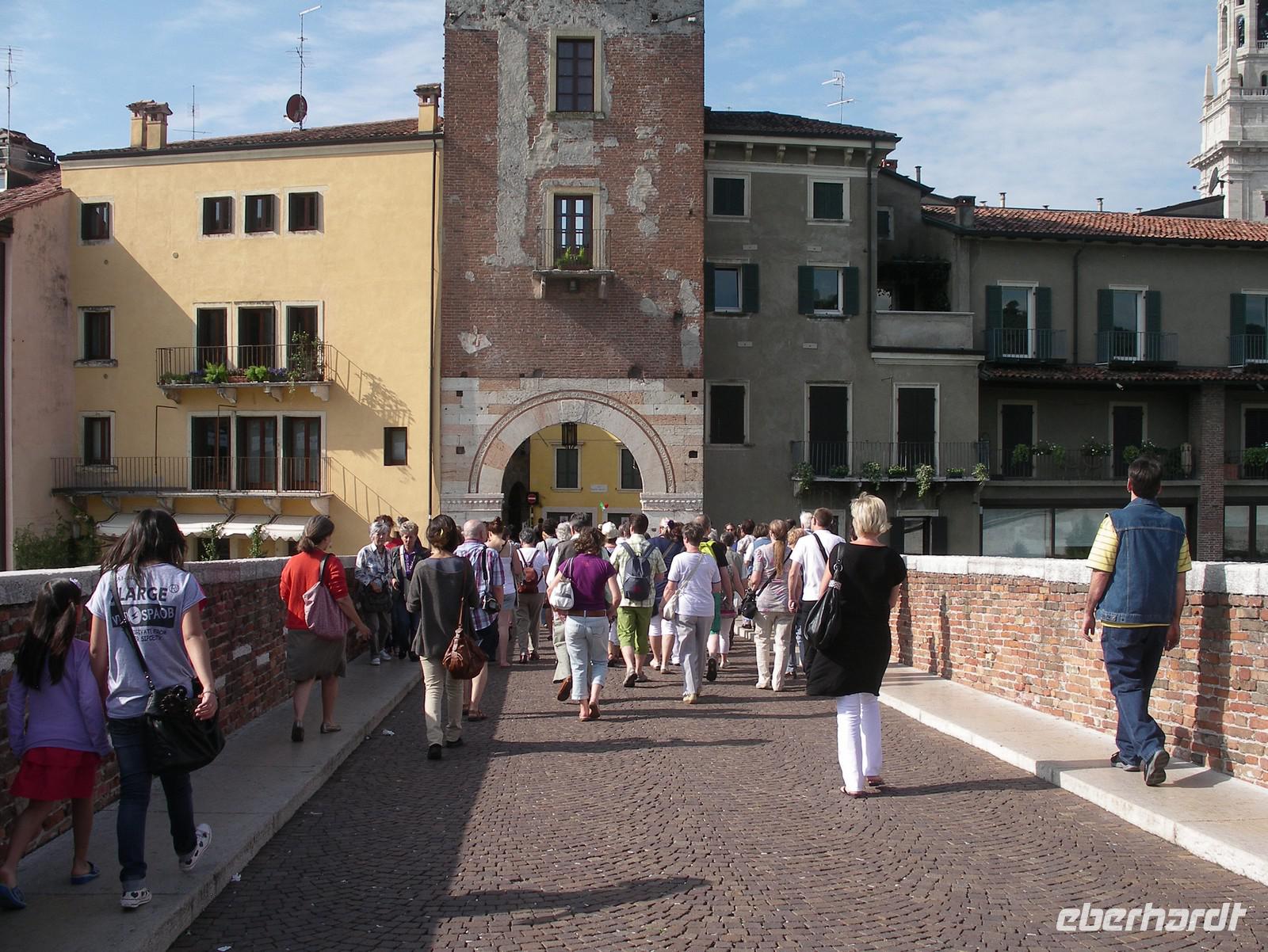 Unser Bus mit Jörg und Petra brachte uns ein Stück am Gardasee entlang. Über Malcesine fuhren wir auf der Gardesana Orientale nach Garda und weiter zur Autobahn in Affi. Dort mußten wir eine Einfahrgenehmigung für Verona holen, wo wir uns zu einem interessanten Stadtrundgang mit Stefano trafen.