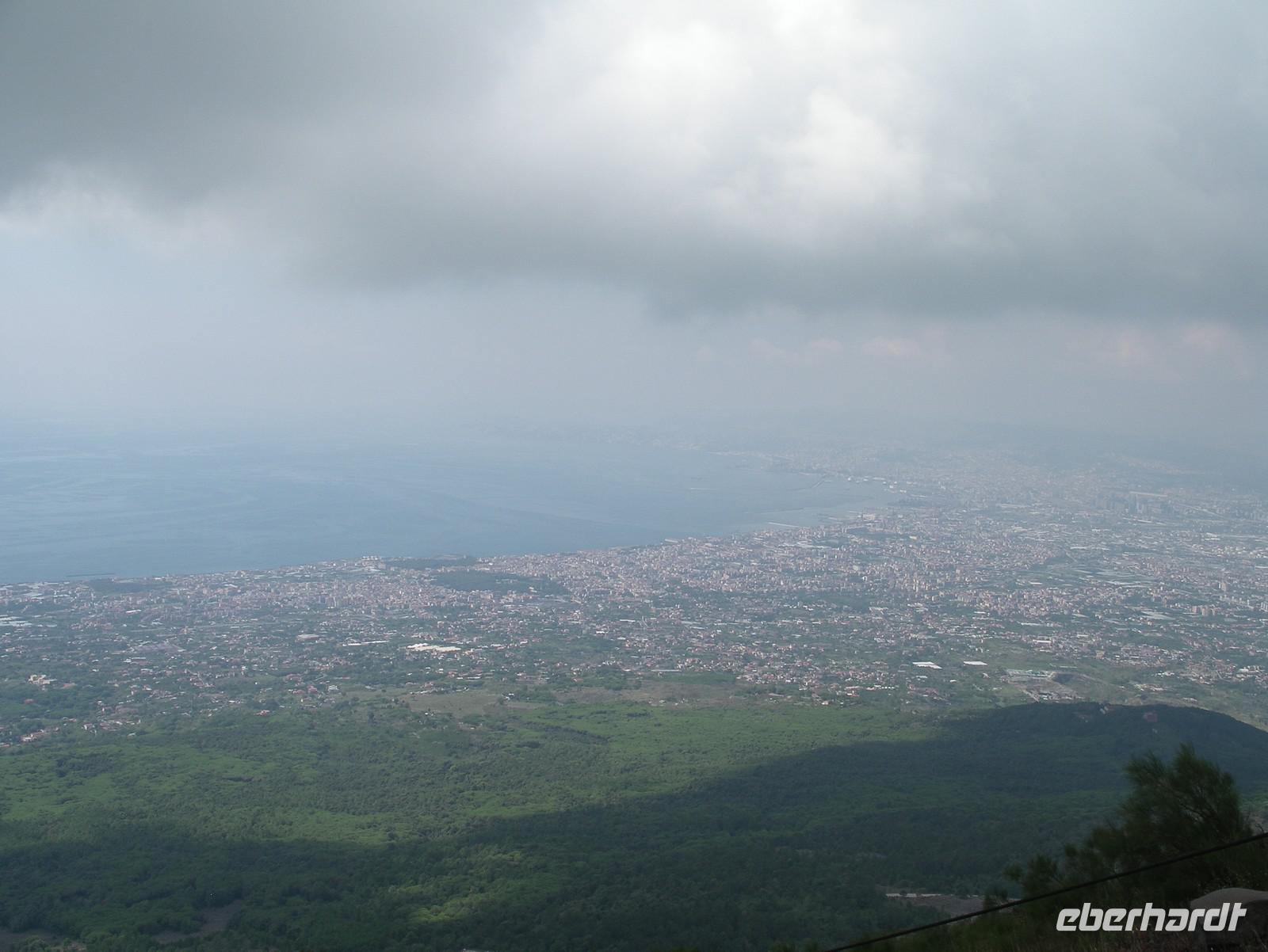 Die Auffahrt auf 1017 m Höhe war schon ein Erlebnis, wir hatten einen traumhaften Blick auf den Golf von Neapel. Für uns war es auch interessant zu sehen, wie sich die Busse aneinander vorbeischieben mußten! Die Fahrer waren sicher nicht so begeistert! Die meisten Gäste wanderten auf den Vulkan, um einen Blick in den Krater zu werfen und es dampfte sogar!