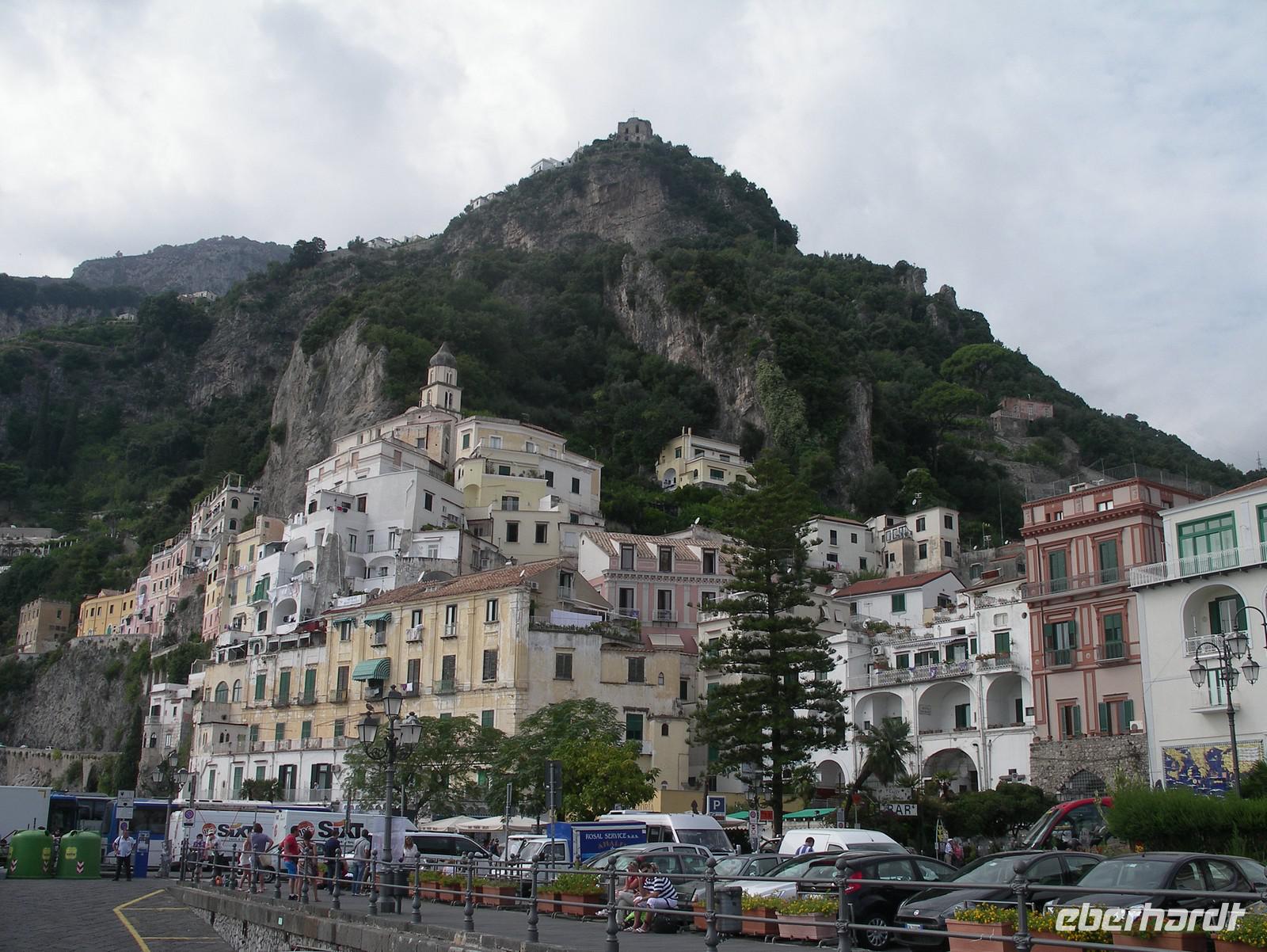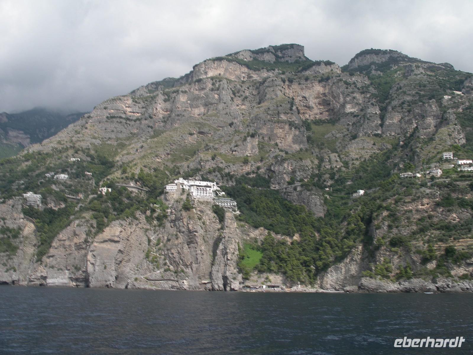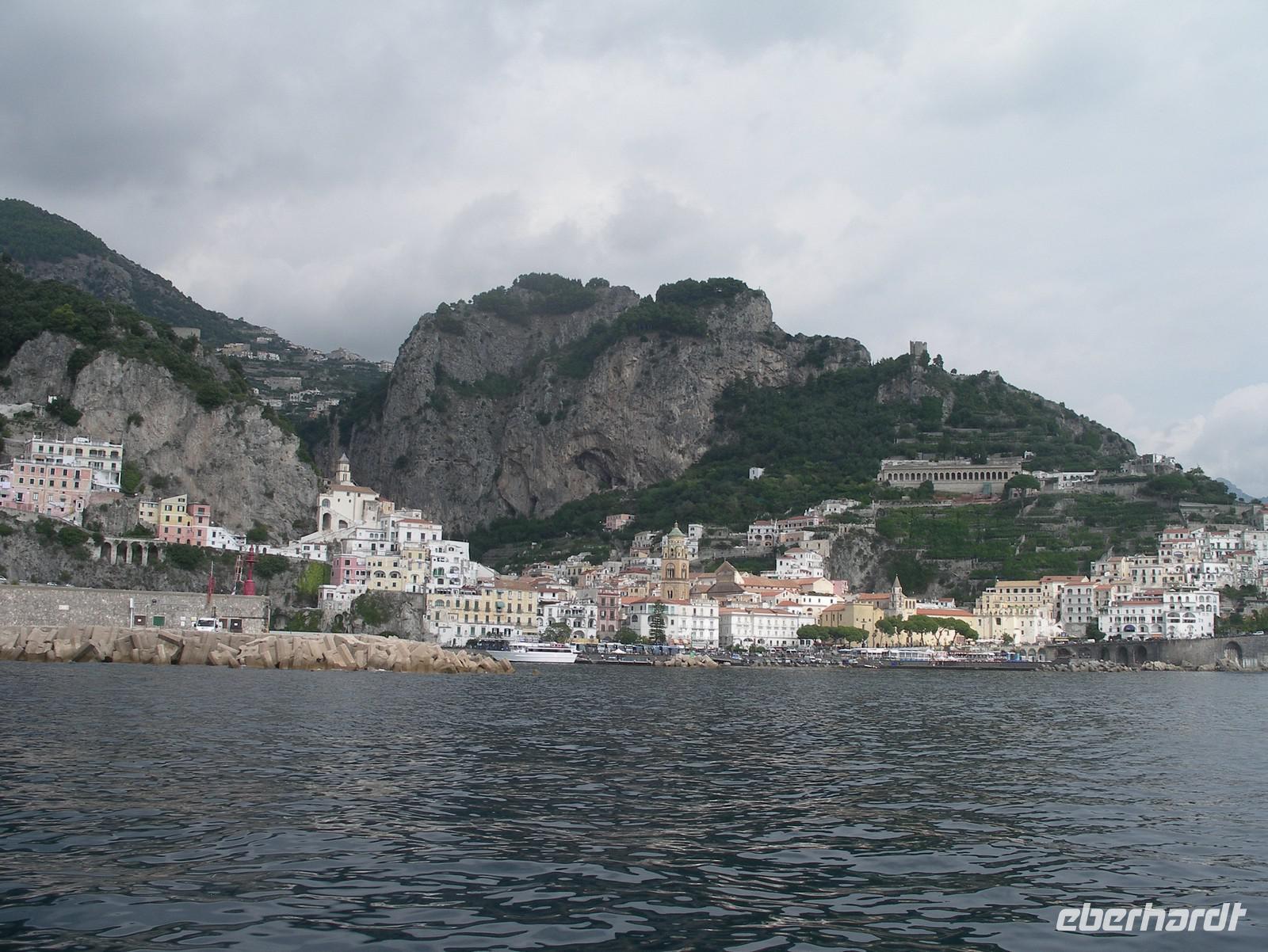 Mit einem italienischen Bus fuhren wir über Sorrent an die Amalfiküste. Zuerst Fotostopp am Golf von Sorrent! Unsere heutige Reiseleitung Victoria erwartete uns in Meta. Wir erreichten die Traumküste und auf einer engen Straße fuhren wir zwischen Meer und Berg. Nach zwei weiteren Fotostopps bummelten wir zum Hafen in Positano, ein idyllischer Ort mit kleinen Gassen. Wir genossen dann eine Bootstour entlang der Küste nach Amalfi. Vom Meer aus konnten wir die Steilküste erst richtig bewundern, Felsenriffe, Höhlen, den Fjord, die Vegetation, aber auch architektonische Kostbarkeiten. Victoria zeigte uns die Villen und berühmten Hotels, wo die Reichen und Schönen ihre Urlaube verbringen. Nach einem kleinen Rundgang in Amalfi, einer Kleinigkeit zum Essen und einigen Einkäufen ging es weiter auf der Amalfitana bis Salerno und über die Autobahn zurück ins Hotel. Eigentlich wollten wir noch nach Ravello, aber ein Erdrutsch in der vergangenen Woche hatte die Straße unpassierbar gemacht.