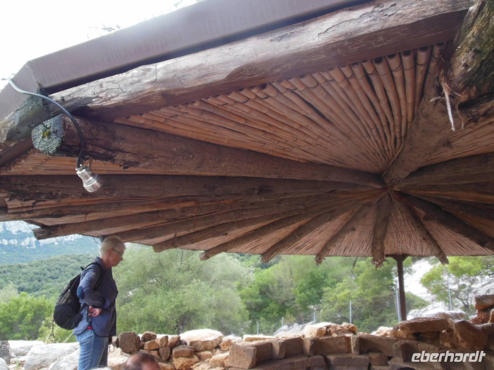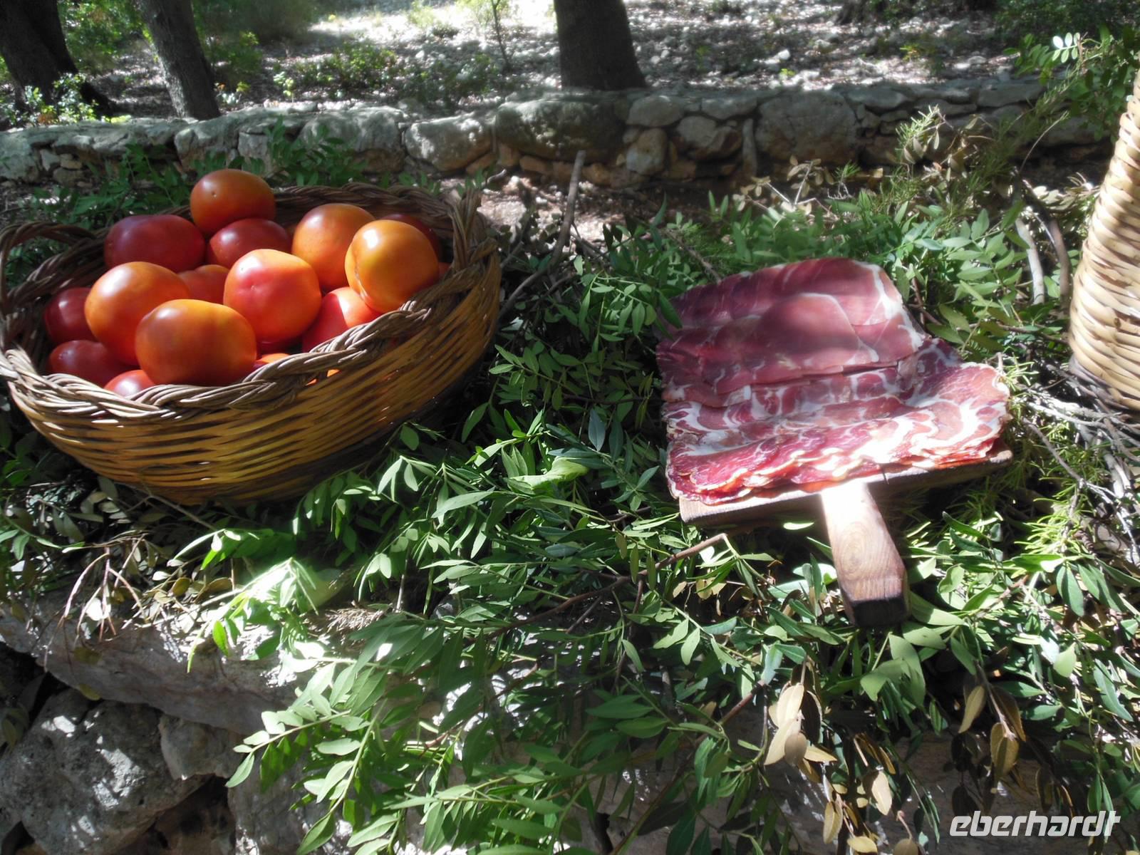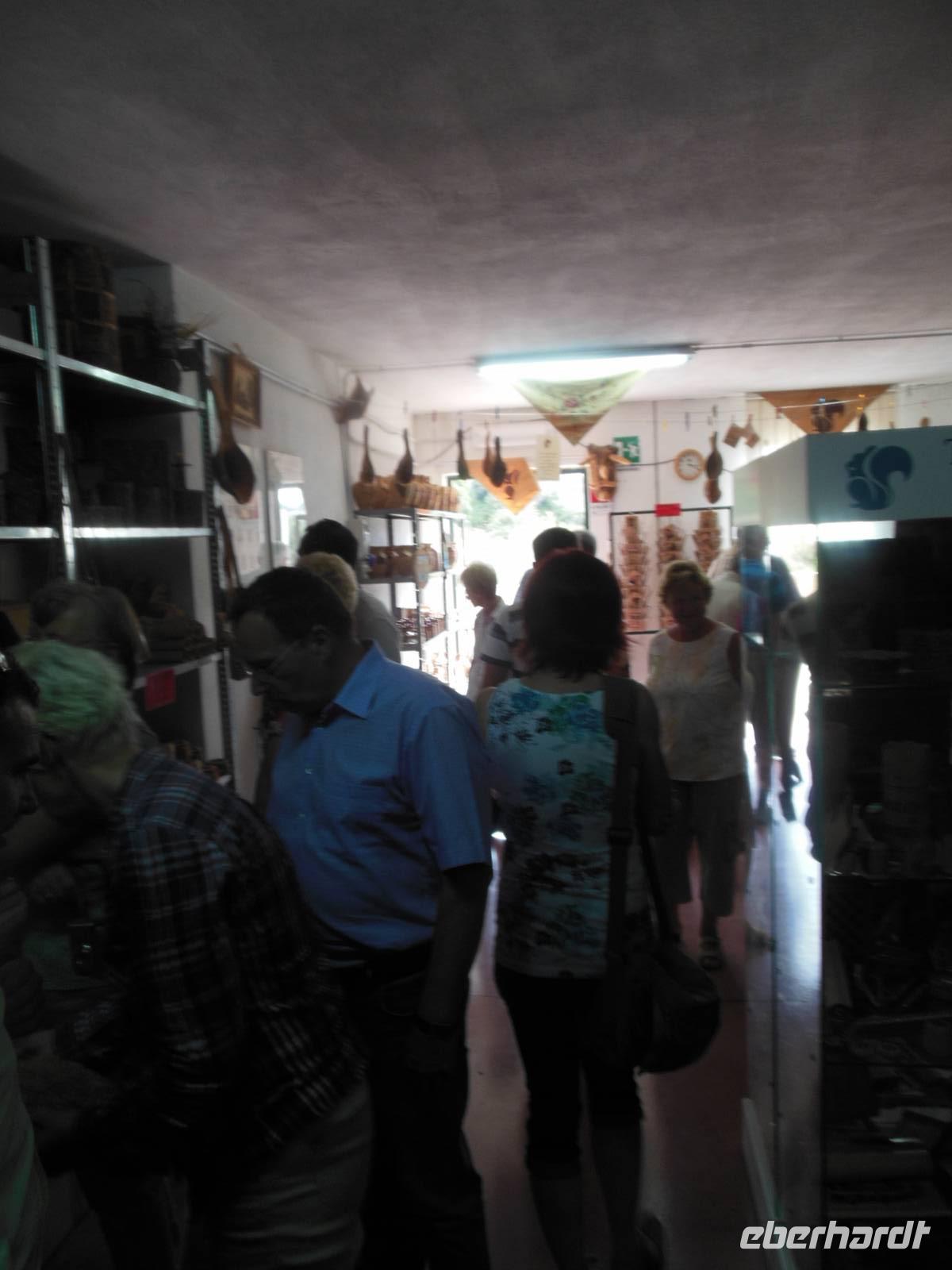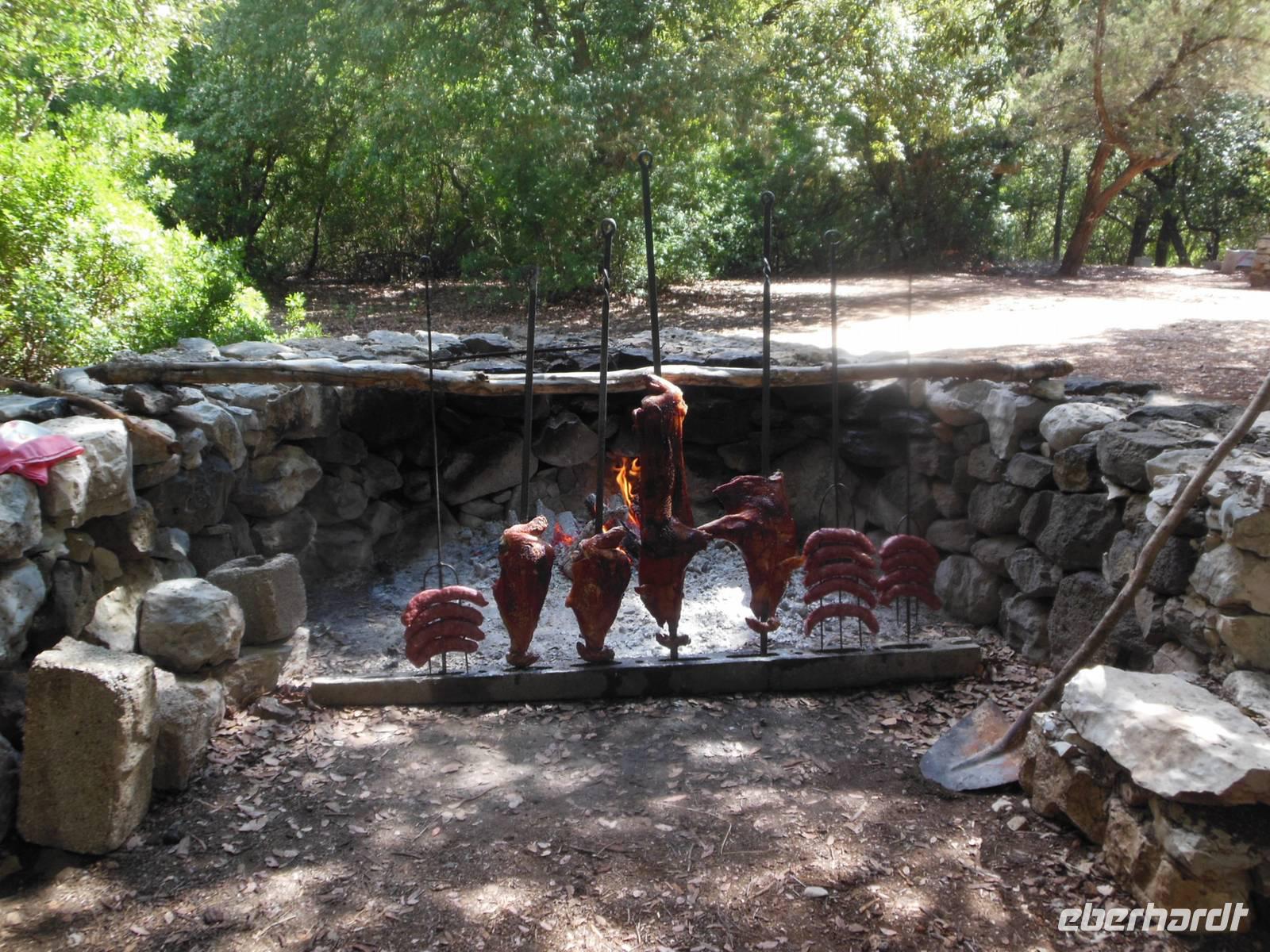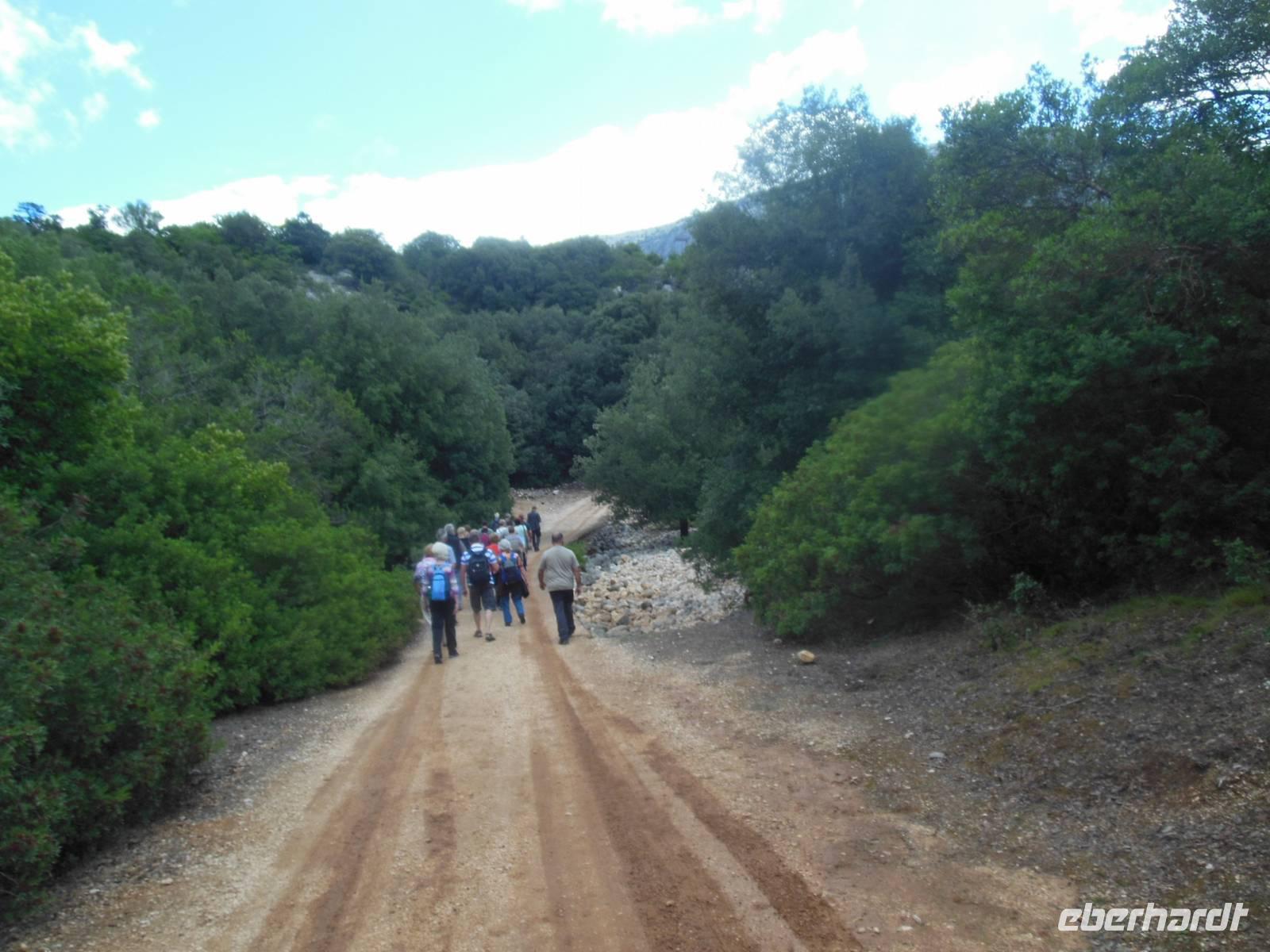 Eine andere Region erwartete uns heute. Wir fuhren in die Barbagia, dem Herzen der Insel. Am Parkplatz der Quellen Su Gologone bei Oliena stiegen wir um in Jeeps mit Fahrern und ließen uns durch das Landesinnere-dem Lanaittu Tal mit Besichtigung des Nuraghendorf von Sos Carros und der Grotte von "Sa Oche e su Bentu" (die Stimme und der Wind) chauffieren und führen. Rolf brachte uns das Nuraghendorf „Sos Carros" näher und wie diese Nuragher das Wasser nutzten und verehrten. Auch in die tolle Grotte „Sa Oche e su Bentu" führte er uns und erläuterte dieses Grotten-und Höhlensystem. Danach liefen wir zu einem wunderbaren Picknickplatz und aßen ein leckeres Mittagessen bei einem heimischen Hirten mit reichlich Spanferkel, selbst hergestellten Wurstwaren und Carasau Brot, frischen Tomaten und allem was das Herz begehrt. Auch Espresso und Mirto und Filu e Ferru gab es in rauhen Mengen. Wir tanzten und sangen heute sogar mitten im Wald. Es war einfach nur herrlich. Ein ganz besonders toller Tag! Leider mussten wir dann am Nachmittag wieder zurück. Die Jeeps brachten uns wieder zurück zum Parkplatz der Quellen von Su Gologone und hier sahen wir uns die Quelle nun direkt an. Danach ging es zurück zum Hotel, wo wir trotz des Schlemmens heute noch ein 3-Gang-Menü genossen.