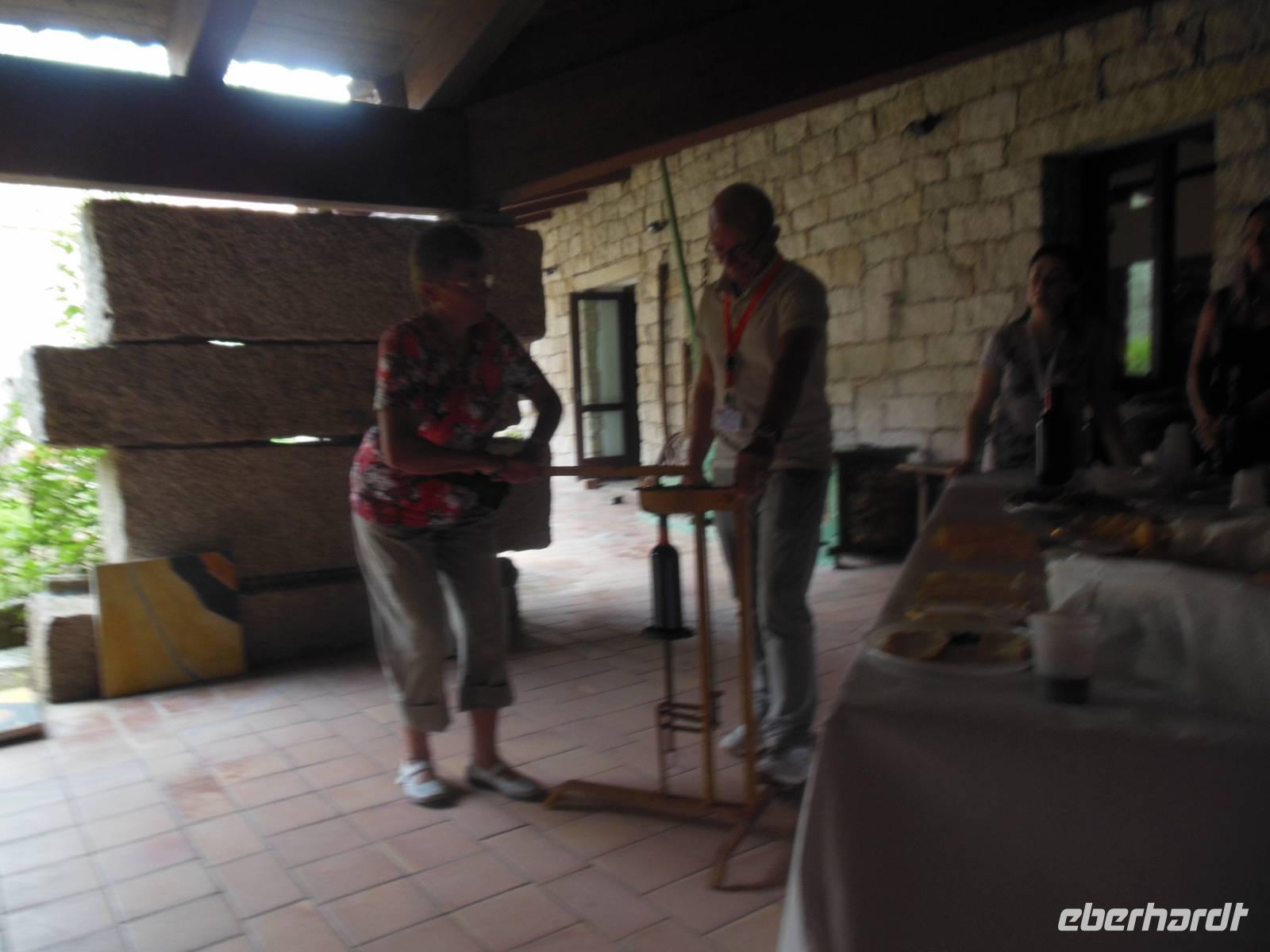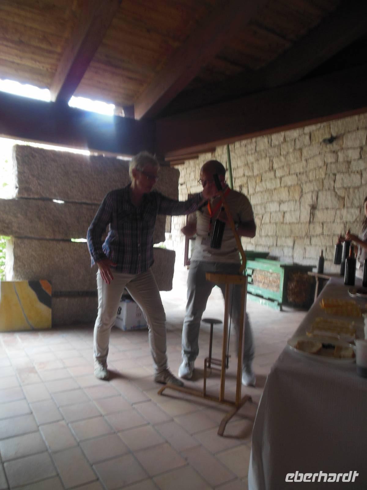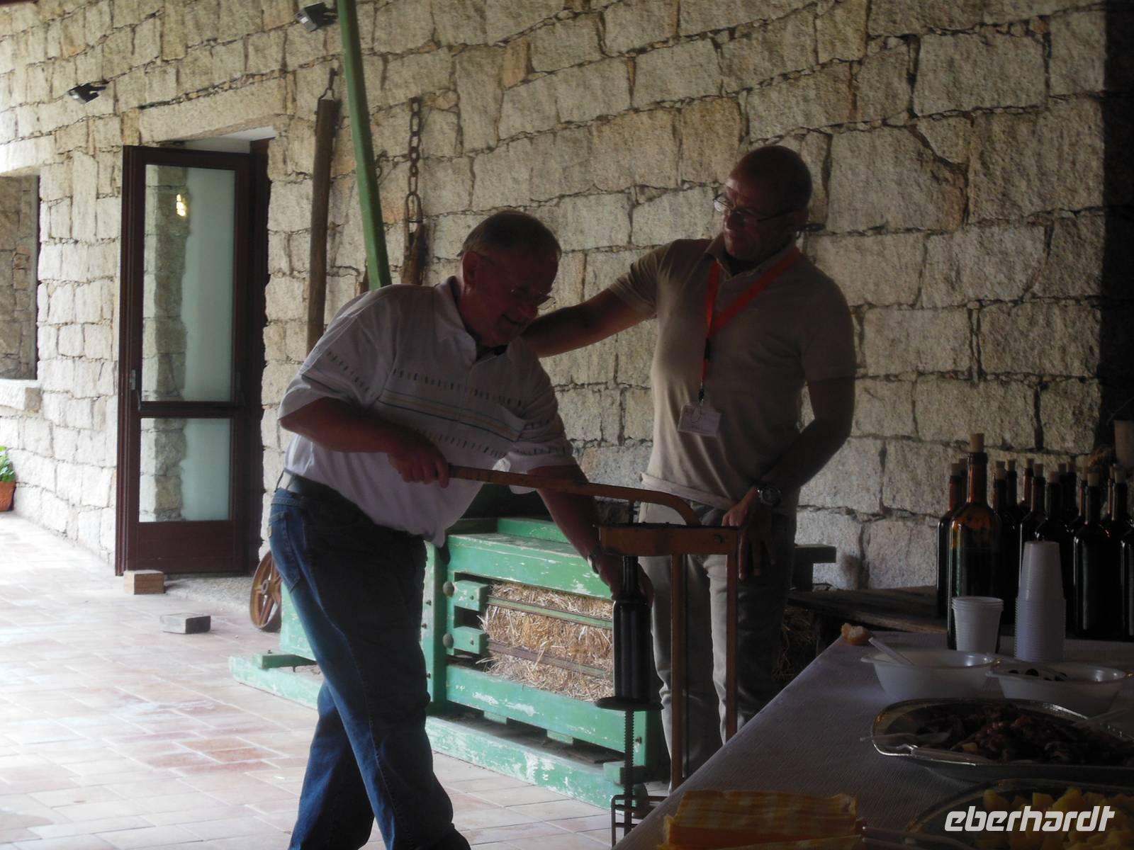 Nachdem wir die Koffer geladen hatten ging es via Sassari nach Castelsardo. Wir fuhren mit dem öffentlichen Shuttle hoch zum Kastell und spazierten oben mit Blick auf die Insel Asinara und auf Korsika herum und besuchten die Santa Maria Kirche, die wegen ihrer „Lunissanti" Prozession bekannt ist. Auf dem weiteren Weg fuhren wir danach beim bekannten Elefantenfelsen vorbei und stoppten natürlich auch hier für Fotos. Danach ging es durch das „Mondtal" via Aggius. Dort erklärte uns Luigi viel über das Dorf von Aggius und im Volkskundemuseum erhielten wir Einblicke in sardische Traditionen und das sardische Handwerk. Im Anschluss an die Führung durften wir einen Rotwein sowie einen typischen sardischen Imbiss geniessen. Und jeder durfte eine Weinflasche selbst verkorken. Das war vielleicht ein Spaß! Danach fuhren wir mit unserem Bus weiter durch die schönen Korkeichenwälder der Gallura nach Tempio-Pausania. Nach einem kurzen Rundgang und Aufenthalt in der Granitstadt fuhren wir über Calanganius, wo die Korkernte gelagert und verarbeitet wird und besuchten eine Korkfabrik. Die Besichtigung war sehr interessant und man konnte sehen was man heuzutage alles so aus Kork produzieren kann. Danach führte uns der Weg zu unserem jetzigen Hotel Airone nach Arzachena/Cannigione. Nachdem wir eingecheckt hatten, begrüßte man uns auch hier mit einem Cocktail und nach einem gemeinsamen 3 Gang Abendessen fielen alle müde ins Bett.