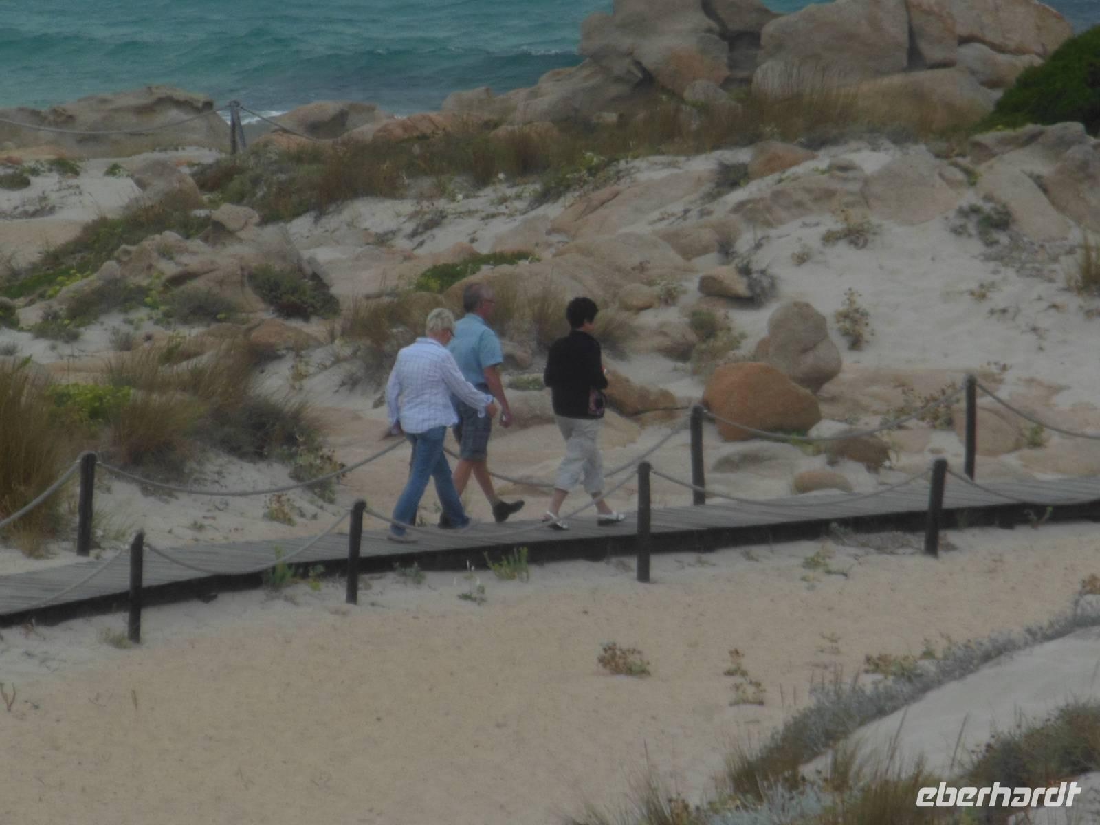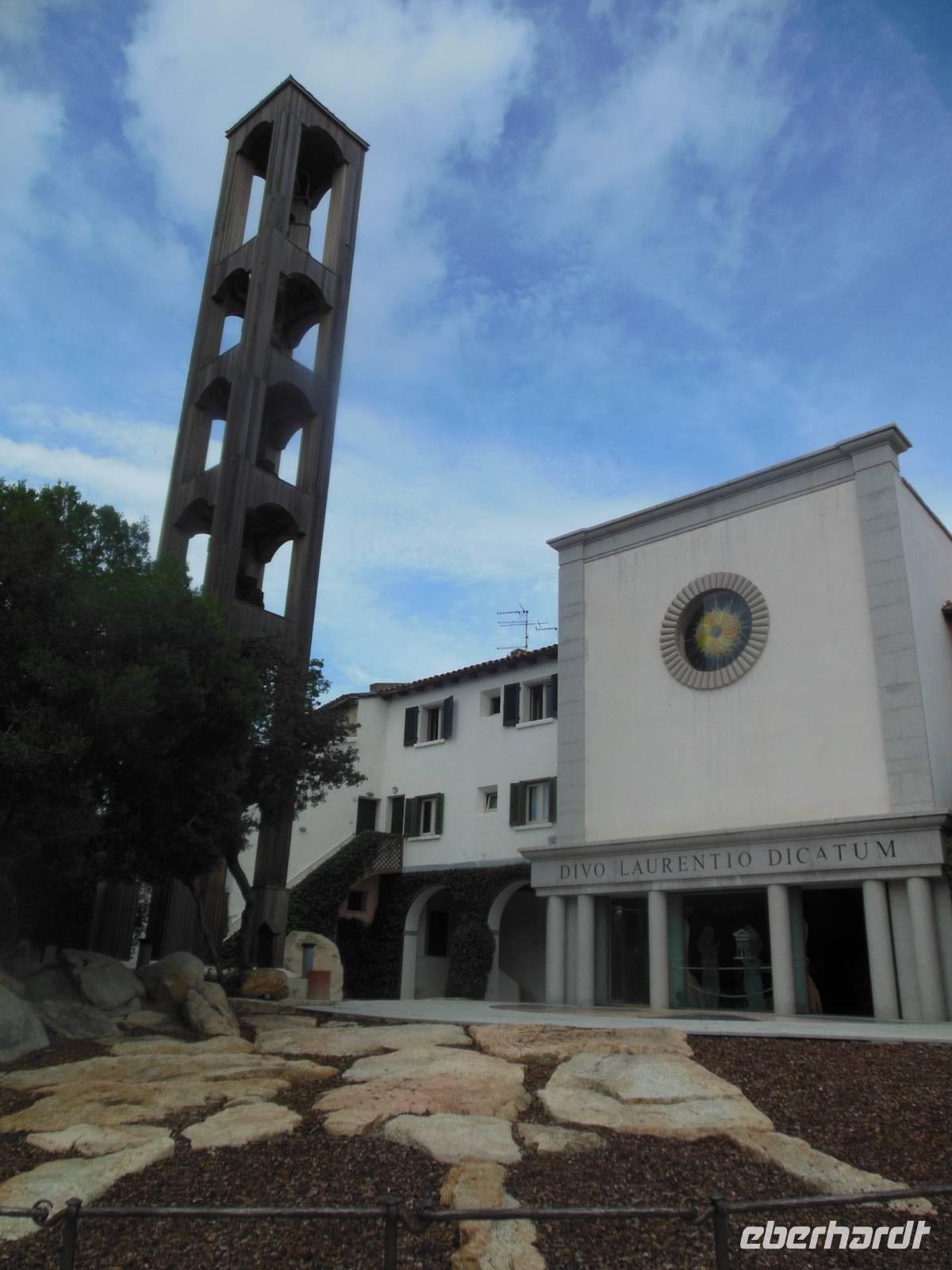 natürlich zahlreiche Stars und Sternchen an, die sich hier niederlassen und ihre Sommerdomizile besitzen. Auch wir sahen ein paar Häuser von bekannten Persönlichkeiten. Zuerst stoppten wir am Golfo di Marinella, wo wir von Weitem die Villa „Certosa" von Silvio Berlusconi sehen konnten. Danach sahen wir uns den künstlich erschaffenen Ort „Porto Rotondo", mit seiner San Lorenzo Kirche, an, die unter anderem mit schönsten filigranen Holzarbeiten vom Schnitzerkünstler Mario Ceroli ausgestattet ist. Das Örtchen wirkt ästhetisch sehr schön und die Architektur der Gegend ist hier „im runden Hafen" ebenso verwirklicht wie in Porto Cervo, dem Hauptort der Costa Smeralda. Hier führte uns nun der Weg hin. Der „Hirsch Hafen" erhielt seinen Namen, weil der Hafen die Form eines Hirschgeweihs hat. Hier fing alles an und hier sitzen auch die Hotels des Consortiums. Bei einem Rundgang sahen wir berühmte Villen und einen Teil des Hafens an. Die berühmte Bucht mit dem gleichnamigen Hotel Cala di Volpe sahen wir uns danach an und machten eine schöne und lustige Strandwanderung mit Bademöglichkeit und ließen so den Tag ausklingen und fuhren zurück zum Hotel.