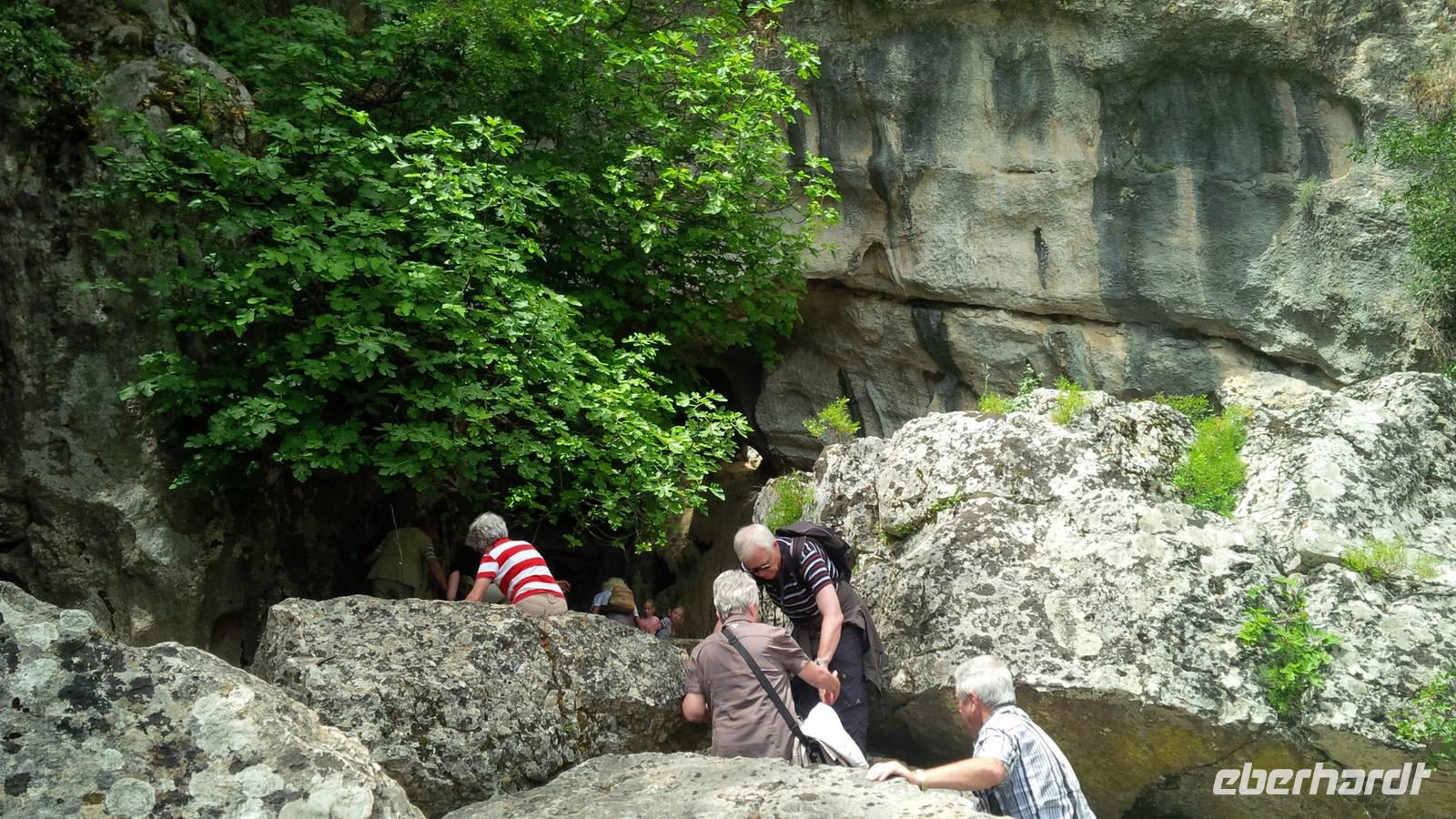 Wir fuhren morgens los in Richtung Oliena, vorbei an San Theodoro, Posada und dem Golf von Orosei. Am Parkplatz der Quellen Su Gologone stiegen wir um in Jeeps mit Fahrern und ließen uns durch das Lanaittu Tal fahren. Salvatore brachte uns das Nuraghendorf „Sos Carros" näher und wie diese Nuragher das Wasser nutzen und verehrten. Auch in die Grotte „Sa Oche e su Bentu" führte er uns , bei der er uns dieses ausgehöhlte Grotten-und Höhlensystem erklärte. Essen wie Leber, Lamm, Spanferkel, Speck, Ricotta etc., das mit Espresso und einem Aquavit endete. Am Nachmittag brachten uns die Jeeps wieder zum Parkplatz zurück. Wir hatten Glück, gerade als wir mit Essen fertig waren fing es zu schütten an. Pietro fuhr uns wieder zum Hotel an die costa smeralda, wo wieder die Sonne schien und wir ließen den letzten Abend auf der Trauminsel im Mittelmeer ausklingen.