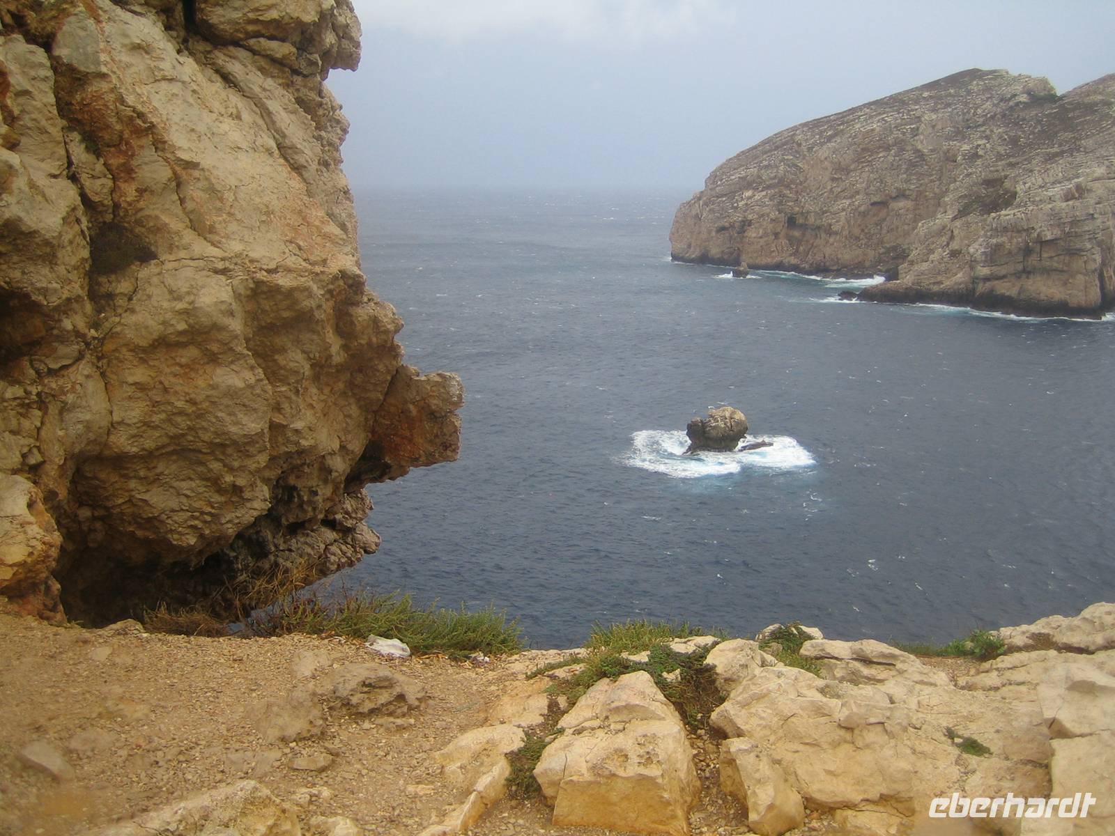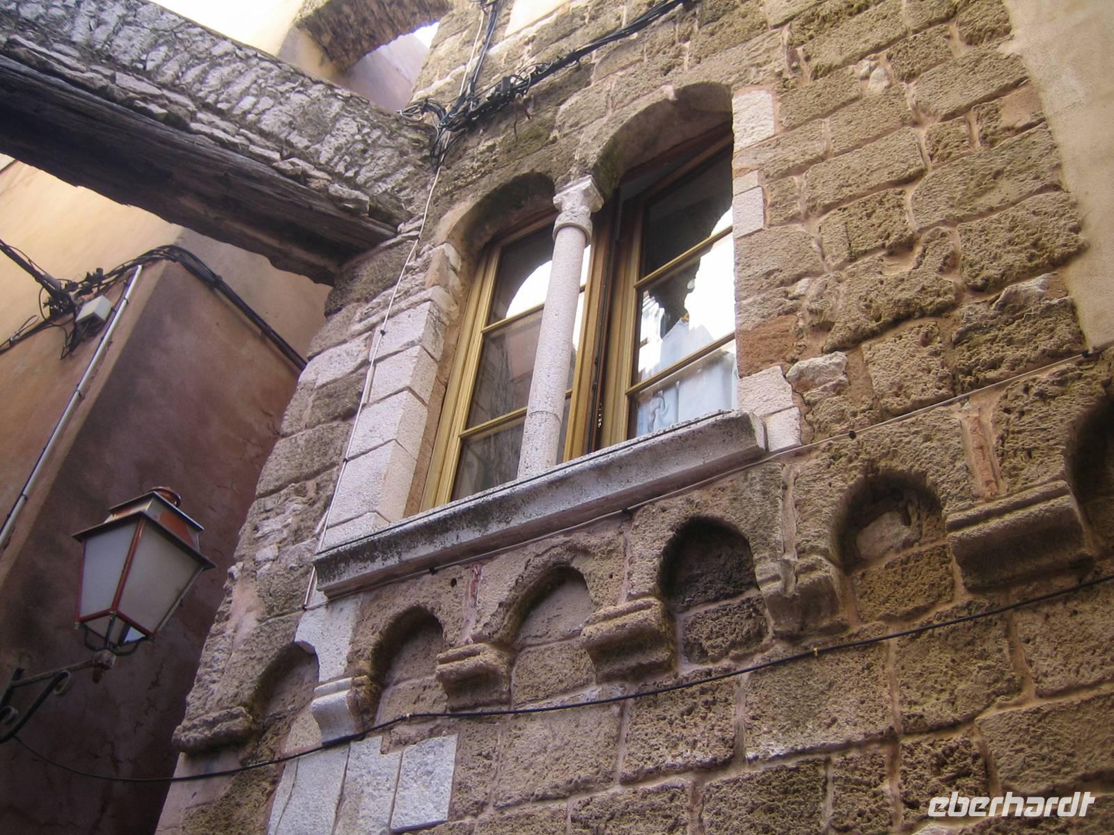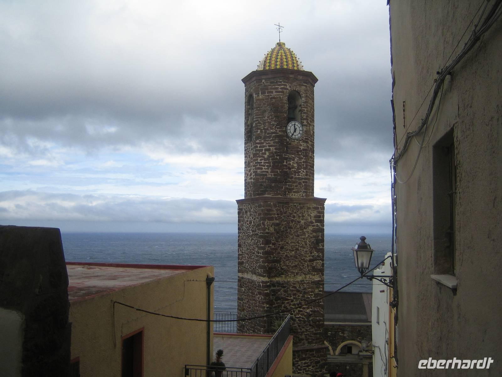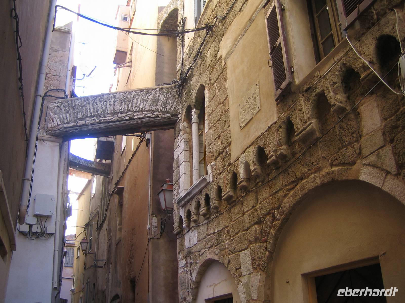 Es hatte die ganze Nacht gestürmt, der Morgen empfängt uns mit strömendem Regen und starkem Wind. Für die großen Städte des Nordens ist Flutalarm ausgerufen und viele Straßennetze sind gesperrt. Kleine Bäche verwandeln sich in reißende Ungeheuer und wir fragen uns, ob wir unseren Ausflug heute überhaupt durchführen können. Rebecca kennt den sardischen Wetterbericht wie ihre Jackentasche und so findet sie den einzigen Ort in ganz Sardinien, in dem es heute nicht regnet: Castelsardo. Wir zaudern nicht und fahren gleich nach dem Frühstück los. Mit uns reist heute die Wandergruppe, denn für sie ist der Sturm zu gefährlich zum Wandern. Nach einer Stunde Fahrt werden wir von einem Regenbogen begleitet, der sich über Artischocken- und Melonenfelder spannt. Die Haupteinnahmequelle im Norden Sardiniens ist jedoch nicht die Landwirtschaft, sondern die Hummerfischerei, der Mittelmeerhummer ist sehr begehrt. Kurz vor Castelsardo halten wir an einem bizarren Elefantenfelsen und da es schon hier nicht mehr regnet, können wir ihn im Lichte besehen und fotografieren. Wieder halten wir am Eingang zum Ort, gehen zu Fuß in die Stadt. Castelsardo ist ein Ort rund um eine mittelalterliche Burg, die in den Lavastein hinein gebaut wurde. Die Burg wurde bis 1939 ununterbrochen genutzt und dabei auch immer instand gehalten. Die Stadt hat heute siebentausend Einwohner. Bei einer Einwohnerzahl von 1,6 Millionen Menschen in ganz Sardinien ist das ziemlich viel. Von der Unterstadt wandern wir hinauf zur oberen Stadt und durchstreifen die historischen Straßen. Rebecca erklärt uns so viel zur Geschichte und zum Alltag von Castelsardo, dass wir immer neugieriger werden. Zum Mittag verweilen wir im „Cafe´de Paris" und fahren dann über eine wilde, felsige Bucht des Capo Caccia weiter nach Alghero. Auch diese Stadt möchten wir sehen und lassen uns von dem windigen Regensturm nicht davon abhalten. Doch ob uns nach unserer Rückkehr jemand glauben wird, dass wir auf einer Mittelmeerinsel waren? Die Fotos sehen ganz anders aus.