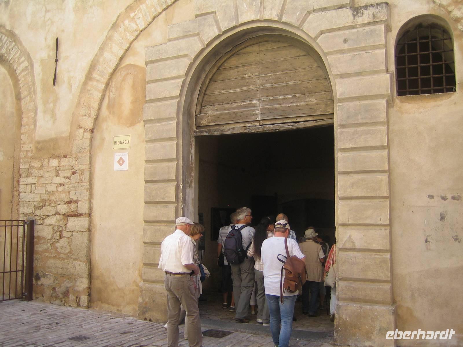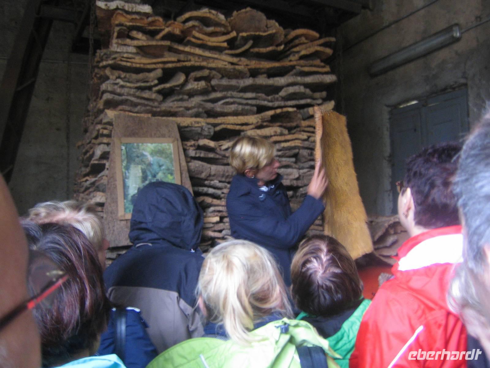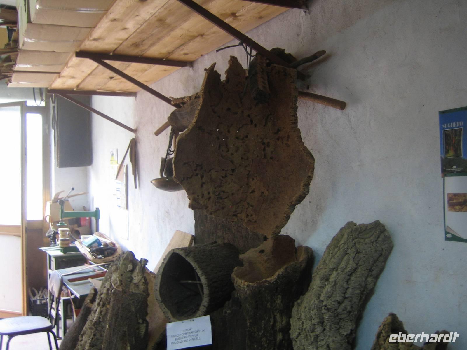 Zusammen mit der Wandergruppe fahren wir am Morgen los, in eine von Korkeichen geprägte Region der Gallura. Auch ihre Monolithen sind weithin bekannt, sie gehören zu den größten auf unserer Erde. Die Wandergruppe wird heute einen breiten, sandigen Rundweg in eintausend Metern Höhe begehen, am Monte Limbara, der mit seinen über eintausenddreihundert Metern Höhe der höchste Hügel der Gallura ist. Wir geben ihnen und ihrer Wanderreiseleiterin Veronica schöne Grüße mit auf den Weg und verlassen den Bus in Tempio, der Hauptstadt der Gallura. Sie wurde im 18. Jahrhundert aus Granit erbaut. Bei einer Stadtführung mit Rebecca sehen wir uns diesen besonderen Baustil an. Dann reisen wir weiter, zur Korkmanufaktur „Arte Sughero di Sandra Cossu" ganz in der Nähe von Tempio. Der Gründer, der der Großvater der Kunsthandwerkerin Sandra Cossu ist, zeigt uns, wie die Korkmaschine funktioniert und wie die Korksorten sich voneinander unterscheiden. Die ganze Manufaktur ist in eine so inspirierende Atmosphäre getaucht, dass alle wie gebannt zuschauen und -hören. In ihrem Atelier zeigt uns seine Enkelin Sandra, wie sie Keramik-Krüge mit Kork designed, vor allem mit dem Design, dass ihr Großvater einst entwickelte. Im Verkaufsraum gibt es noch mehr zu entdecken und wir müssen uns förmlich losreißen von den Zeugnissen dieser seltenen Kunst, denn unser Bus hält vor der Tür, um uns zum Mittagessen zum Agriturismo nach Aggius zu bringen. Der zauberhafte Ort und die schmackhaften Speisen passen zu diesem Tag mit seinen so seltenen Einblicken. Als auf dem Rückweg zum Hotel auch noch die Sonne zu scheinen beginnt, wächst unsere Hoffnung, nun endlich auch das typische Mittelmeerklima erleben zu können, auf das wir uns so gefreut hatten.