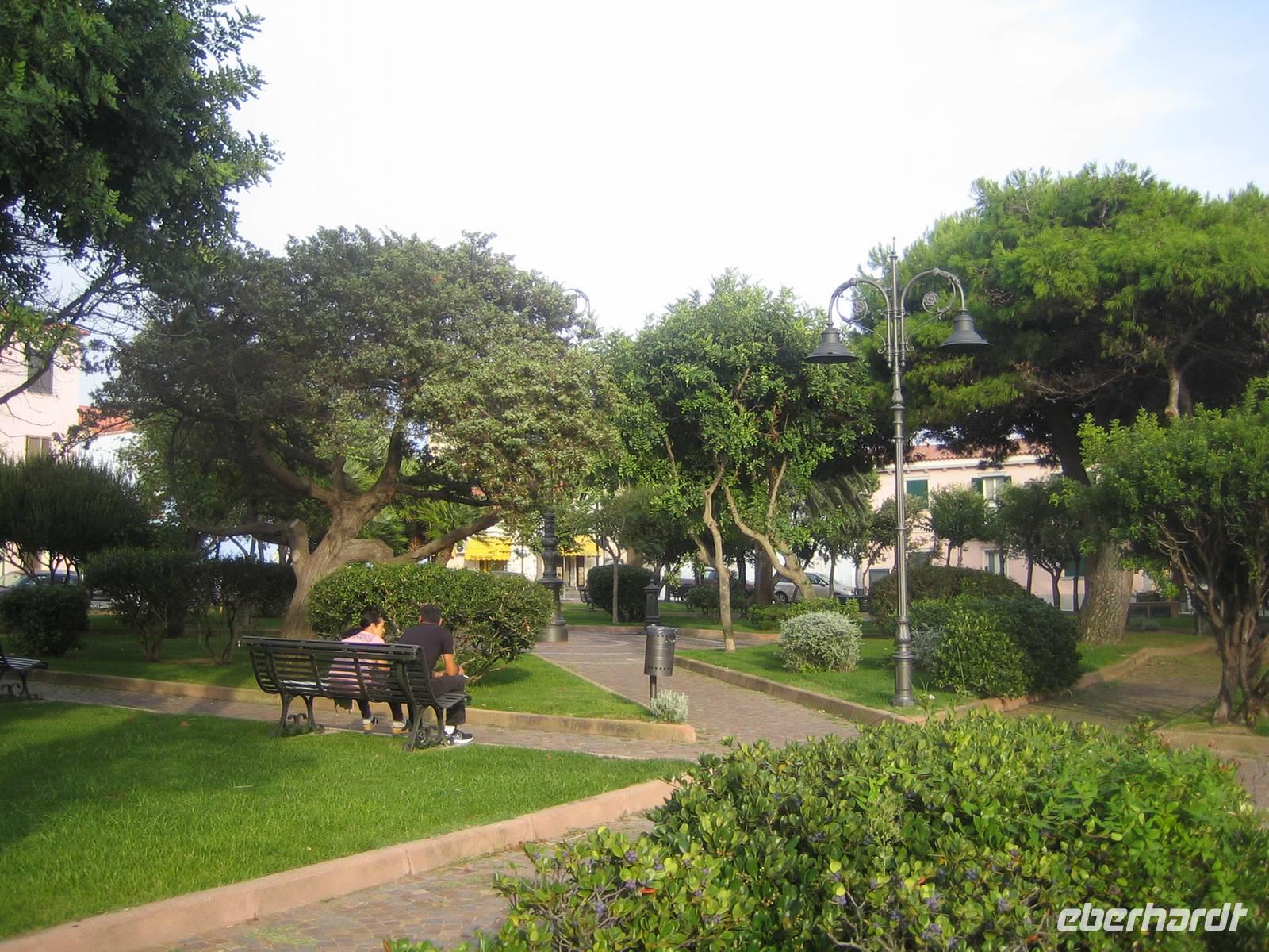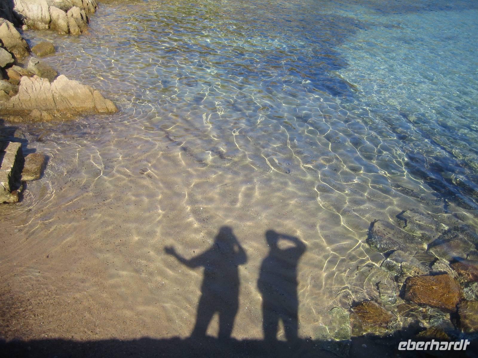 Es hat tatsächlich aufgehört zu regnen, auch in Santa Teresa. Der Himmel ist noch leicht bedeckt, doch der Tag verspricht schön zu werden. Bruno fährt uns so sicher wie im Wind und Sturm der letzten Tage zur Fähre nach Palau. Dort steigen wir auf die Fähre, der Bus verschwindet im Schlund des Schiffes. Dann geht die Fahrt los, hinüber zum Archipel La Maddalena. Das Wasser glänzt blau und schwarz, es ist vom Unwetter noch ganz aufgewühlt. Nach einer Rundfahrt durch die Stadt passieren wir die Brücke hinüber zur Insel Caprerra. Sie ist Garibaldi gewidmet und sein Haus können wir von La Maddalena aus bereits sehen. Seit Mitte der 90er Jahre ist das ganze Archipel zudem ein geschützter Nationalpark. Die anderen fünf Inseln von La Maddalena sind nur per Boot zu erreichen und haben kein Süßwasserreservoir. Nach etlichen Fotostopps an türkisen Buchten fahren wir zur Baia Trinita und verweilen dort ein halbes Stündchen am Sandstrand zwischen urigen Felsen. Gestärkt von der wärmenden, strahlenden Sonne und der salzigen Brise am Meeresrand reisen wir dann weiter zum Ort La Maddalena. Rebecca zeigt uns die Stadt, bis wir die Wege von der Kirche zum Hafen und zum zentralen Platz kennen, bis wir wissen, an welchen Spezialitätengeschäften wir nicht vorbei gehen sollten und wo uns ein guter Mittagsimbiss erwartet. An der Garibaldi-Statue, bei der man sich neben sein plastisches Ebenbild auf eine Bank setzen kann, starten wir zu unseren individuellen Erkundungen der Stadt La Maddalena. Am Nachmittag bringt uns die Fähre wieder zurück nach Santa Teresa. Einige von uns nutzen das gute Wetter, um bis zum Abendessen am Strand zu träumen oder zu baden. Im Speiseraum treffen wie die Wandergruppe wieder, die heute das Capo Testa, die nördlichste Spitze Sardiniens erkundet hat und dabei auch anspruchsvolle Klettersteige über Felsen kennen lernte.