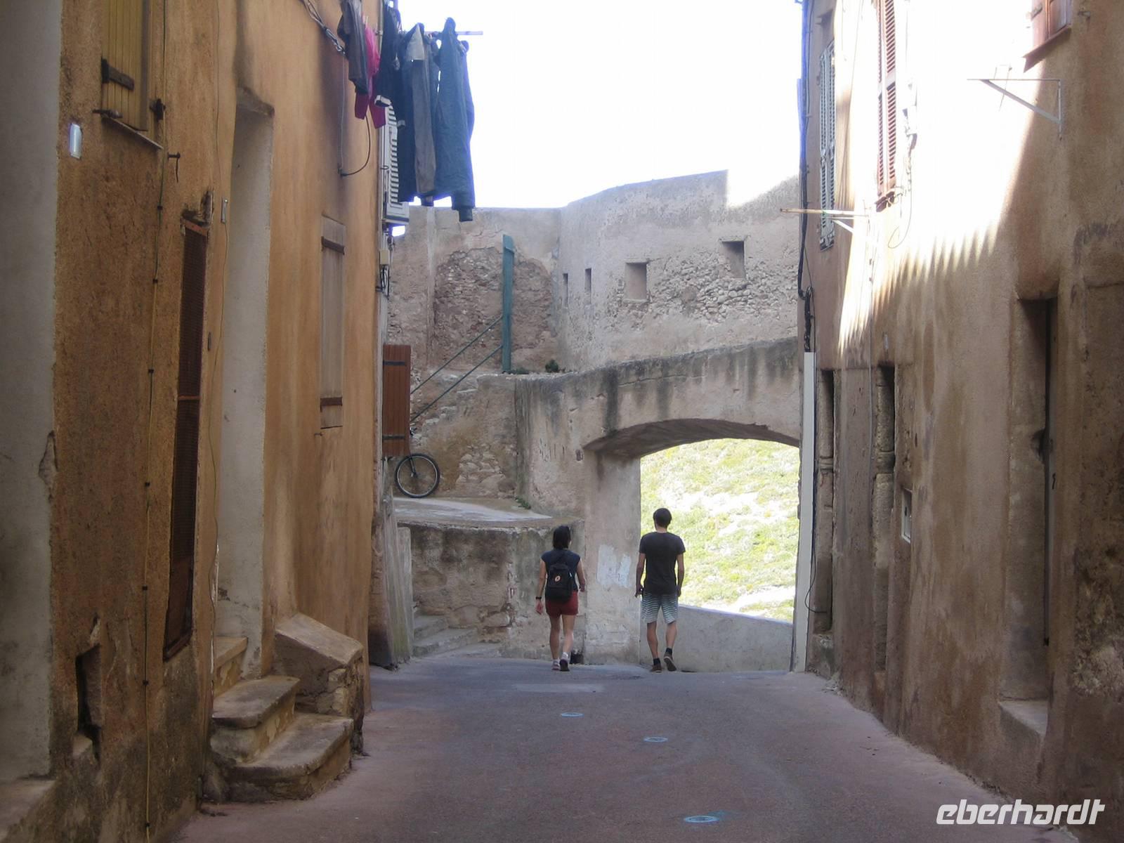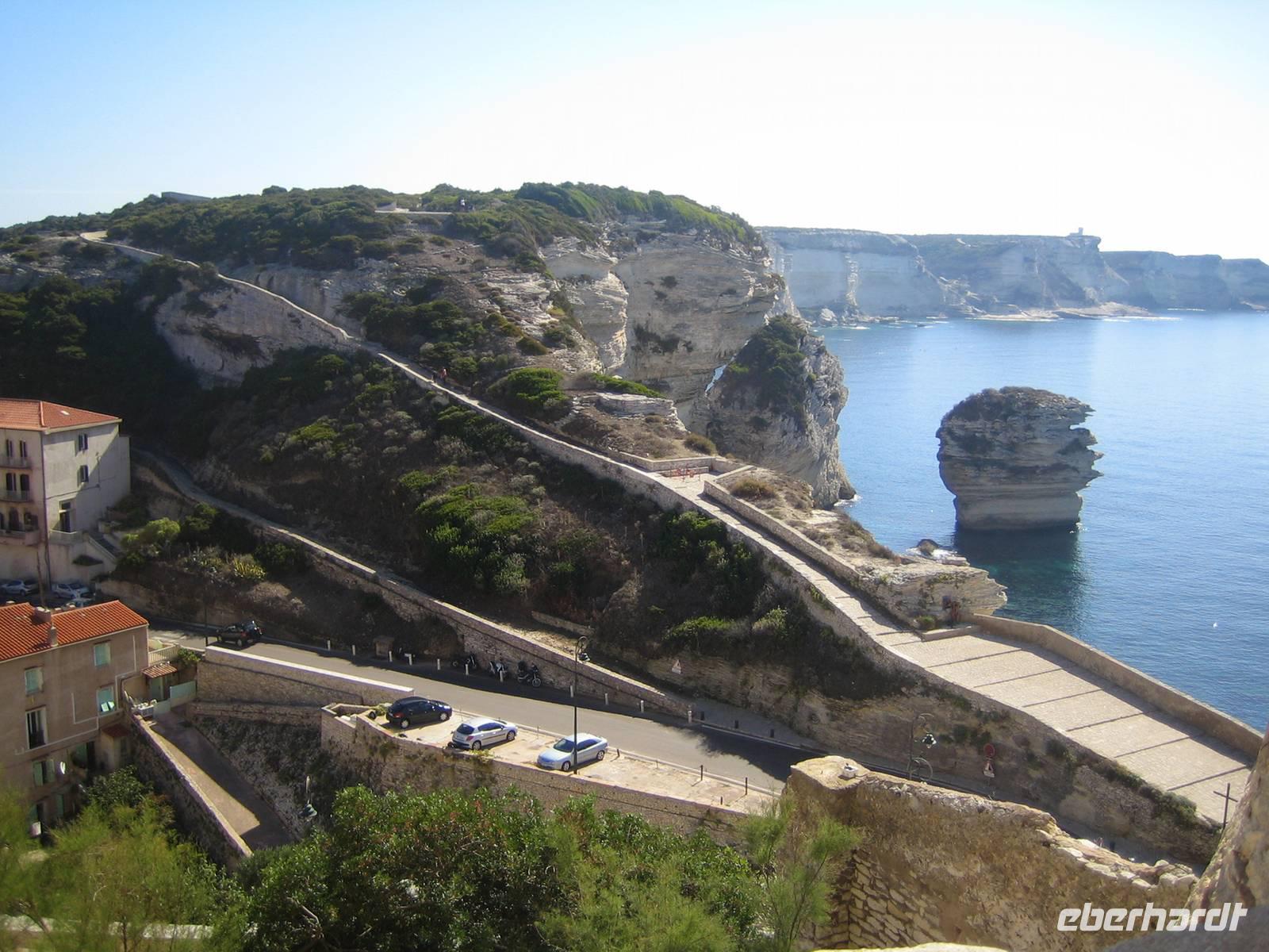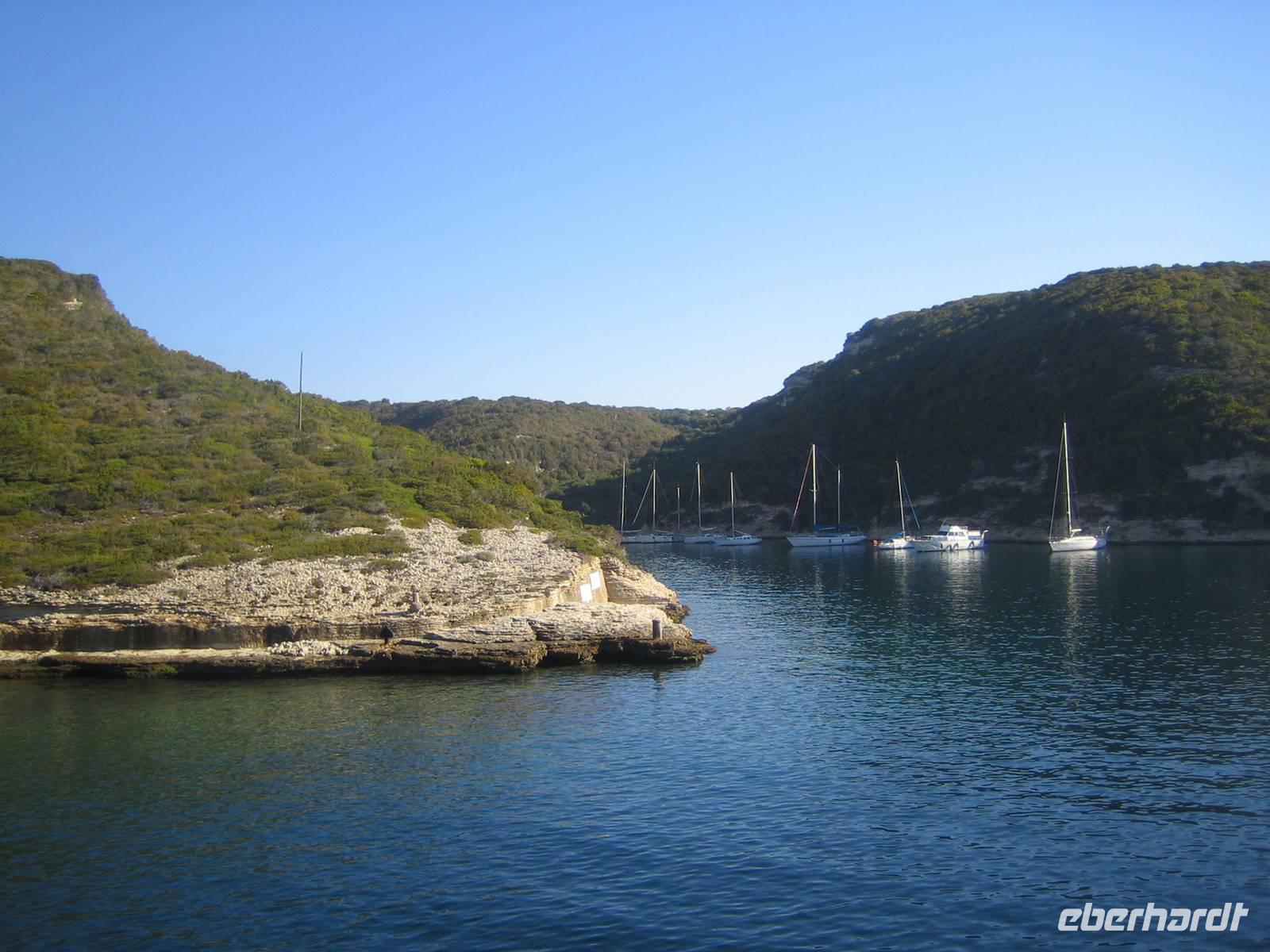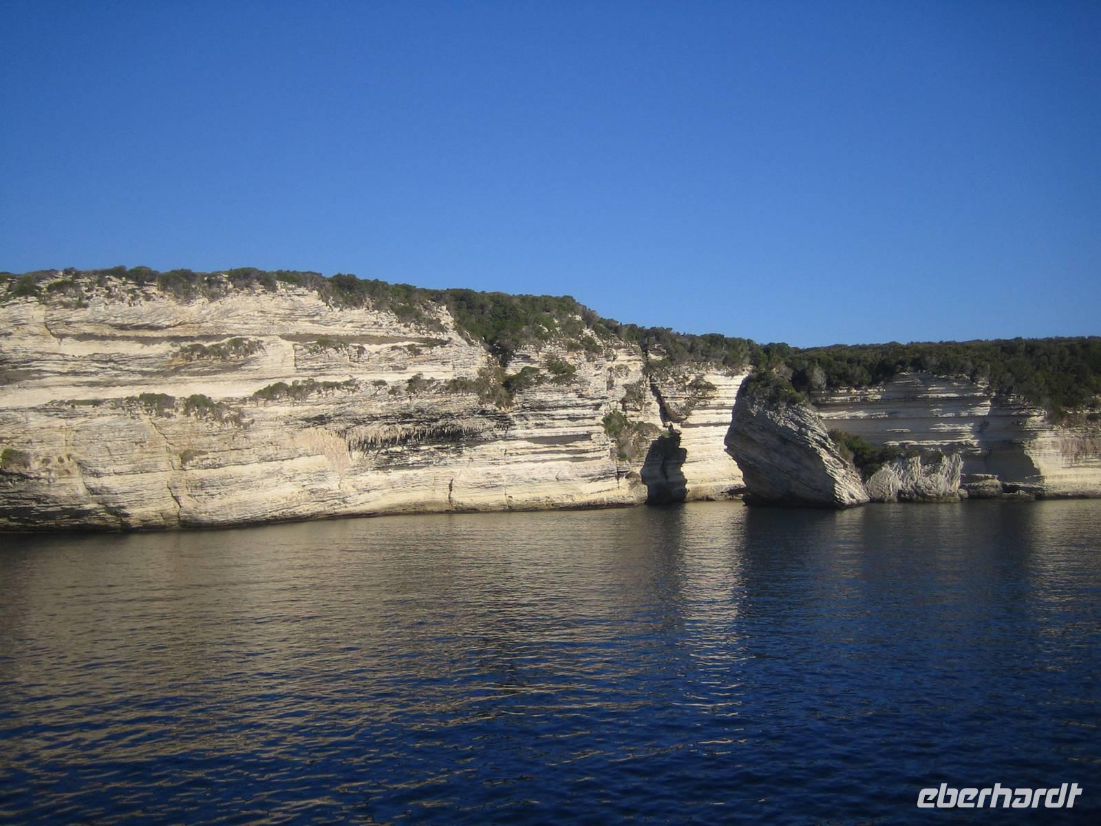 Nur zwölf Seemeilen ist Sardinien von Korsika entfernt. Diese umgerechneten einundzwanzig Kilometer legen wir mit dem Schiff in einer Stunde zurück. Hinter uns der Hafen von Santa Teresa, er wird immer kleiner, bald ist die Küste nur noch eine schmale Linie auf dem silbernen und blauen Meer. Vor uns wächst die helle Steilküste von Bonifacio aus dem Wasser. Unsere Reiseleiterin ist heute Eugenie. Sie hat uns am frühen Morgen vom Hotel abgeholt, zum Hafen von Santa Teresa gebracht. Nun, im Hafen von Bonifacio lädt sie uns ein, mit ihr in der Kleinbahn hinauf in die Stadt Bonifacio zu fahren. Gern folgen wir dieser Empfehlung, denn Bonifacio liegt hoch oben über den steil hinab fallenden Felsen der Kreideküste. Nach einer tollen Stadtführung durch die mittelalterlichen Gassen und Straßen der korsischen Hafenstadt haben wir viel Zeit, uns auf eigenen Wegen umzusehen, die Aussicht aufs Meer zu genießen oder in die französischen Sprachmelodien der kleinen Stadt einzutauchen. Am Nachmittag treffen wir uns im Hafen wieder. Die Wandergruppe war heute ebenfalls in Korsika, wanderte einen einzigartigen Steilküstenweg entlang und steigt nun gemeinsam mit uns wieder auf das Schiff, zurück nach Santa Teresa. Unter Schäfchenwolken landen wir im Hafen unseres Städtchens. Im Hotel sagen wir unseren beiden örtlichen Reiseleiterinnen Rebecca und Eugenie Adieu. Wir werden noch oft an all die interessanten Geschichten denken, die sie uns zu erzählen wussten.