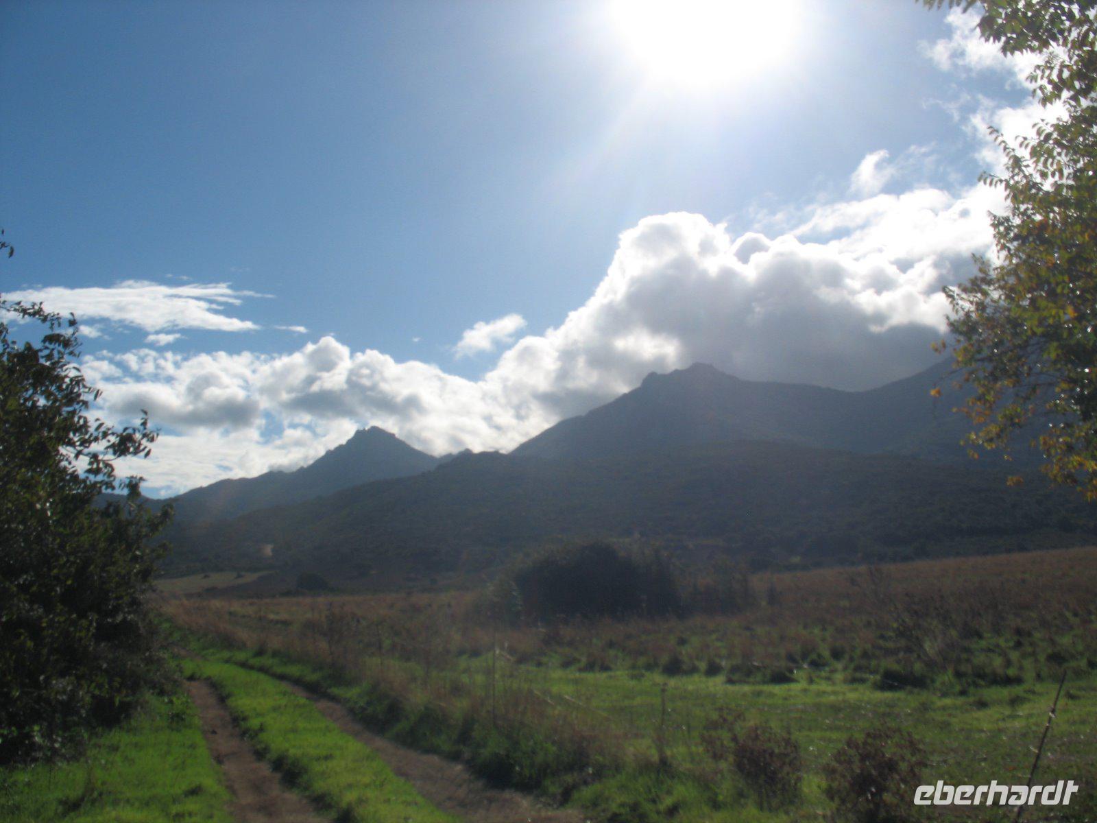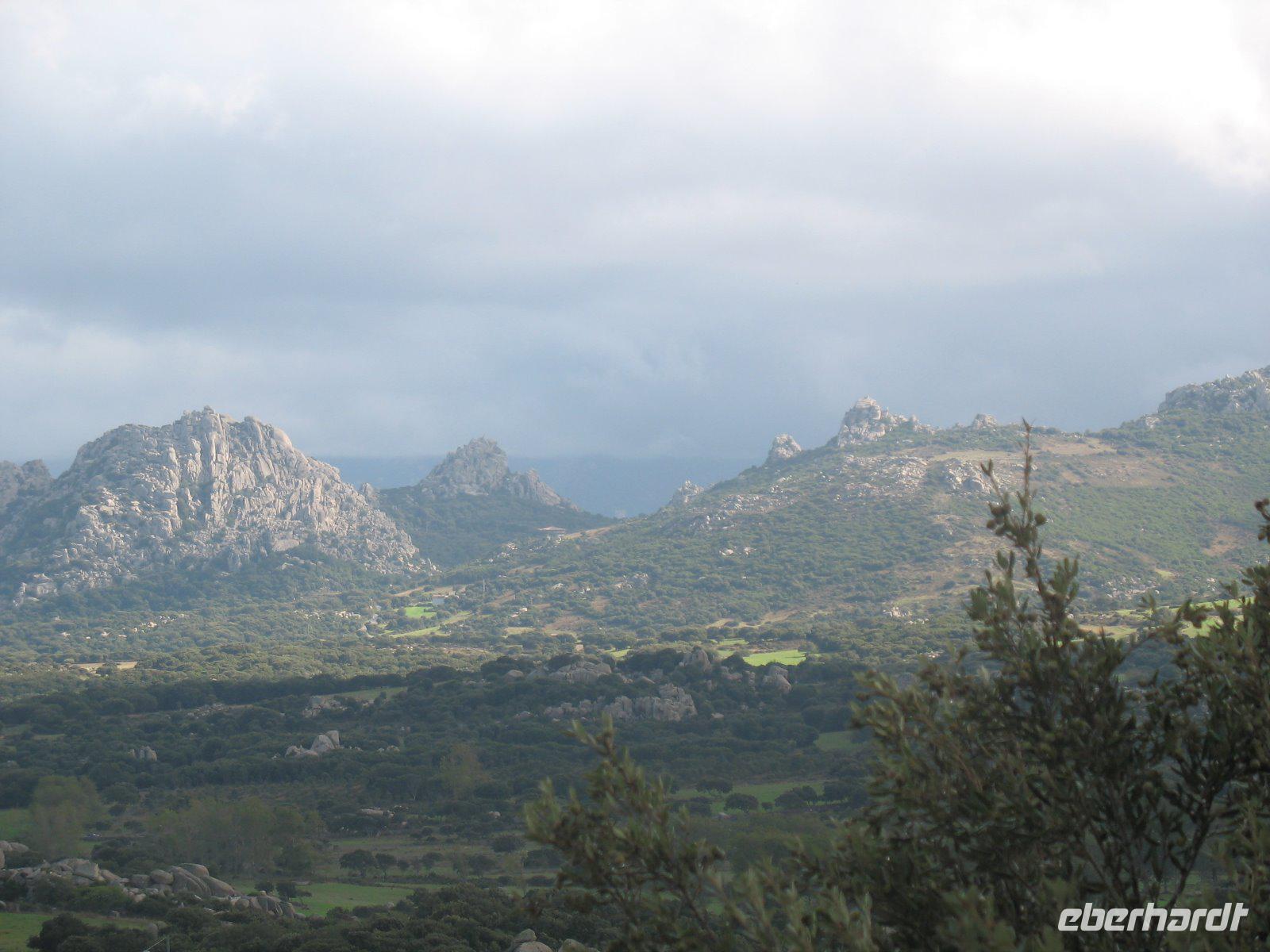 Wir machten uns auf den Weg in das „grüne Herz der Gallura". Tatsächlich waren die Wiesen und Grünstreifen von dem in diesem Jahr früh einsetzenden Herbstregen hellgrün und es blühten einige Sträucher und Blumen. Wir bestaunten wilde Felsformationen auf der Fahrt und sahen auch schon Korkeichen mit abgeschälter Rinde. unterwegs hatten wir eine gute Sicht auf die beiden Granitgipfel des Monte Limbara.