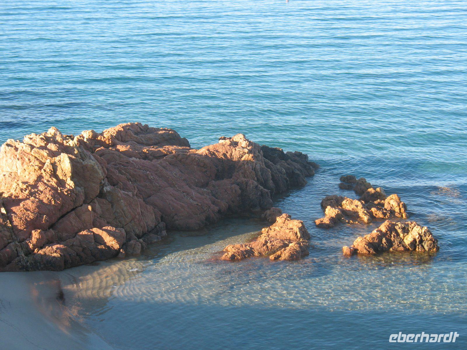 Zunächst hielten wir in Isola Rossa und konnten bei Sonnenschein die Aussicht auf die roten Felsen genießen. Das kristallklare Wasser leuchtete in det Sonne.