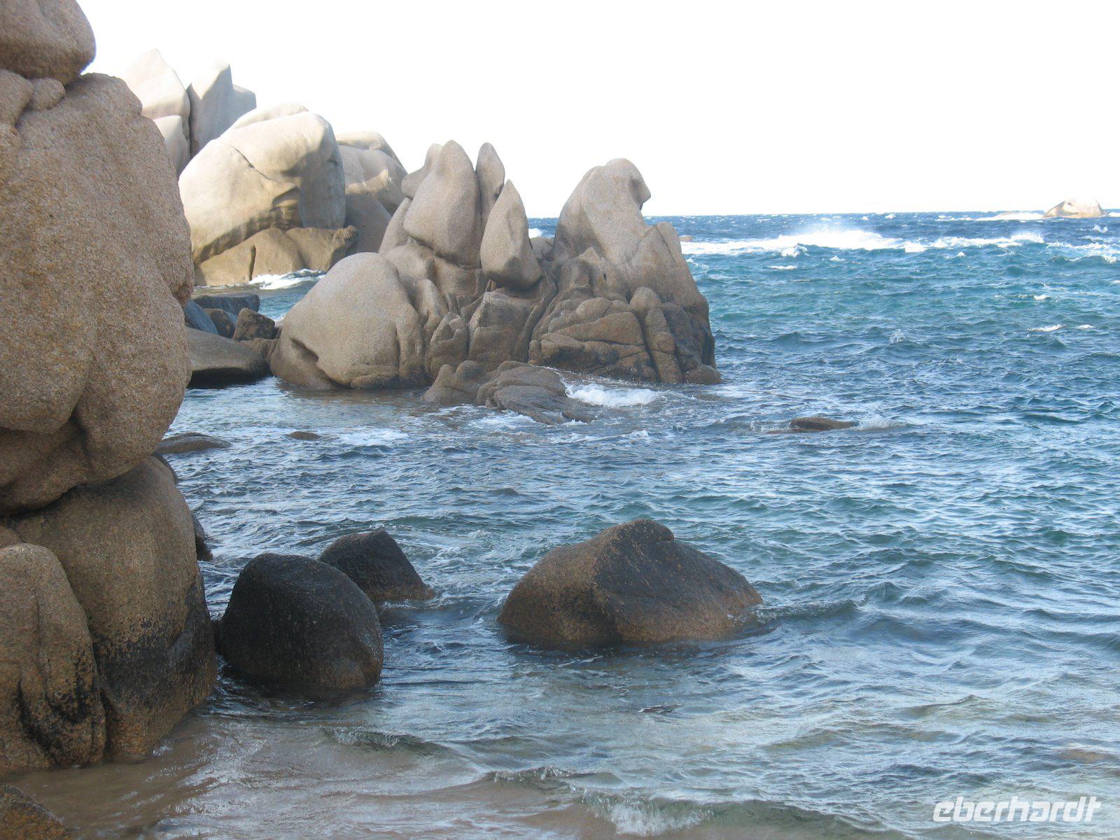 Nach einem angenehmen Flug landeten wir um 13.40 Uhr in Olbia. Hier war es gleich schon viel wärmer als in Berlin. Unser Busfahrer holte uns am Flughafen ab und brachte uns nach Santa Teresa di Gallura zu unserem Hotel. Wir bekamen dabei schon einen ersten Eindruck von der Strauchvegetation und den vielen Granitfelsen auf Sardinien. Am Nachmittag brachen wir zu einem ersten Rundgang in Santa Teresa auf. Es war trocken, aber sehr windig. Wir gingen zum Strand, konnten nach Korsika hinüberschauen und Fotos von dem vom Wind aufgepeitschten Meer machen. Anschließend besuchten wir eine Eisdiele, wo es sogar Eis aus dem berühmten Mirto-Likör gab.