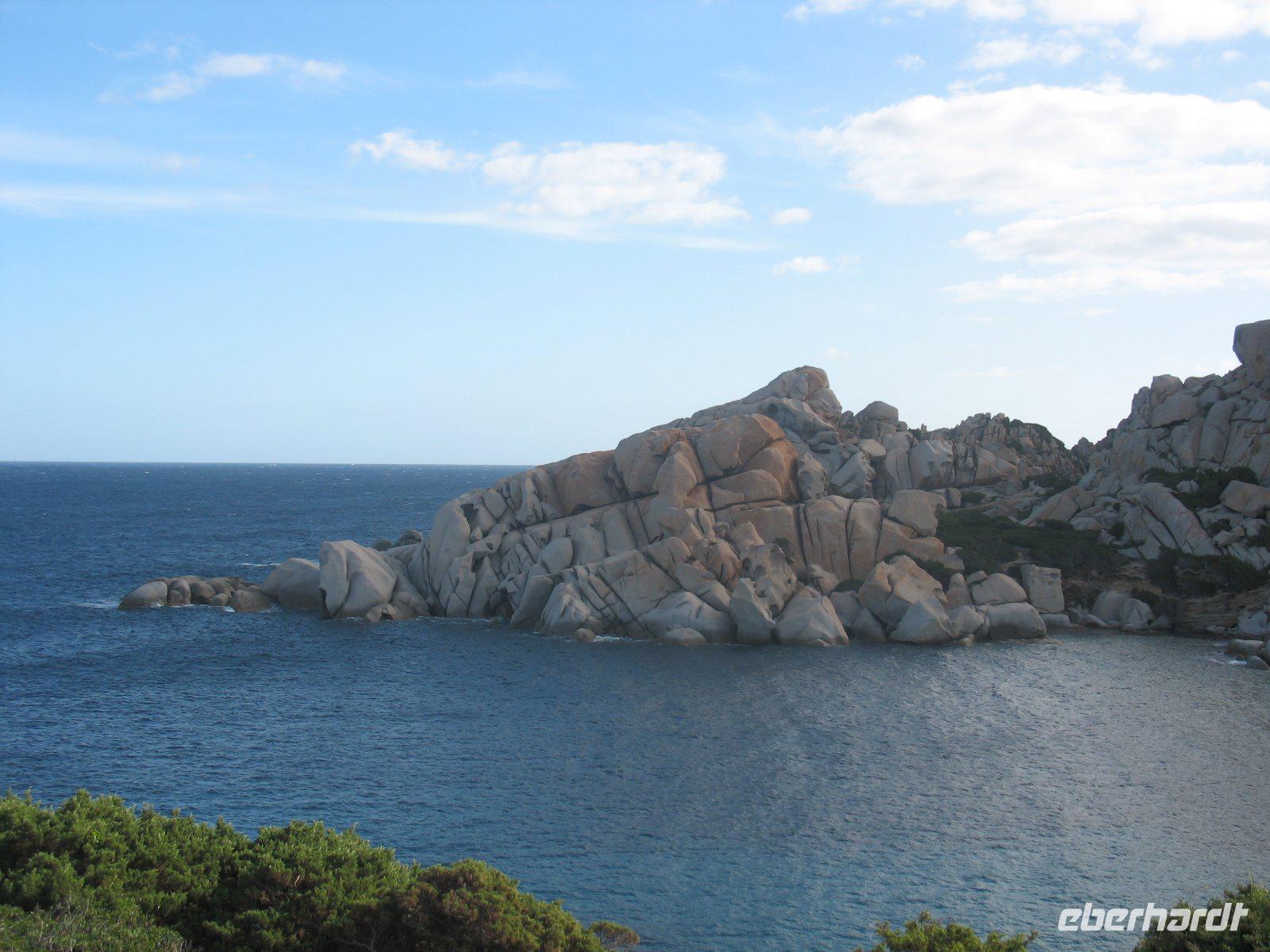 Unser örtlicher Reiseleiter Rainer erwartete uns nach dem Frühstück um 9 Uhr vor dem Hotel. Wir fuhren dann nach Palau. Dort setzten wir mit der Fähre nach La Maddalena über. Auf der Überfahrt sahen wir in der Ferne den Bärenfelsen. Wahrend der Rundfahrt auf der Insel erfuhren wir von der militärischen Vergangenheit des Inselarchipels. Nachdem wir auch die Reste der Bauten des ehemaligen G8 Gipfels hinter uns gelassen hatten, staunten wir über die bizarren Felsen und die Macchia. Immer wieder neue schöne Ausblicke auf Meer, bizarre Felsen und ursprüngliche Vegetation boten sich unseren Augen. Wir erfuhren von Garibaldi, der nach seiner militärischen Laufbahn und seinem Einsatz für die Einheit Italiens auf der Insel Caprera einen Bauernhof mit fortschrittlichen Methoden aufgebaut hat.