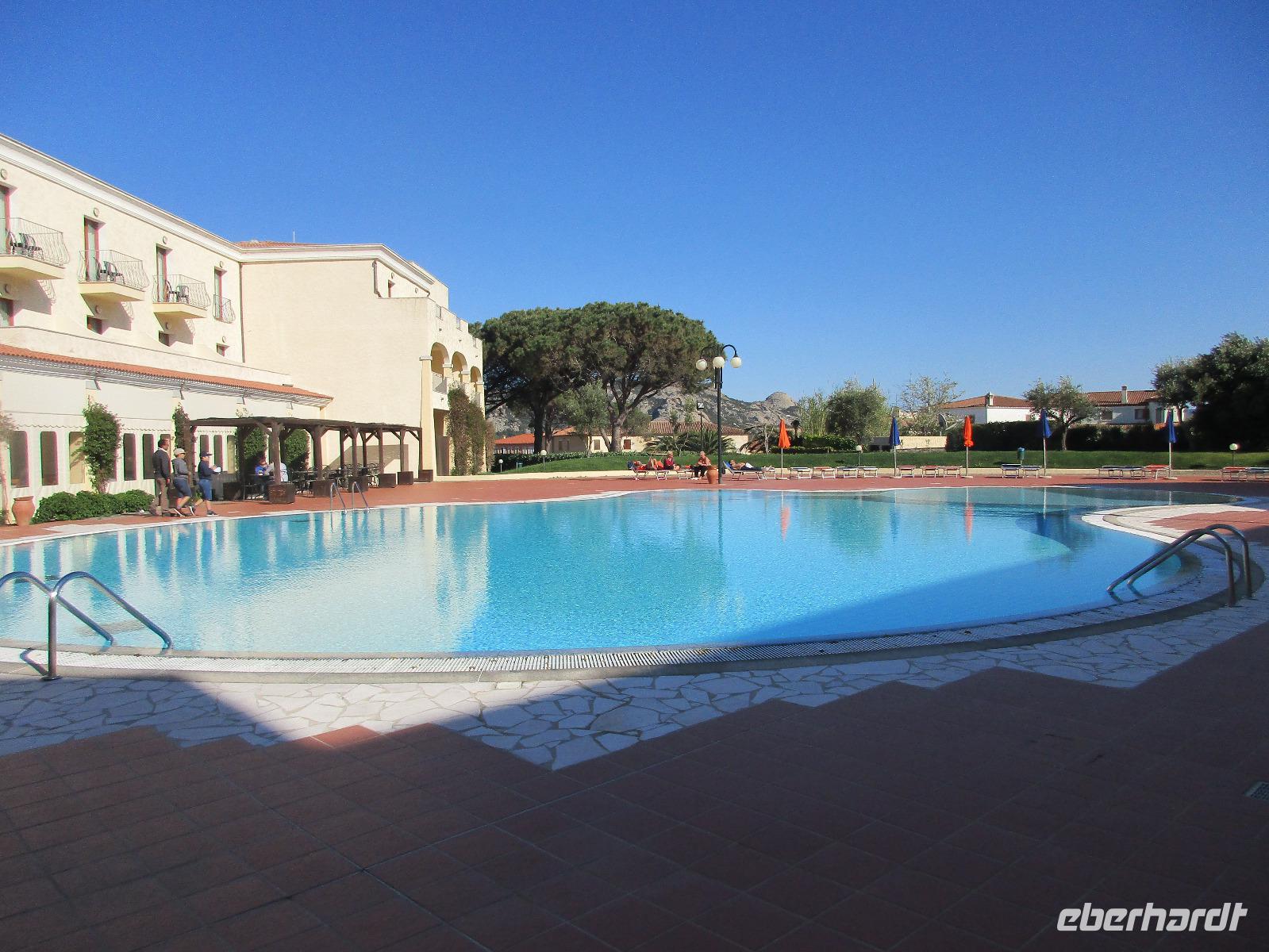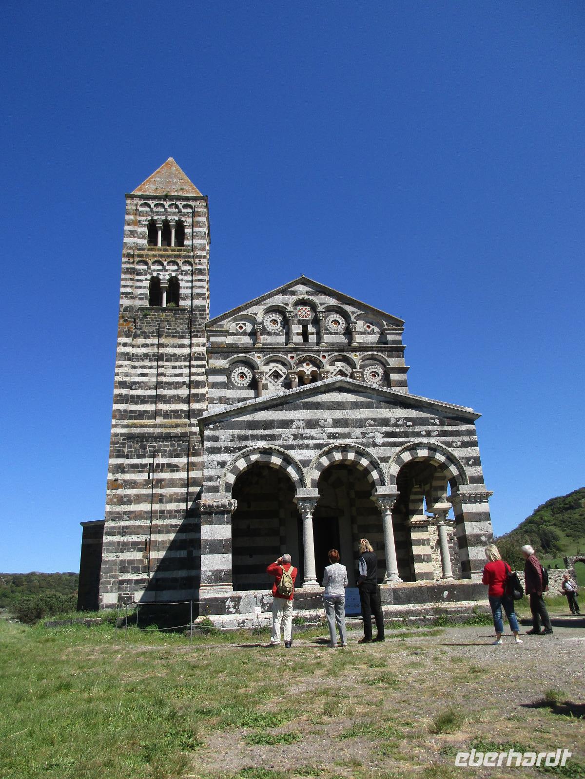 Leider müssen wir dann schon wieder unseren Weg in Richtung Cannigione einschlagen und die circa 150 Kilometer fahren. Wir legen noch einen Stopp bei der Kirche Saccargia ein und bestaunen die weißen und schwarzen Steine, aus denen die Kirche schichtweise im 7. Jahrhundert erbaut worden ist. Nach einem Espresso-Stopp an einer Raststätte sehen wir schon bald wieder den Hafen von Olbia und nun ist es nicht mehr weit bis zu unserem Blu Hotel Morisco in Cannigione.