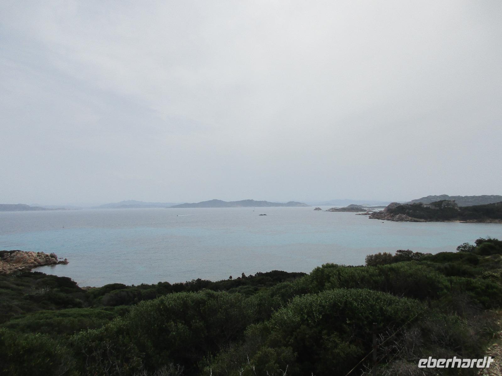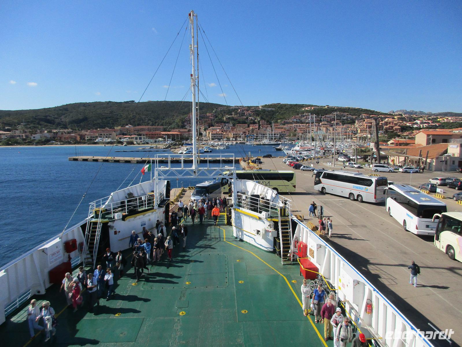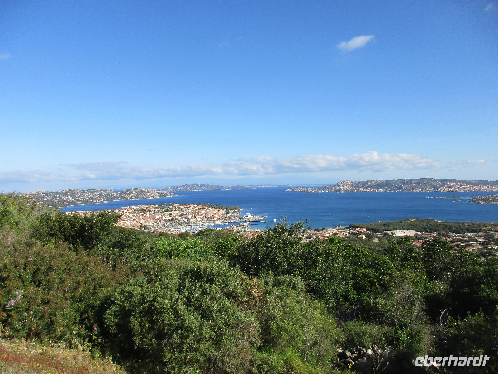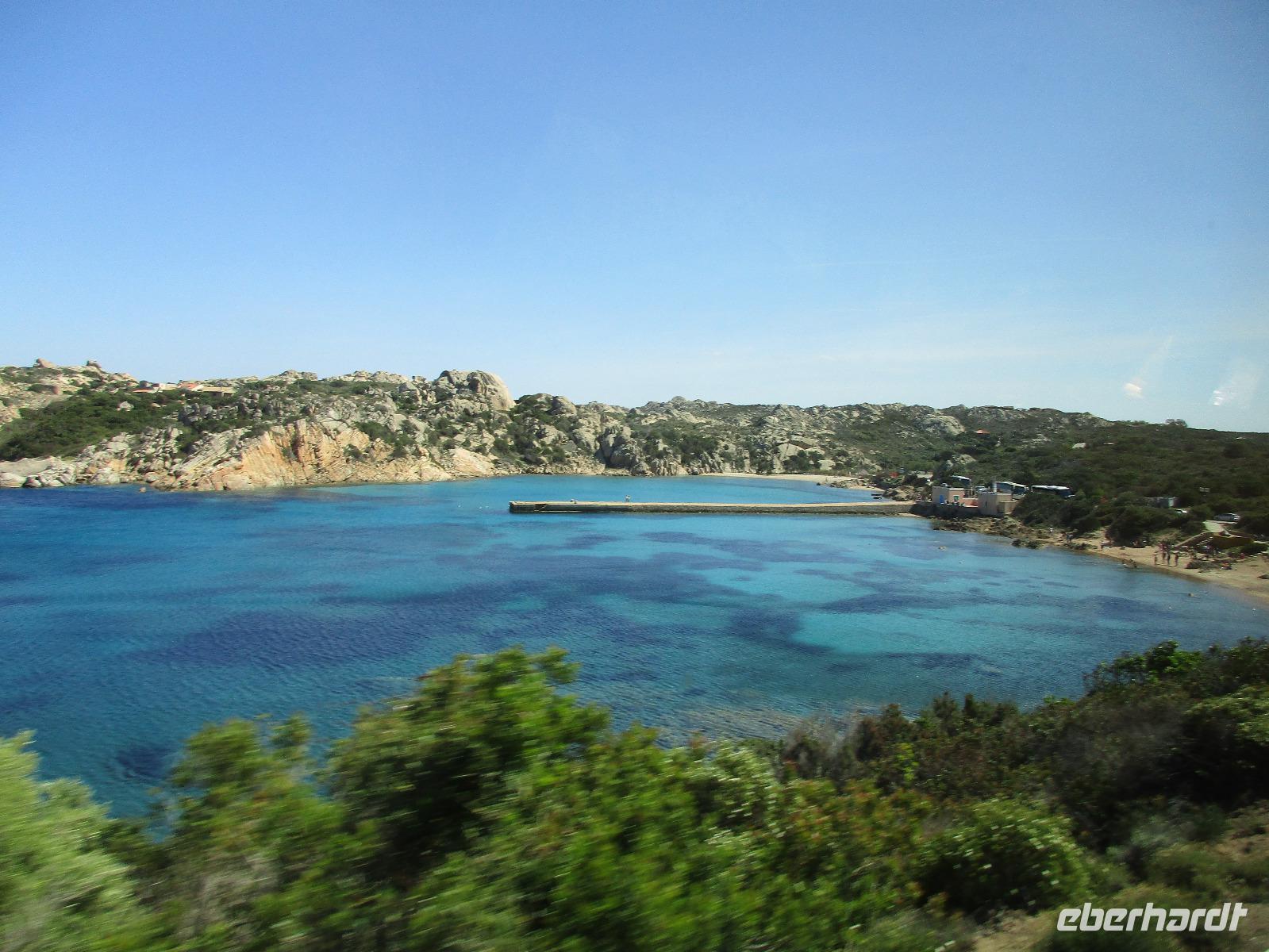 Weiter geht unsere Fahrt schon wieder zurück über den Damm nach La Maddalena und wir fahren vorbei an die für den ursprünglichen G8-Gipfel geplanten Gebäude, welcher dann doch nicht auf der Insel stattfand. Unsere Rundfahrt führt uns entlang der Panorama-Straße in den Norden und den Westen der Insel und wir genießen die wundervollen Ausblicke aus dem Bus. Immer mal wieder können wir anhalten und schöne Fotos von der Landschaft und den Nachbarinseln knipsen. Um 16:15 Uhr geht unsere Fähre zurück nach Palau und wir müssen vorerst Abschied nehmen.