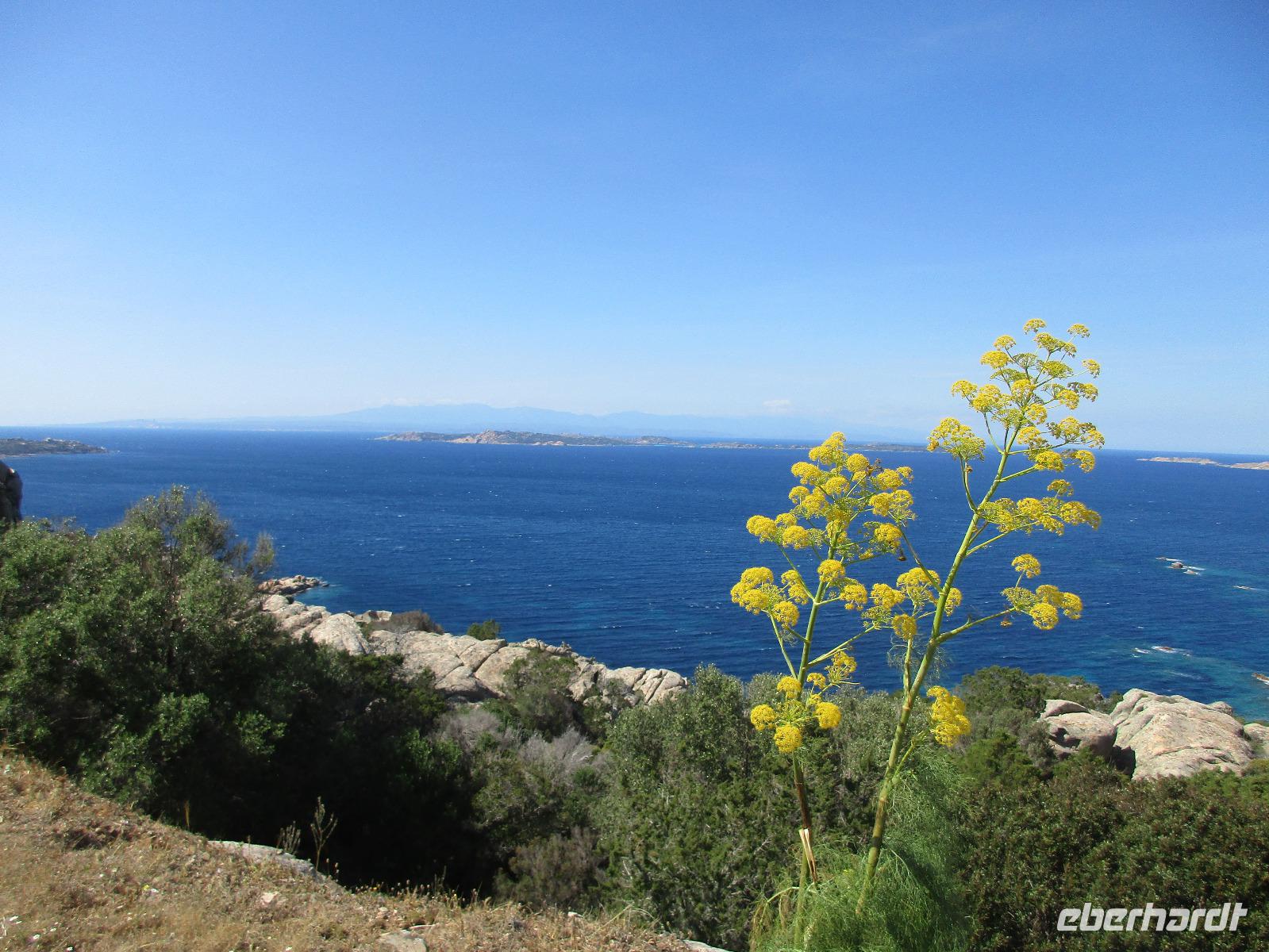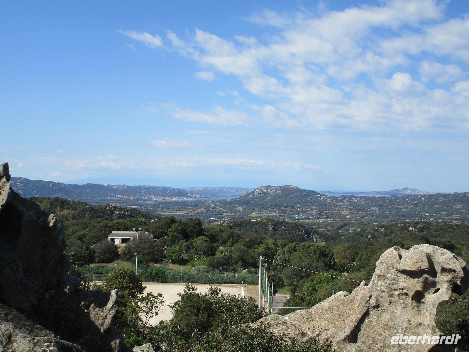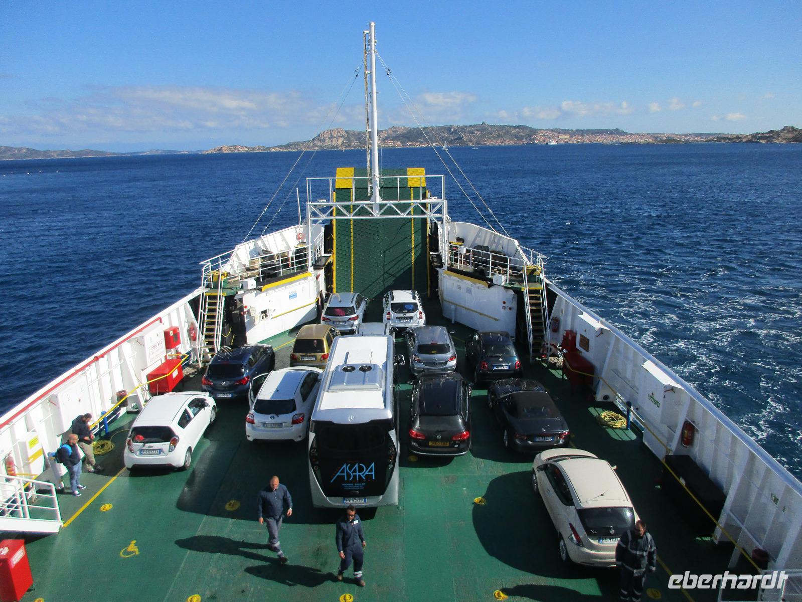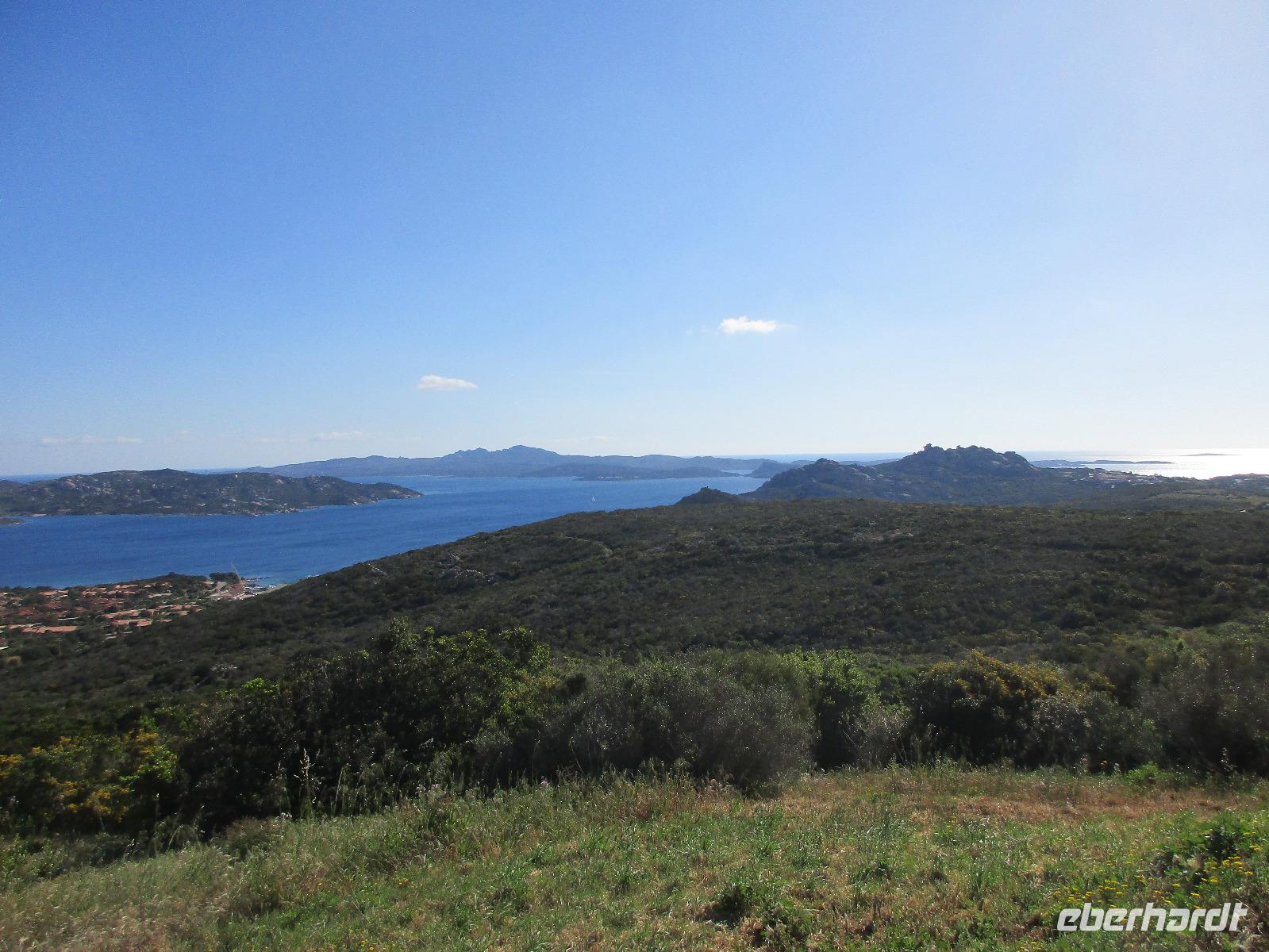 Weiter geht unsere Fahrt schon wieder zurück über den Damm nach La Maddalena und wir fahren vorbei an die für den ursprünglichen G8-Gipfel geplanten Gebäude, welcher dann doch nicht auf der Insel stattfand. Unsere Rundfahrt führt uns entlang der Panorama-Straße in den Norden und den Westen der Insel und wir genießen die wundervollen Ausblicke aus dem Bus. Immer mal wieder können wir anhalten und schöne Fotos von der Landschaft und den Nachbarinseln knipsen. Um 16:15 Uhr geht unsere Fähre zurück nach Palau und wir müssen vorerst Abschied nehmen.