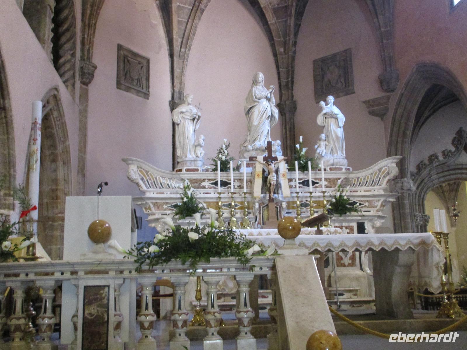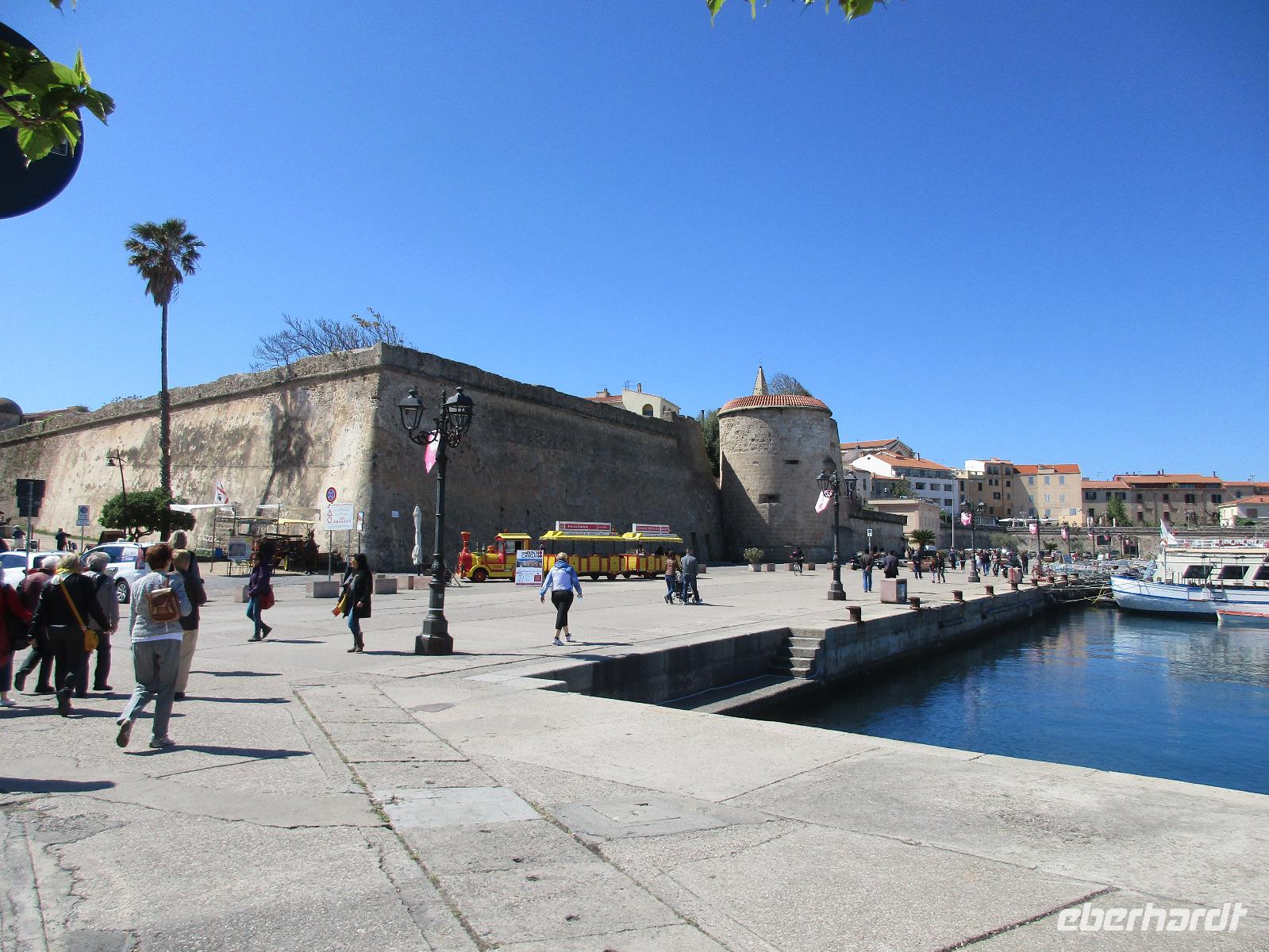 Am frühen Morgen starten wir unsere fast 3-stündige Fahrt zu unserem heutigen Ziel nach Alghero. Die Zeit vergeht wie im Fluge und Detlef erzählt uns etwas über die Geschichte von Sardinien, speziell die Zeit der spanischen Herrschaft in Alghero. Auch eine kleine Kaffee-Pause darf auf dieser langen Fahrt natürlich nicht fehlen und schon bald erreichen wir Alghero. Wir unternehmen eine gemütliche Kutschfahrt um einen ersten Eindruck der Altstadt zu erhalten. Auf unserem Spaziergang durch die kleinen und engen italienischen Gassen besichtigen wir die drei berühmten Kirchen von Alghero: Santa Maria, San Francesco und San Michele und werfen einen Blick in ihr Inneres. Schon bald haben wir die wichtigsten Sachen erkundet und suchen uns noch etwas Kleines für den Mittag. Ein Bummel durch die Geschäfte darf natürlich auch nicht fehlen und wir bestaunen den in Alghero hergestellten Schmuck aus roten Korallen.