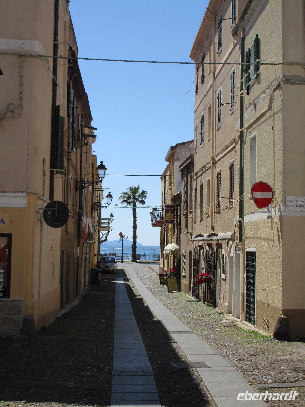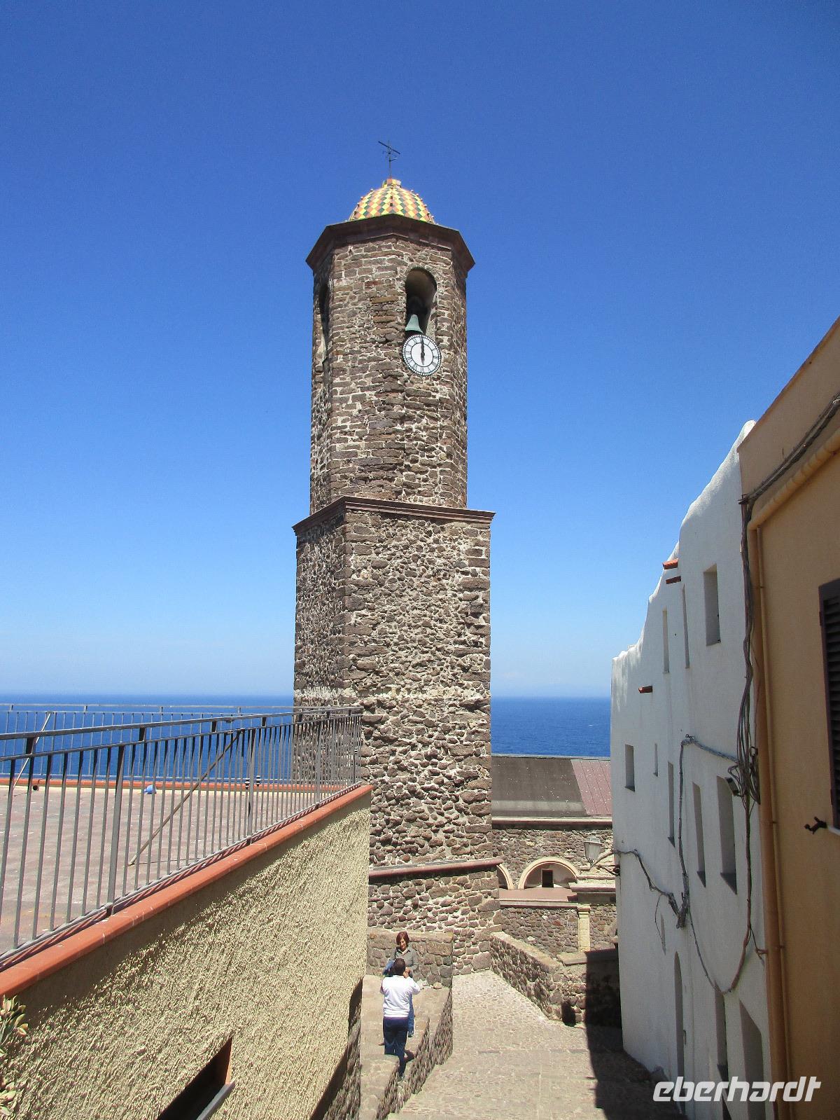 Unser letzter planmäßiger Stopp ist in Castelsardo, einem kleinen Städtchen ganz im Nordwesten von Sardinien. Mit dem Shuttlebus fahren wir in die Oberstadt und spazieren über viele kleine Treppenstufen durch die Gässchen zur Kathedrale. Gleich nebenan befindet sich der ehemalige Leuchtturm der Piemonteser, welche Castelsardo zu Ihrer Hauptstadt auf Sardinien erklärten. Doch als die Spanier das Land erobert hatten, bauten sie an den Klippen diese Kirche. Da sie jedoch ein Platzproblem hatten, konnten sie keinen Kirchturm bauen und welche Kathedrale konnte sich schon ohne Kirchturm zeigen? So beschlossen sie, da der Hafen von Castelsardo für die Spanier keine Bedeutung hatte, diesen Leuchtturm einfach in einen Kirchturm zu verwandeln und schon gab es auch in Castelsardo eine wunderschöne Kathedrale mit einem Kirchturm.