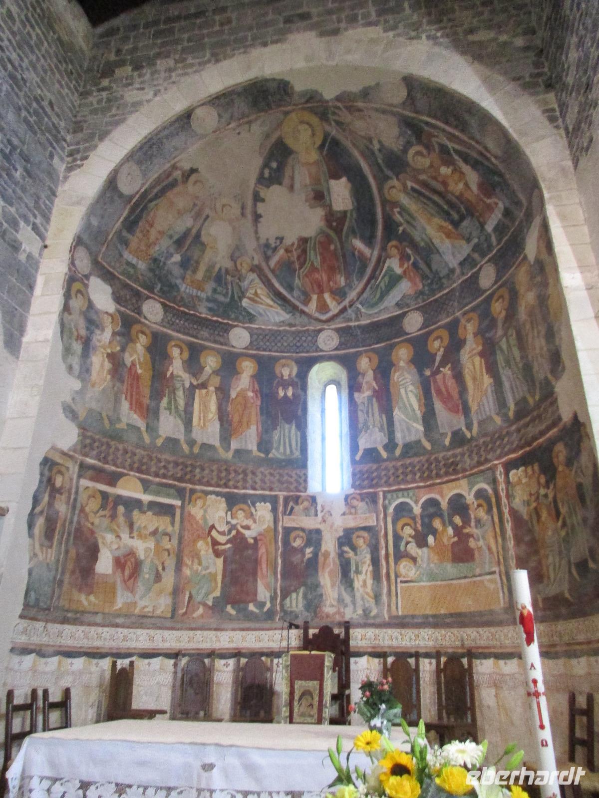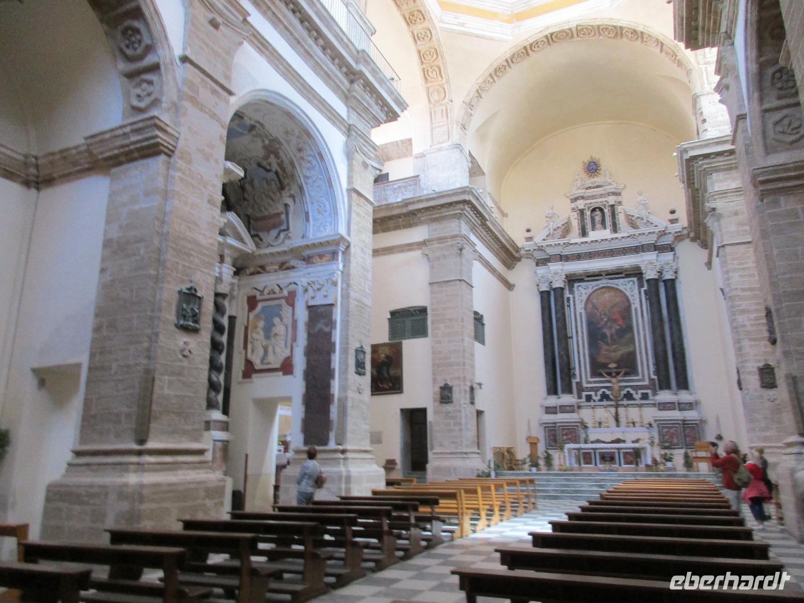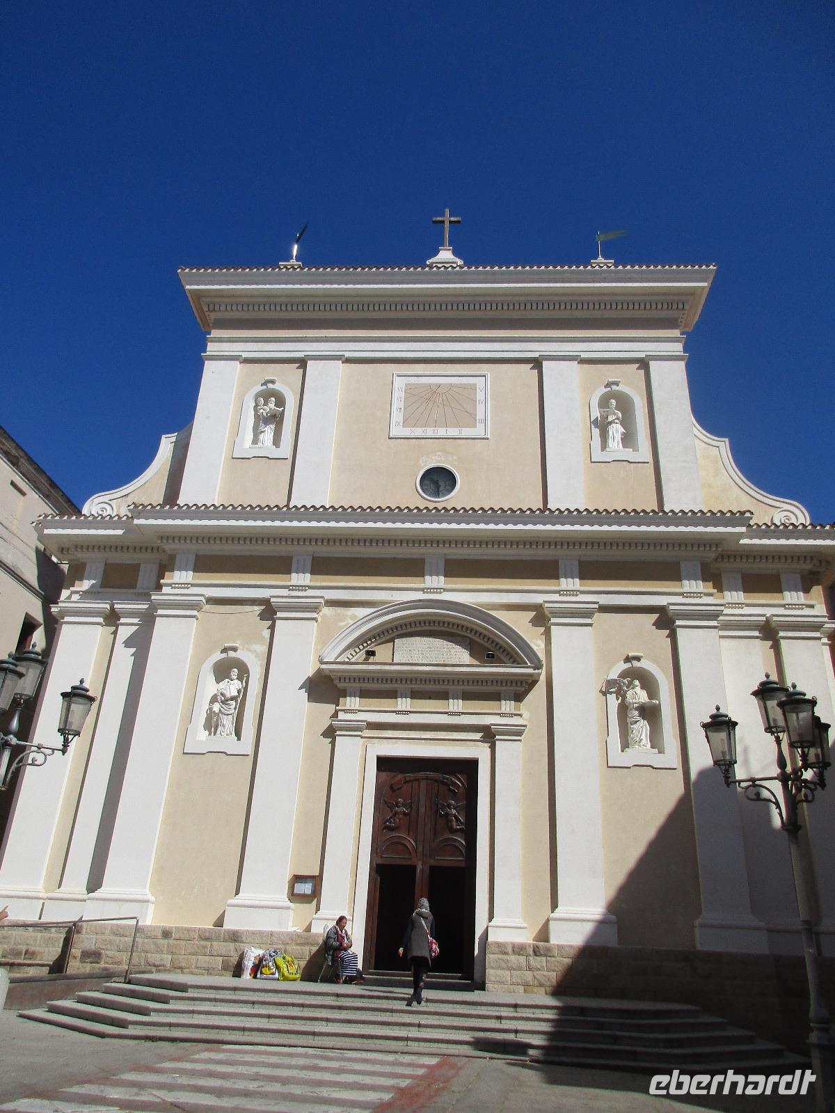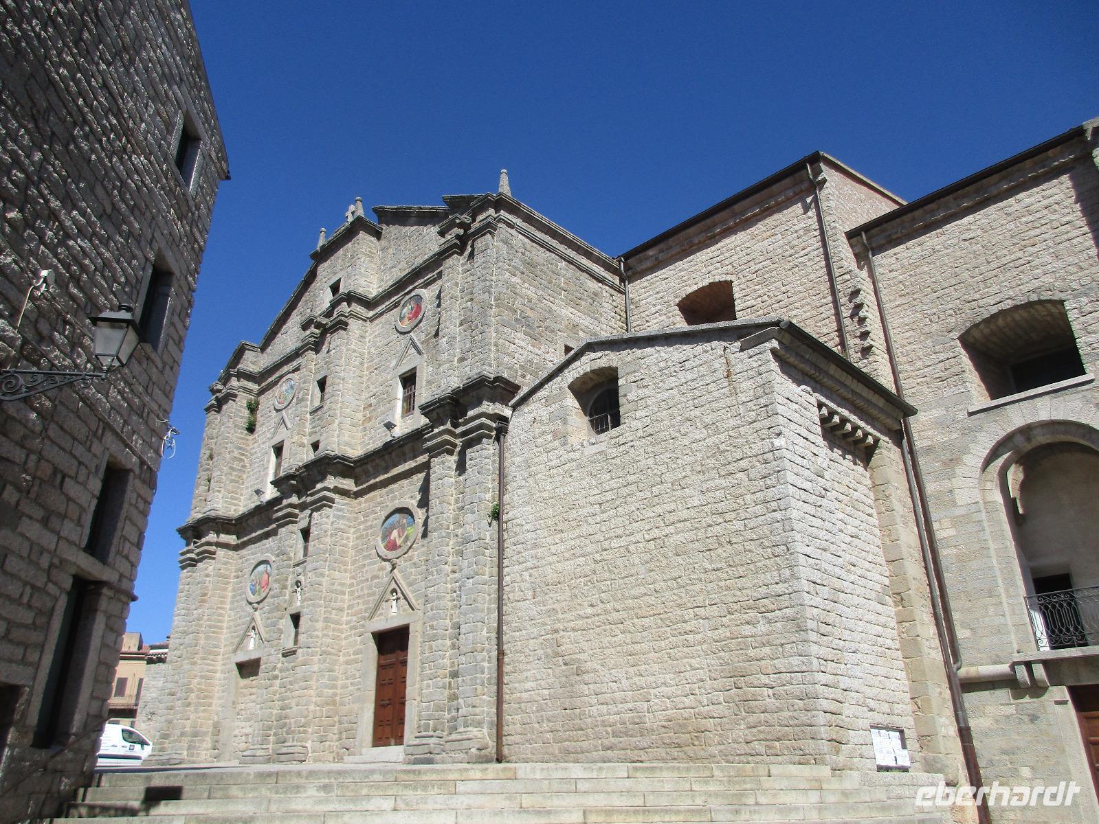 Auch heute erwartet uns wieder eine etwas längere Fahrt in das Innere der Insel, fernab von der Küste. Doch die Zeit nutzen wir, damit uns Detlef etwas über die sardische Flagge und deren Geschichte erzählen kann. Auch über die Banditen der Region erzählt er uns die eine oder andere Geschichte. Da wir jedoch nicht mit Goldschmuck und einem Ferrari in das Land der Banditen fahren, brauchen wir keine Angst zu haben, dass sie uns überfallen und Lösegeld fordern. Wir erreichen nach circa zweieinhalb Stunden die Hauptstadt der Region, Nuoro. Hier angekommen erhalten wir einen schönen Blick in ein grünes Tal. Wir spazieren durch den Ort und besichtigen die Kathedrale Santa Maria della Neve, welche auch als Schneekirche bezeichnet wird. Der Geschichte nach sollen drei voneinander unterschiedliche Geistige den Traum gehabt haben, eine Kirche an einem bestimmten Ort zu bauen, wenn es eines Sommers in Rom schneien würde. Diese Geistlichen trafen sich dann im 19. Jahrhundert in Nuoro und bauten gemeinsam die heutige Kathedrale von Nuoro.