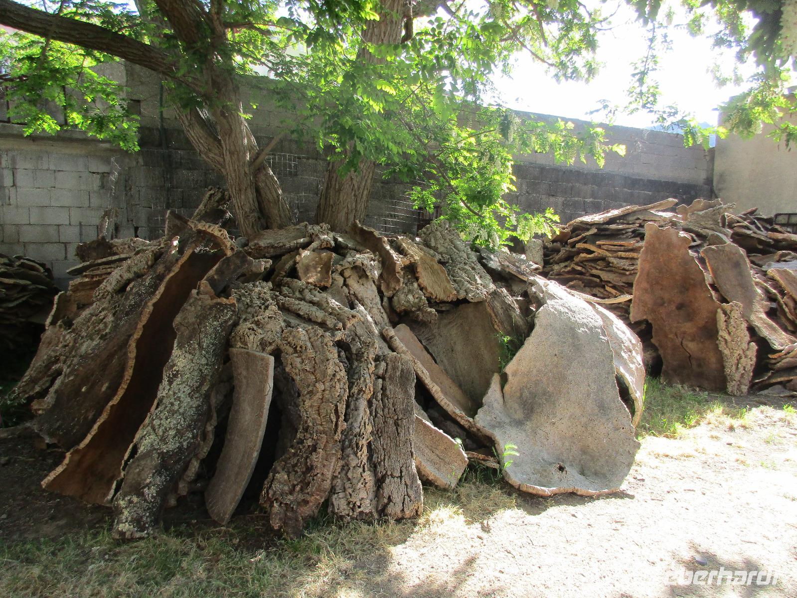 Heute ist leider schon unser letzter Tag mit Detlef und Luca angebrochen und wir wollen gemeinsam die Gallura erkunden. Bekannt ist dieses Gebiet von Sardinien für seine Korkeichen und der daraus hergestellte Kork. So erfahren wir von Detlef wie die Rinde bzw. der Kork aller 10 Jahre von den Korkeichen geschält wird. Damit wir uns dies genau vorstellen können, besichtigen wir eine kleine Fabrik in der Nähe von Tempio. Der Besitzer zeigt uns, wie er aus Kork, die uns so bekannten Korken, herstellt und woran die Qualität eines Korkens bzw. eines Weines zu erkennen ist. Auch demonstriert er uns, wie mit Hilfe einer Maschine ganz feine Platten Kork, fast nur einen Millimeter dick, erzeugt werden können. Mit diesem hauchdünnem Kork verarbeitet seine Tochter Sandra Keramik zu etwas ganz Besonderem. Nachdem wir faszinierend auch den kleinen Laden der Familie besichtigt und das eine oder andere gekauft haben, geht unsere Fahrt weiter nach Tempio, der Hauptstadt der Gallura.