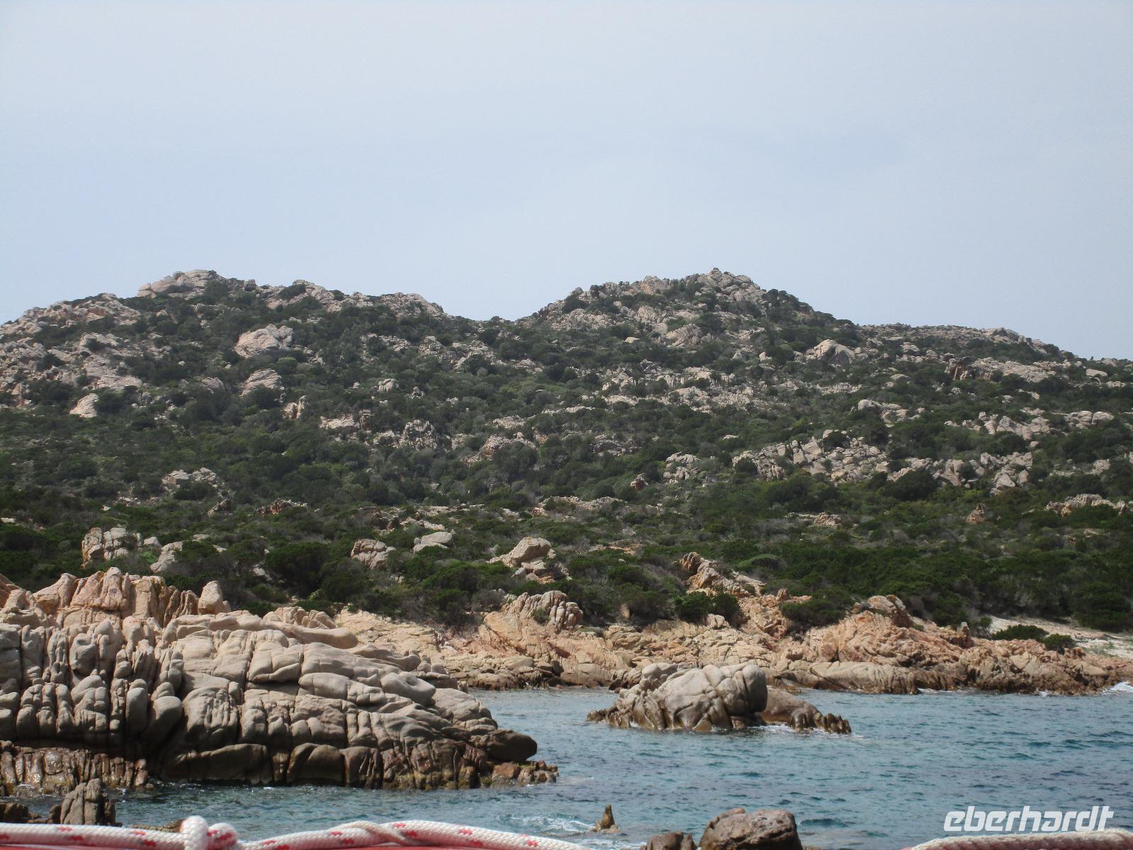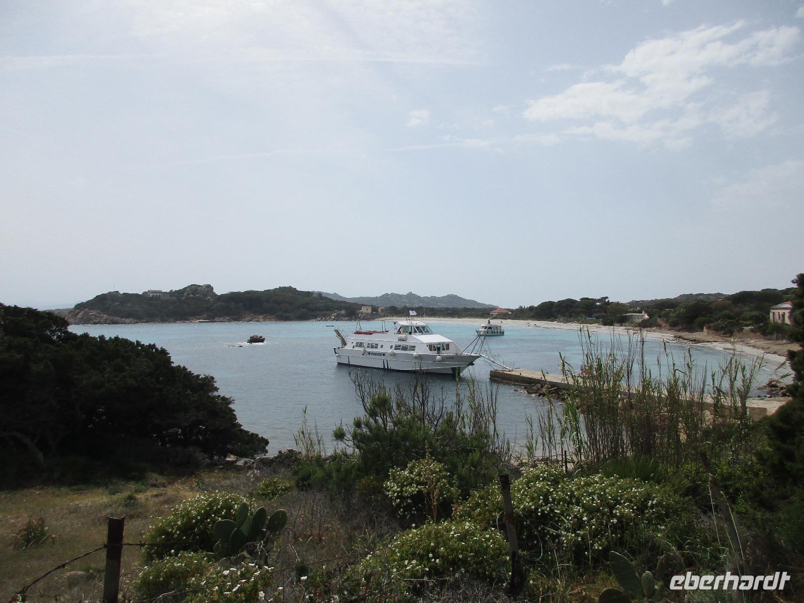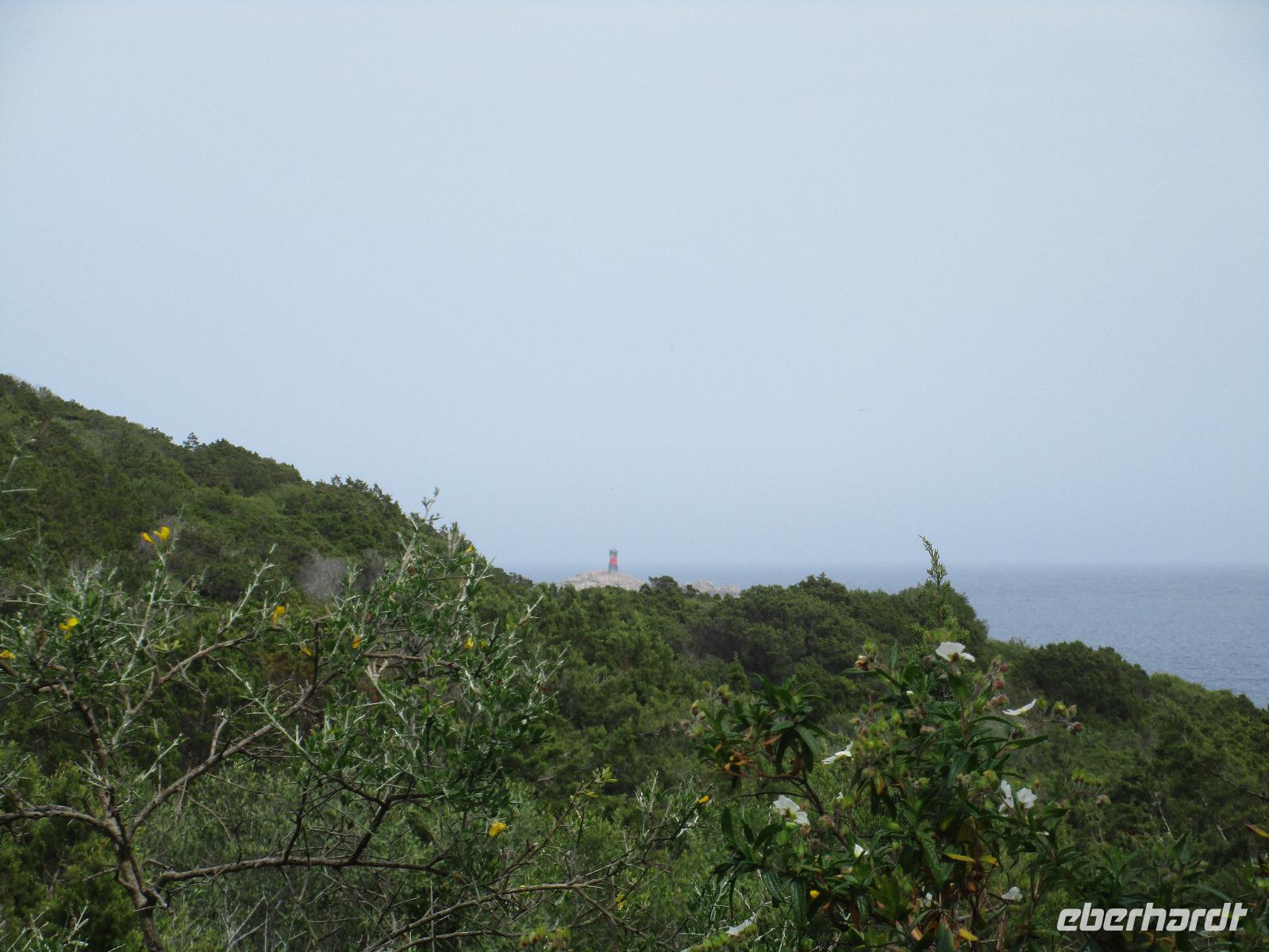Wir fahren als nächstes an der Insel Budelli vorbei, welche für Ihren Rosa-Strand bekannt ist. Doch da dieser Sand von den Touristen in den vergangenen Jahren immer mehr und mehr geschmuggelt wurde, ist heute leider nur noch ganz wenig der Rosa Farbe zu erkennen und das Anlegen des Schiffes verboten. Doch kein Grund sich zu ärgern, wir fahren weiter nach Santa Maria und legen einen weiteren Halt ein. Folgt man dem kleinen Trampelpfad durch das Gestrüpp, kann man in weiter Ferne den Leuchtturm der Nachbarinseln sehen. Doch da der Weg noch ziemlich lang erscheint und wir unser Boot für den Rückweg natürlich nicht verpassen wollen, drehen wir auf der Hälfte des Weges um, nachdem wir ihn über den Sträuchern erblicken konnten.